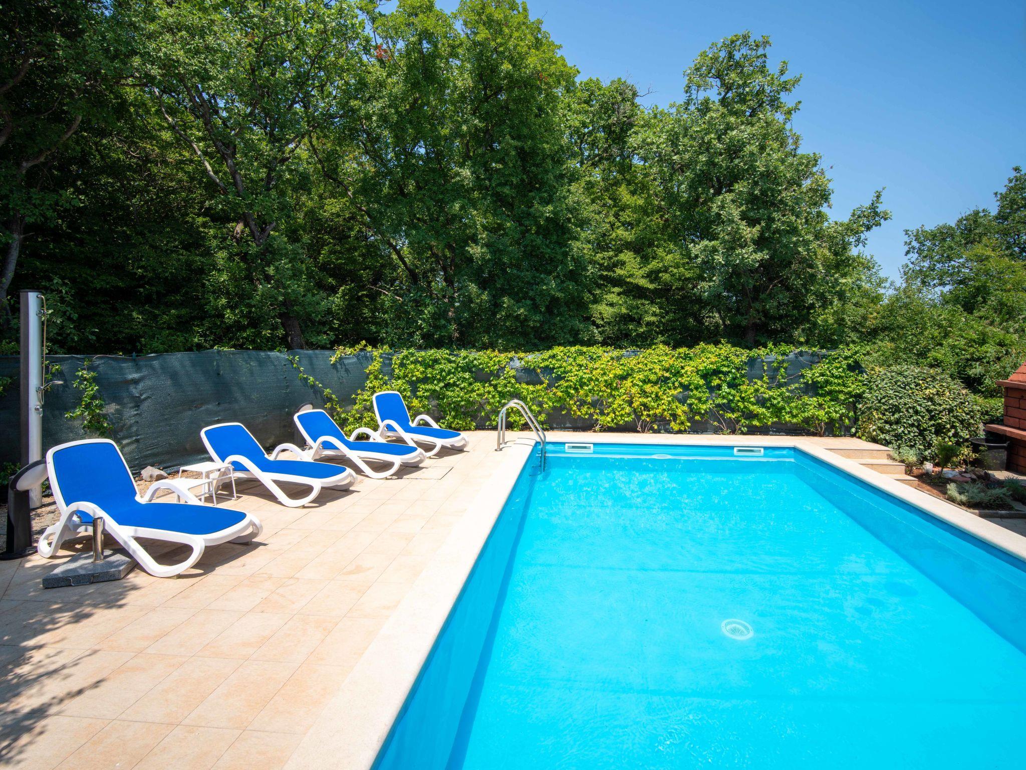 Single-family house "Graziani", 2 storeys, renovated in 2025. 350 m from the centre of Kornic, 3.5 km from the centre of Punta, in a quiet, sunny position, 1.4 km from the sea, 1.4 km from the beach, in a cul-de-sac, in the countryside. Private: property 724 m2 (fenced), swimming pool heated (32 m2, depth 150 cm, seasonal availability: 01.May. - 15.Oct.). Unconventional pool shape. Terrace (35 m2), barbecue, children's playground (swing). In the house: internet access, washing machine. Parking (for 4 cars) at the house on the premises. Shop 350 m, restaurant 1.4 km, bus stop 1.6 km, pebble beach 1.4 km, diving center 1.4 km, concrete beach 1.4 km. Walking paths from the house 1 km, cycle lane 1 km. Solar heating of the water in the swimming pool.