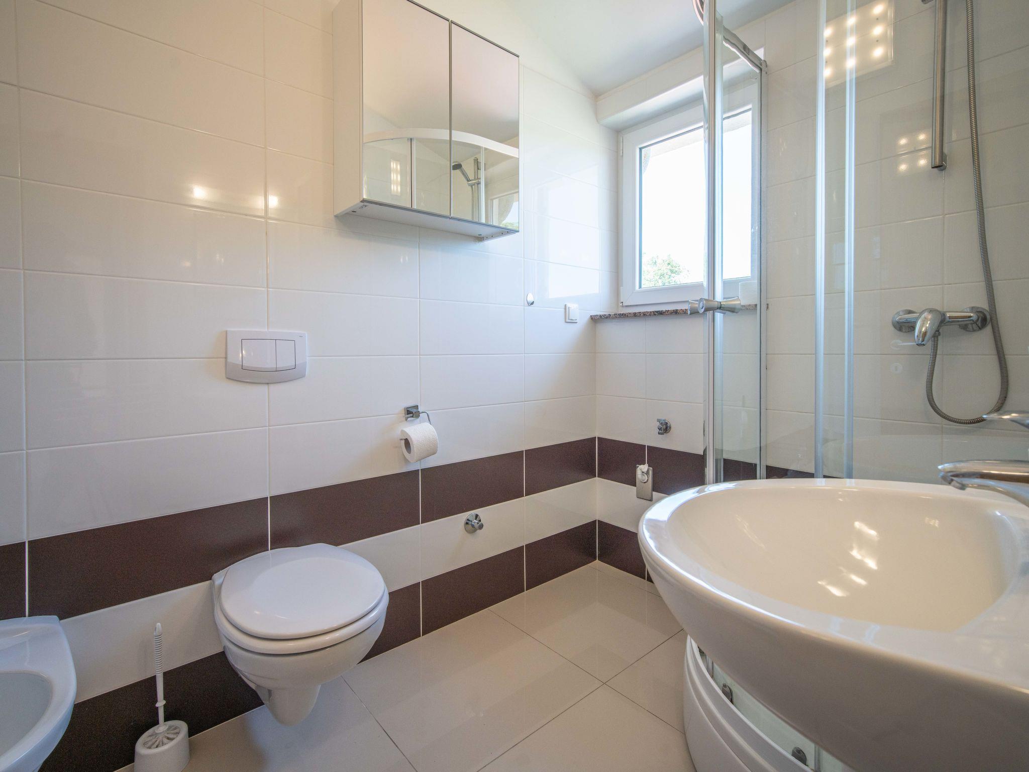 4-room house 75 m2 on 2 levels, south-east facing position. Living/dining room 30 m2 with satellite TV (flat screen), air conditioning. Exit to the terrace. Open kitchen (oven, dishwasher, 4 ceramic glass hob hotplates, freezer, electric coffee machine). Shower/WC. Upper floor: 1 room with 1 french bed (160 cm, length 200 cm), air conditioning. Exit to the terrace. 1 room with 1 french bed (160 cm, length 200 cm). 1 room with 1 bed (90 cm, length 200 cm). Exit to the terrace. Shower/bidet/WC. Forced-air heating. Terrace 28 m2, terrace 5 m2, roofed. Terrace furniture, deck chairs, box-room. View of the swimming pool and the countryside. Facilities: safe, baby cot. Internet (WiFi, free). Maximum 1 pet/ dog allowed. Rješenje br. 5343 od 20.07.2015