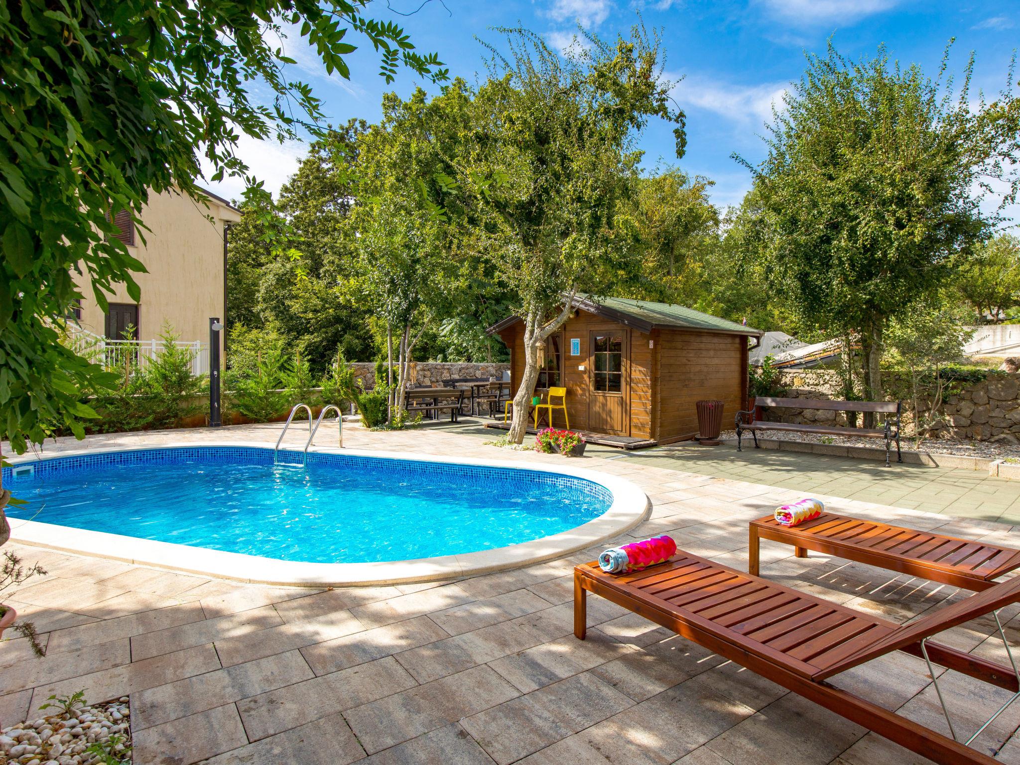 Single-family house "Noveanni", 2 storeys. 350 m from the centre of Kornic, 3.5 km from the centre of Punat, in a quiet, sunny position, 900 m from the sea, 900 m from the beach, in the countryside. Private: property 550 m2 (fenced), wildlife garden and trees, swimming pool (24 m2, depth 150 cm, seasonal availability: 01.May. - 15.Oct.). Unconventional pool shape. Outdoor shower, terrace (100 m2), garden furniture, barbecue. In the house: internet access, table football, washing machine. Parking (for 4 cars) at the house on the premises. Shop 350 m, restaurant 400 m, bus stop 1.5 km, pebble beach, public bathing area 900 m. Part of the house is closed and unoccupied. Private:outdoor kitchen (2 hot plates, 2 refrigerators).