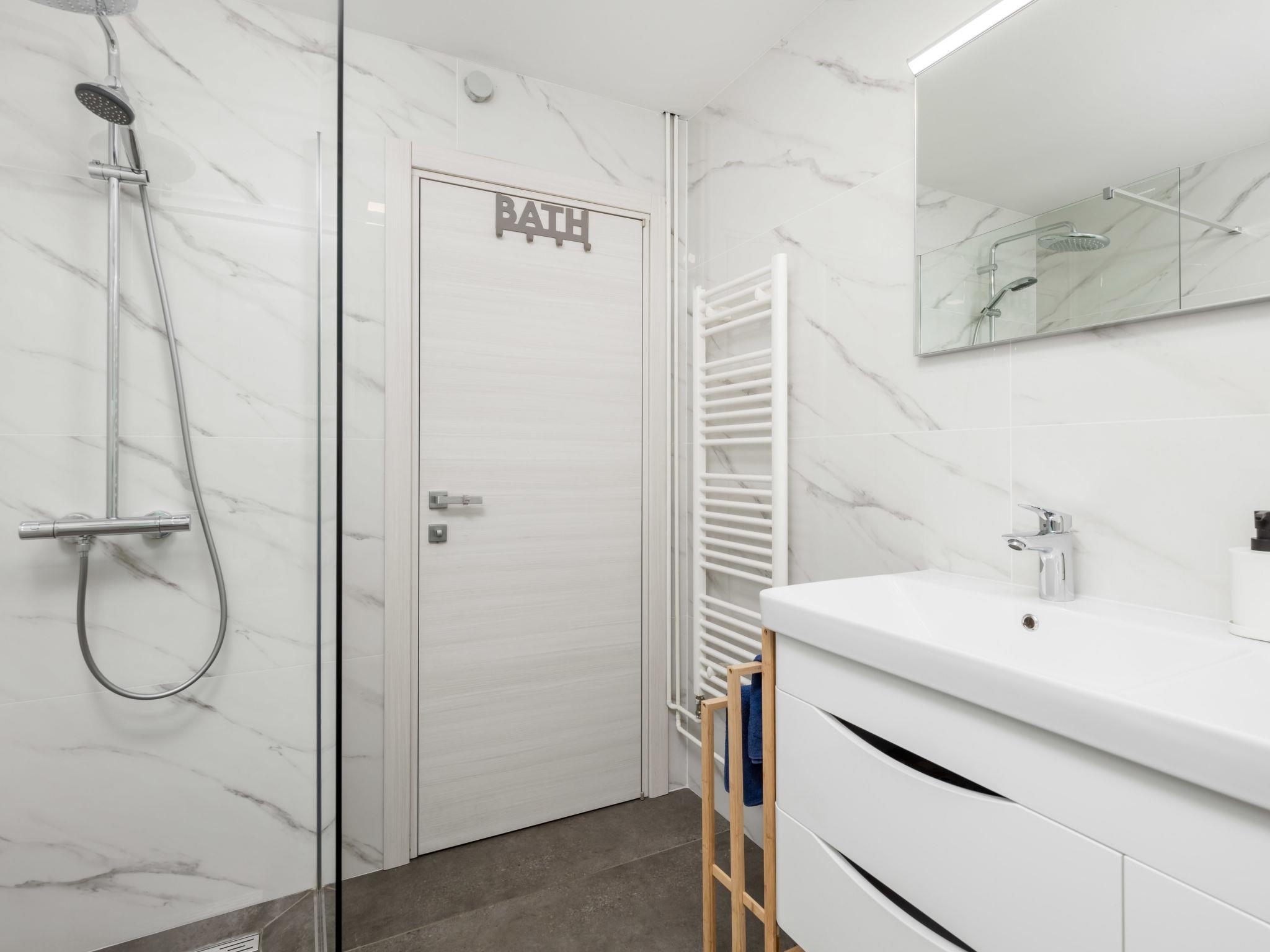 7-room house 170 m2 on 2 levels. Living/dining room with satellite TV (flat screen), air conditioning. Exit to the terrace, to the swimming pool. 1 room with 1 french bed (160 cm, length 200 cm). Exit to the terrace. 1 room with 2 beds (80 cm, length 200 cm). Open kitchen (oven, 4 ceramic glass hob hotplates, toaster, kettle, freezer, electric coffee machine) with satellite TV (flat screen), air conditioning. Exit to the terrace. Bath/WC. Upper floor: entrance hall with air conditioning. 1 room with 1 double bed (2 x 80 cm, length 190 cm). Exit to the terrace. 1 room with 1 french bed (140 cm, length 200 cm). Exit to the terrace. 1 room with 1 double bed (2 x 80 cm, length 190 cm). Exit to the balcony. 1 room with 1 french bed (160 cm, length 200 cm). Exit to the balcony. Bath/WC. Heating. Heating available only from 01.10. to 01.05. Balcony 3 m2, balcony 6 m2, terrace 25 m2, terrace 32 m2. Terrace furniture, deck chairs. View of the sea and the swimming pool. Facilities: safe, iron, children's high chair, baby cot, hair dryer. Internet (WiFi, free). Maximum 3 pets/ dogs allowed.