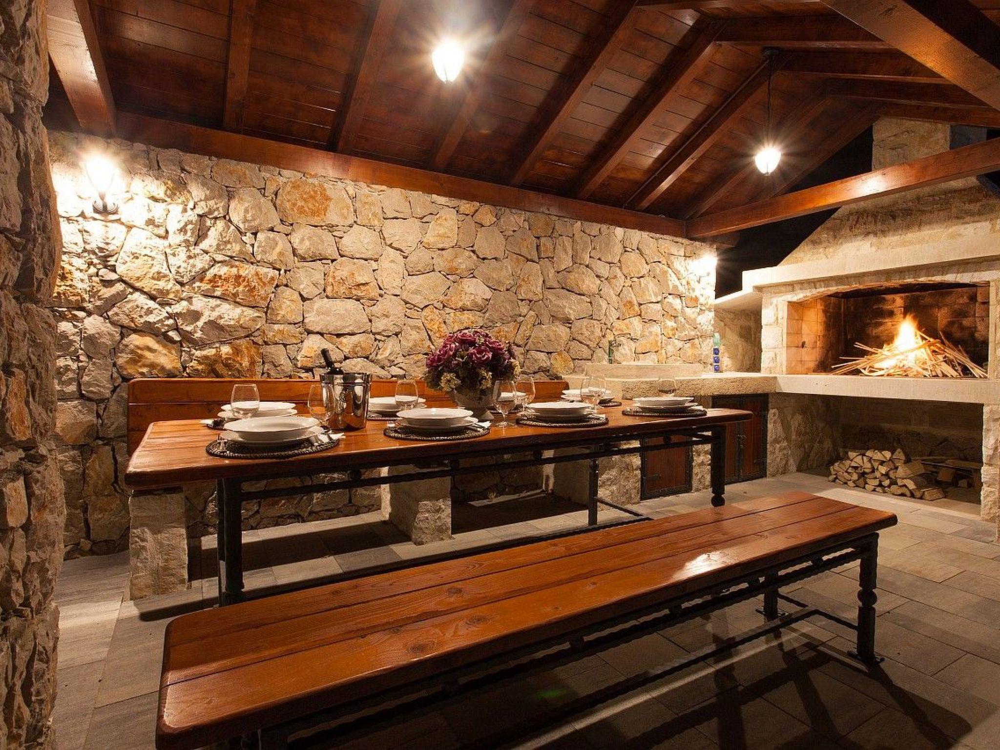 The exterior of Villa Gabrijela Krk is just as magnificent as its interior. The carefully curated garden offers an exclusive space for guests to unwind and connect with nature. Dive into the refreshing waters of the private pool or soak up the sun in the comfortable lounging area. The covered terrace, equipped with a fireplace, invites guests to enjoy al fresco dining and grill evenings under the stars. The addition of a trampoline delights younger guests, ensuring fun-filled moments for the entire family.
