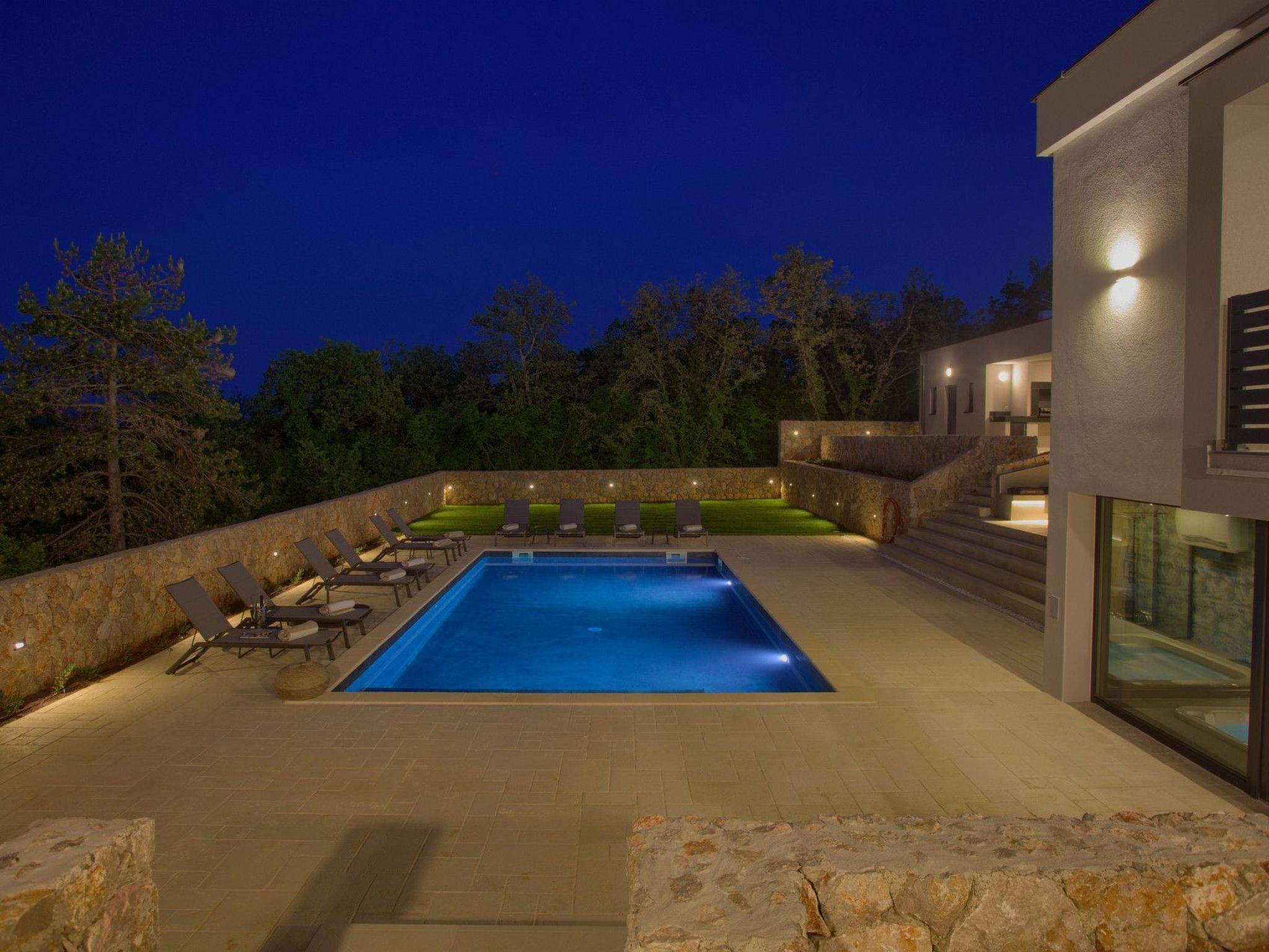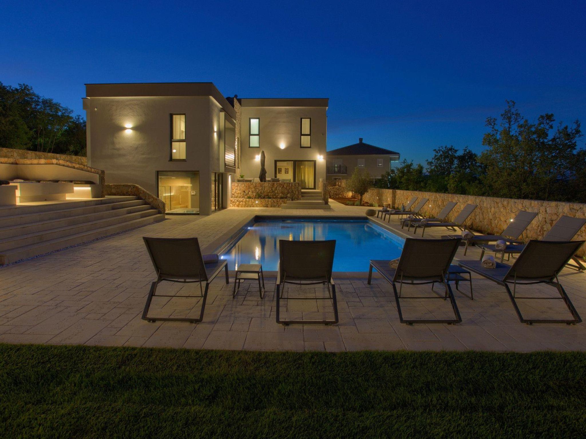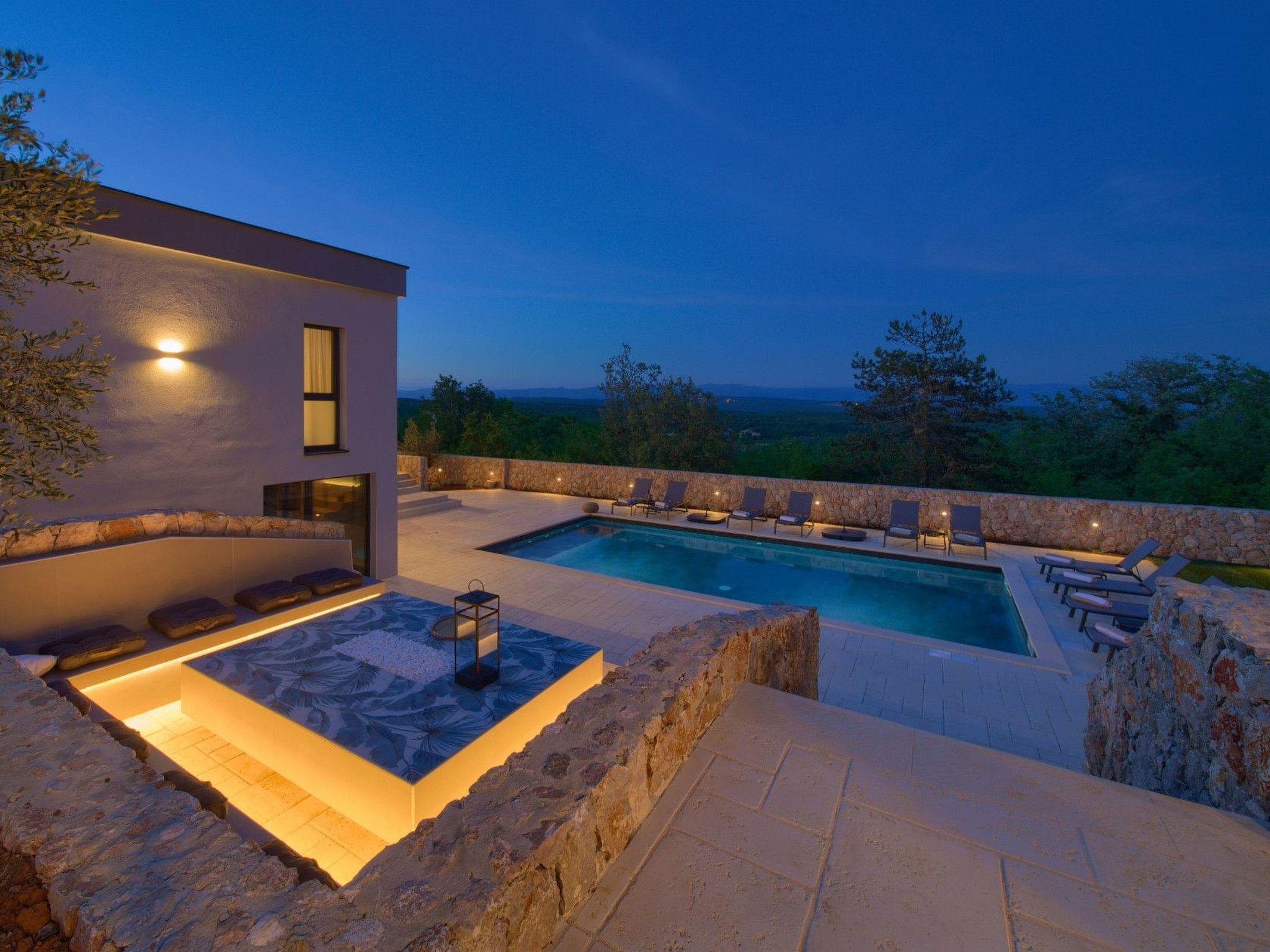 The outdoor terrace is dominated by a spacious 50 m² swimming pool and a lounge area with comfortable cushions suitable for enjoying both during the day and in the evening. The heated swimming pool with an indoor pool, a sauna, an indoor jacuzzi, and underfloor heating throughout the villa makes Villa Miryam ideal for vacationing on colder days.