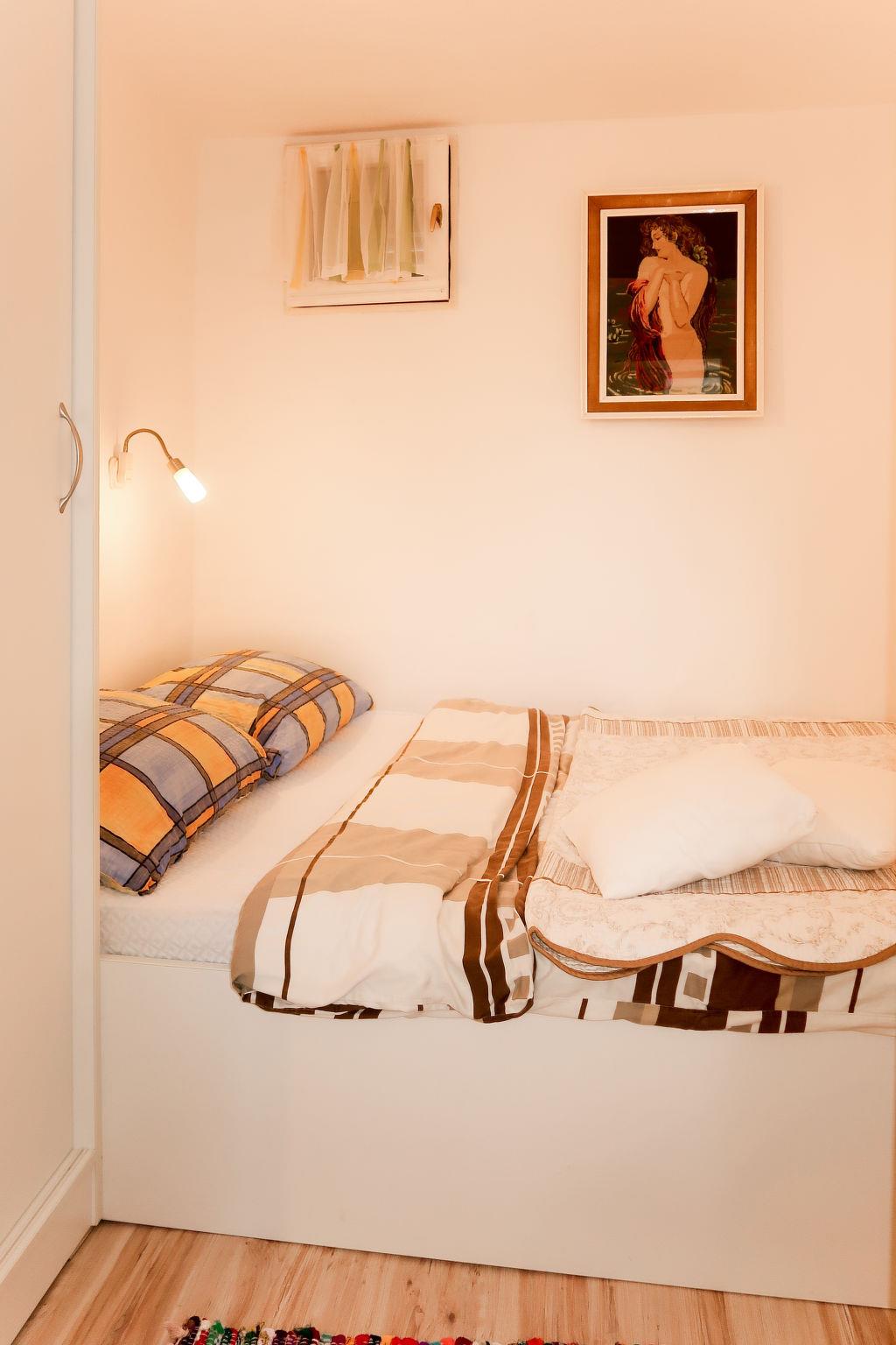 5-room terraced house 60 m2 on 2 levels. Living/dining room with satellite TV, electric heater and air conditioning. 1 room with 1 french bed. Open kitchen (1 hot plate, oven, dishwasher, 3 gas rings, toaster, kettle, microwave, electric coffee machine). Shower/WC. Upper floor: (exterior staircase) living room with satellite TV, DVD, electric heater and air conditioning. 1 room with 1 french bed (160 cm, length 200 cm). 1 room with 1 double bed. Shower/WC. No heating option. Balcony. Balcony furniture, deck chairs (8). Facilities: iron, baby cot. Internet (WiFi, free). Please note: non-smoking house. Maximum 2 pets/ dogs allowed. No internal connecting door between the floors.