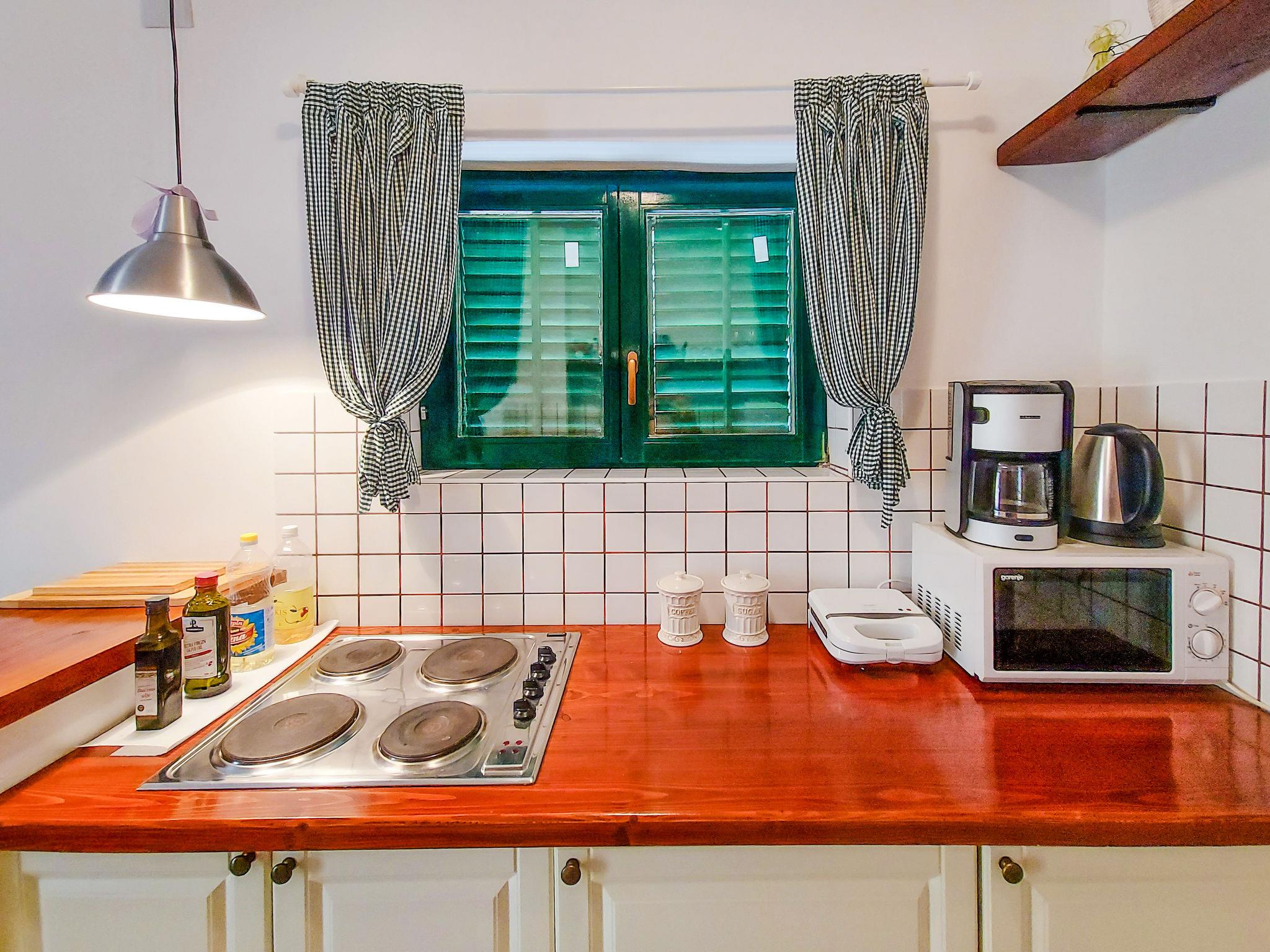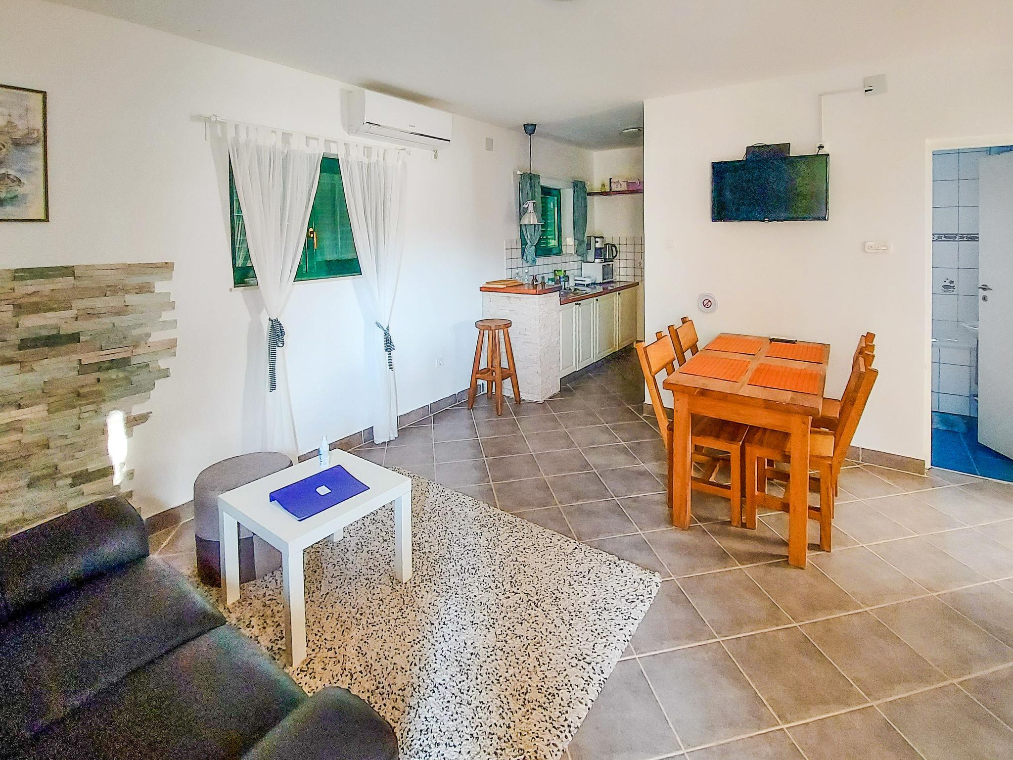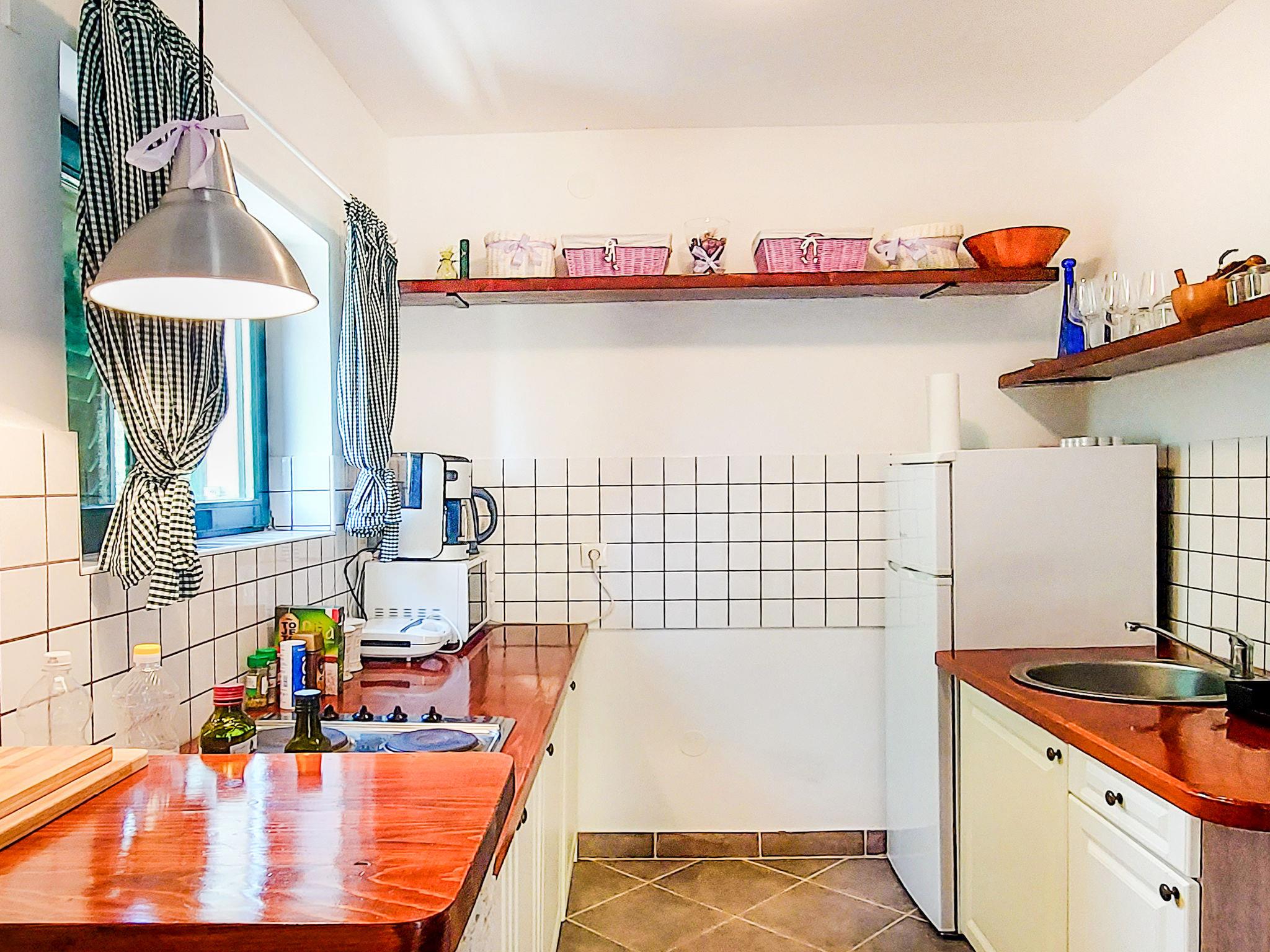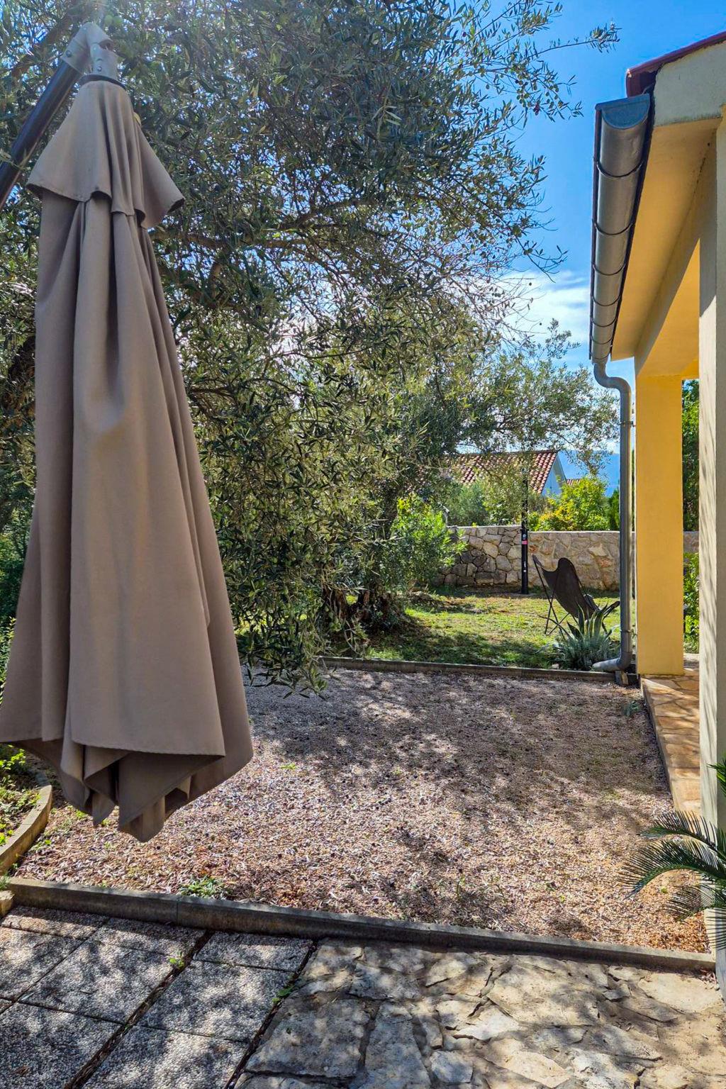 Cosy single-family house "Sandra", renovated in 2022. In the hamlet Brzac 14 km from the centre of Malinska, 14 km from the centre of Krk, 1.5 km from the sea, 1.5 km from the beach. Private: property 530 m2 (fenced) with natural garden. Outdoor shower, terrace (15 m2), garden furniture, barbecue. In the house: internet access, WiFi. Parking (for 2 cars) at the house on the premises. Shop 2.5 km, restaurant 2.5 km, bus stop 1.7 km, ferry "Valbiska" 8 km, shingle beach 1.3 km, concrete beach 2.5 km. Please note: airfield 29 km from the property.