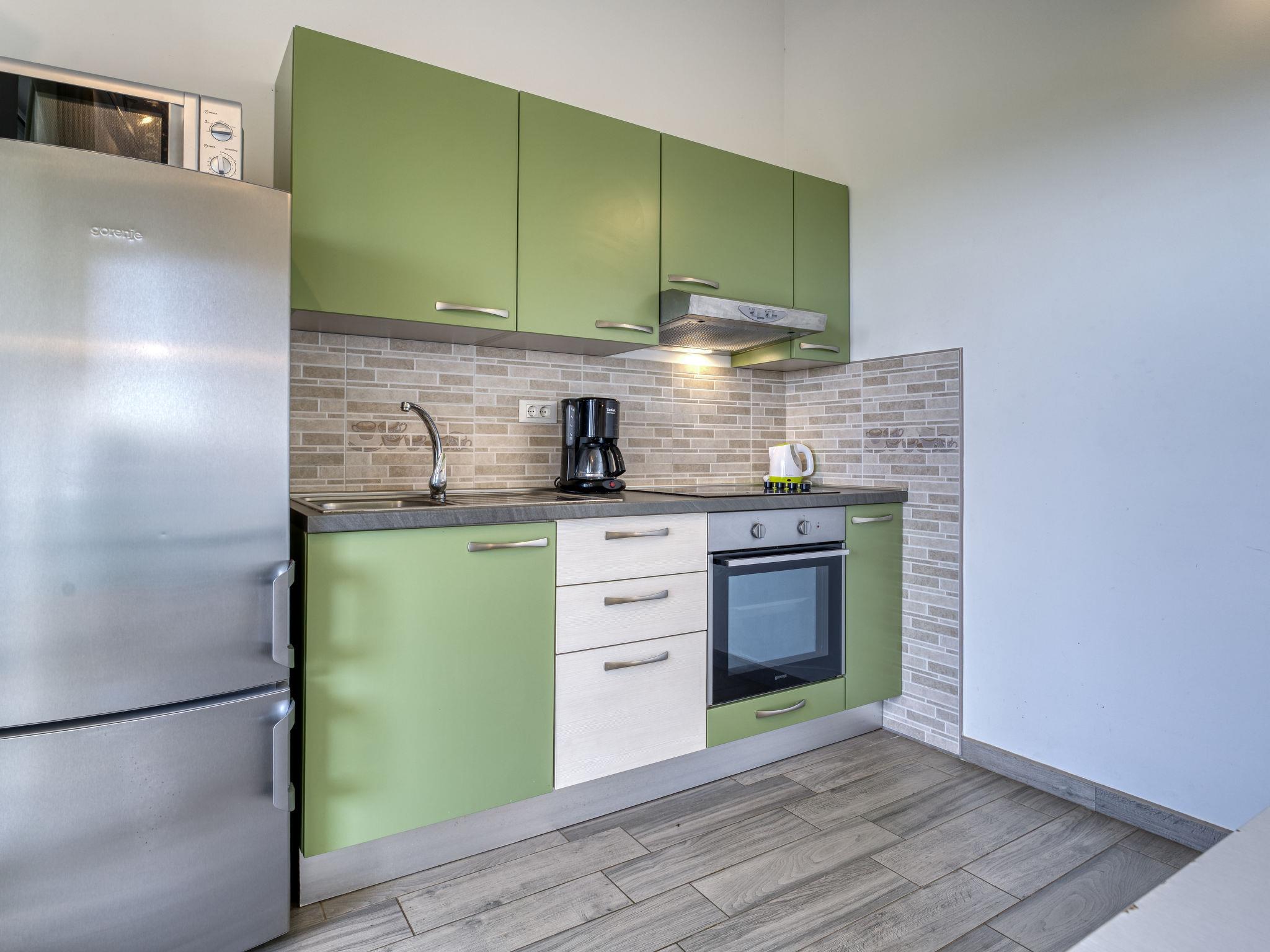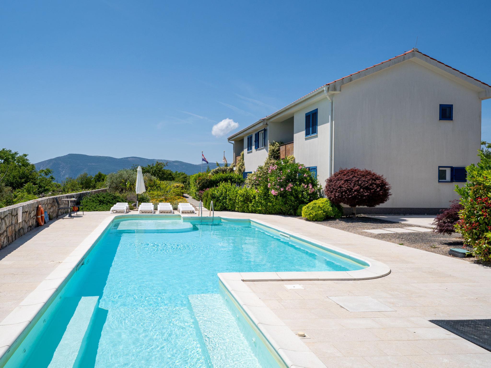 Cosy apartment house "Wabi Sabi Resort 1". In the hamlet Brzac 14 km from the centre of Krk, 14 km from the centre of Malinska, 1.5 km from the sea, 1.5 km from the beach, in the countryside. For shared use: property 1'500 m2 (fenced), well-kept garden with plants and flowers, swimming pool (9 x 6 m, depth 150 cm, seasonal availability: 01.May. - 30.Sep.). Children's pool, outdoor shower, barbecue, children's playground (slide, swing), pool maintenance by the owner/gardener. In the house: reception, internet access, laundry. Parking at the house. Shop 1.2 km, supermarket 5 km, restaurant 1 km, bus stop 1.5 km, ferry "Valbiska" 8 km, pebble beach 1.5 km, rocky beach 3.5 km, diving center 14 km. Marina 25 km, walking paths from the house 20 m. Please note: suitable for families. On request: airport transfer to the holiday accommodation. Airfield 28 km from the property.