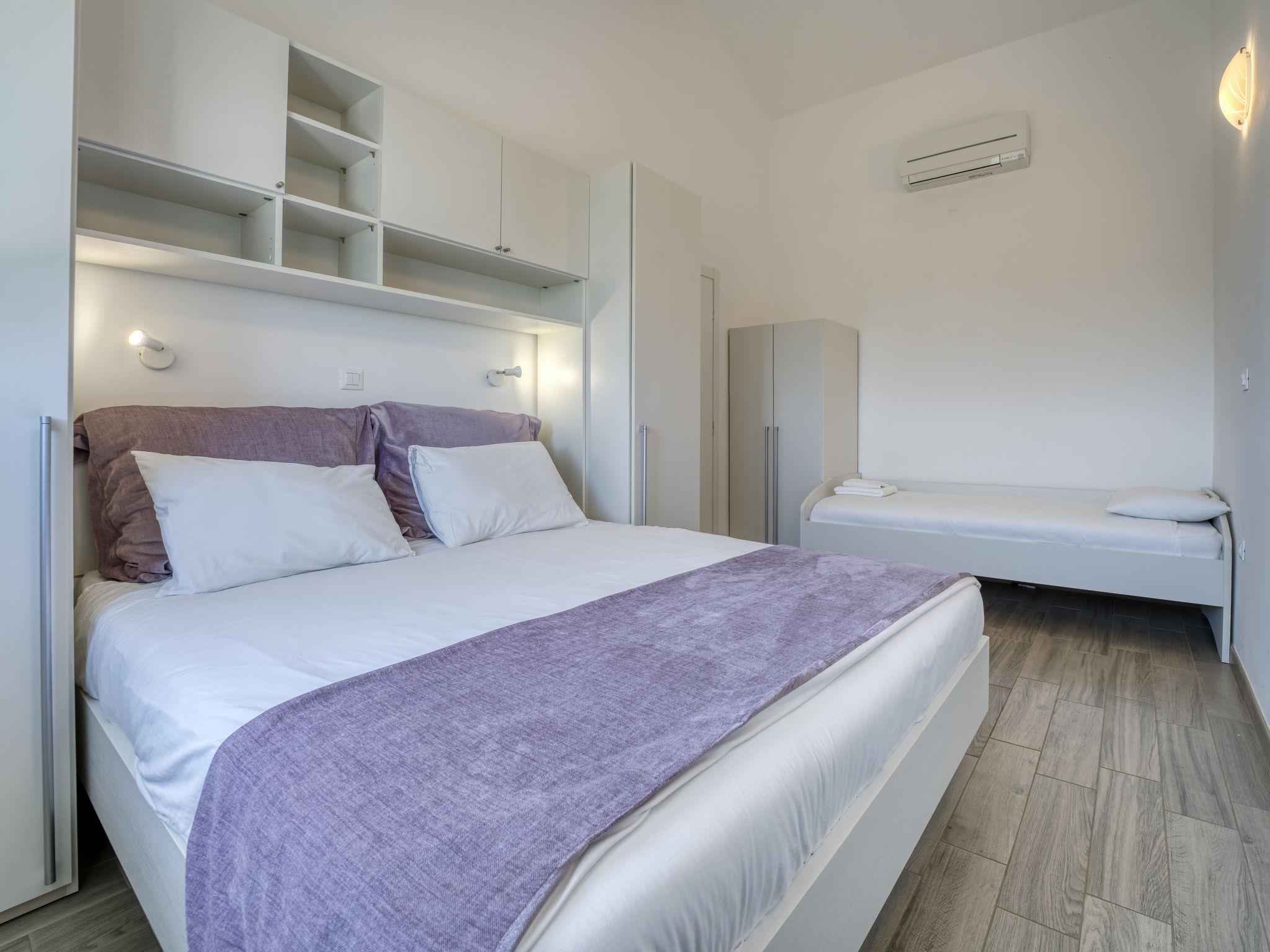 2-room apartment 40 m2 on 1st floor. Living/dining room with 1 sofabed (120 cm, length 200 cm), satellite TV and air conditioning. Exit to the balcony. 1 room with 1 bed (90 cm, length 200 cm), 1 french bed (160 cm, length 200 cm), air conditioning. Open kitchen (oven, 4 ceramic glass hob hotplates, toaster, kettle, microwave, freezer, electric coffee machine). Shower/bidet/WC. Forced-air heating. Balcony 5 m2. Balcony furniture, covered balcony. Panoramic view of the sea. Facilities: Internet (WiFi, free). Please note: non-smoking house. 1 small pet/ dog allowed. Private entrance, fire extinguisher.