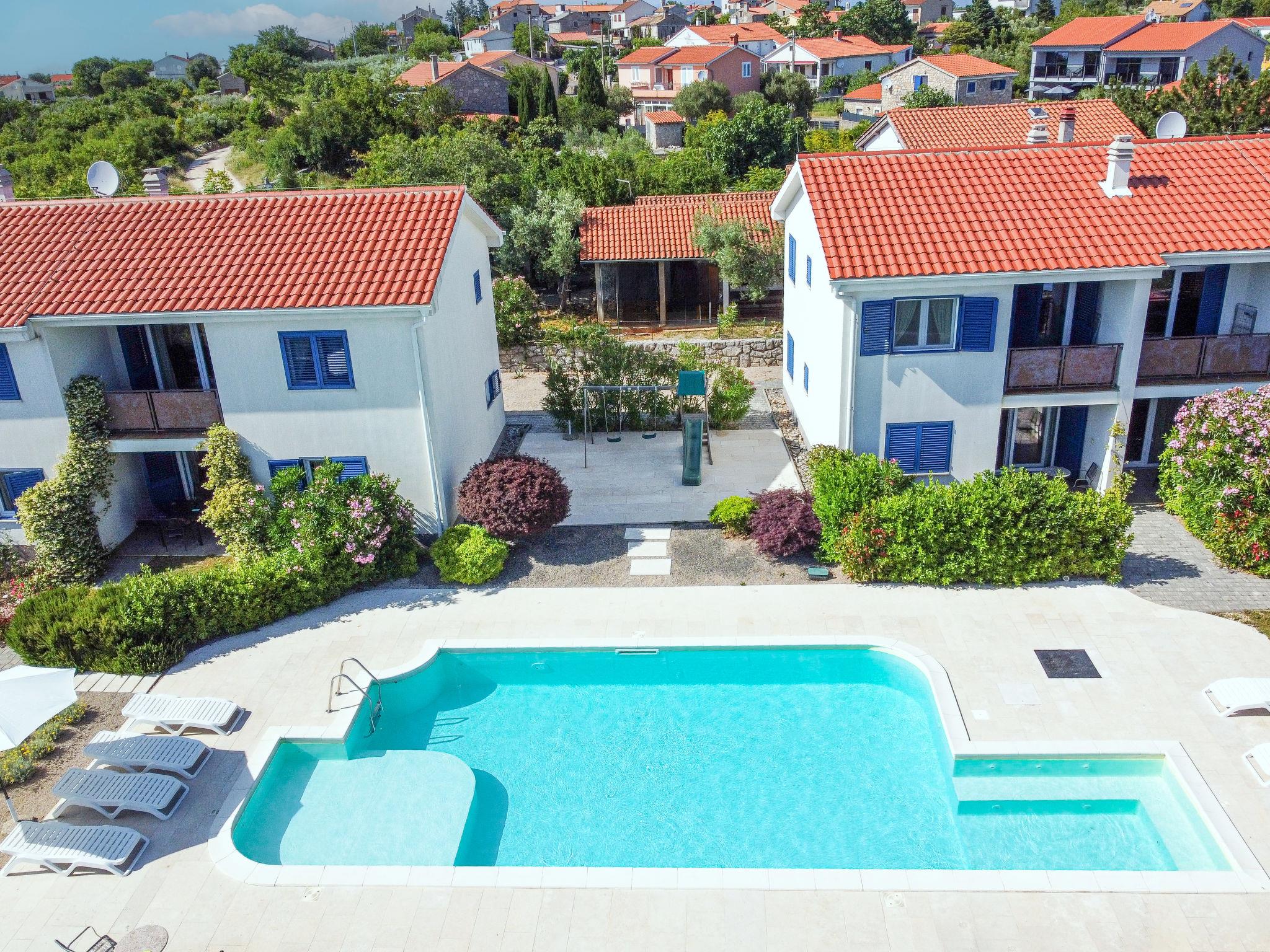 Cosy apartment house "Wabi Sabi Resort 2". In the hamlet Brzac 14 km from the centre of Krk, 14 km from the centre of Malinska, 1.5 km from the sea, 1.5 km from the beach, in the countryside. For shared use: property 1'500 m2 (fenced), well-kept garden with plants and flowers, swimming pool (9 x 6 m, depth 150 cm, seasonal availability: 01.May. - 30.Sep.). Children's pool, outdoor shower, barbecue, children's playground (slide, swing), pool maintenance by the owner/gardener. In the house: internet access. Parking at the house. Shop 1.2 km, supermarket 5 km, restaurant 1 km, bus stop 1.5 km, ferry "Valbiska" 8 km, pebble beach 1.5 km, rocky beach 3.5 km, diving center 14 km. Marina 25 km, walking paths from the house 20 m. Please note: suitable for families. On request: airport transfer to the holiday accommodation. Airfield 28 km from the property.