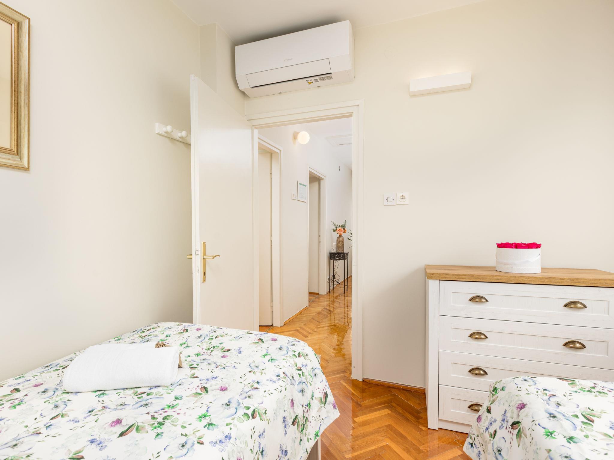 4-room house 90 m2 on 2 levels. Partly renovated in 2025, comfortable furnishings: living/dining room with cable TV and air conditioning. Exit to the balcony. Kitchen (oven, dishwasher, 4 ceramic glass hob hotplates, freezer, electric coffee machine). Sep. WC. Upper floor: 2 rooms, each room with 1 french bed (180 cm, length 200 cm), air conditioning. Exit to the balcony. 1 room with 2 beds (80 cm, length 200 cm), air conditioning. Bath/bidet/WC. Forced-air heating. Balcony 15 m2, terrace 20 m2 partly roofed. Terrace furniture, deck chairs. Very beautiful, of the sea. Facilities: children's high chair, baby cot. Internet (WiFi). Please note: non-smoking house. Maximum 1 small pet/ dog allowed.