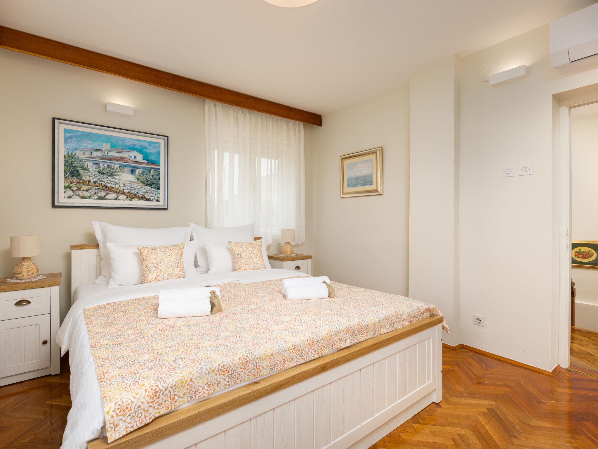 Cosy single-family house "Villa Gisela", 2 storeys, detached. In the hamlet Vantacici 3 km from the centre of Malinska, 10 m from the sea, 50 m from the beach, direct access to the beach. Private: property 600 m2 (fenced) with natural garden. Barbecue, parking (for 2 cars) at the house on the premises. Shop 100 m, supermarket 3.5 km, bakery 80 m, bus stop 100 m, pebble beach 50 m. Groups of teenagers on request only. Please note: airfield 18 km from the property.