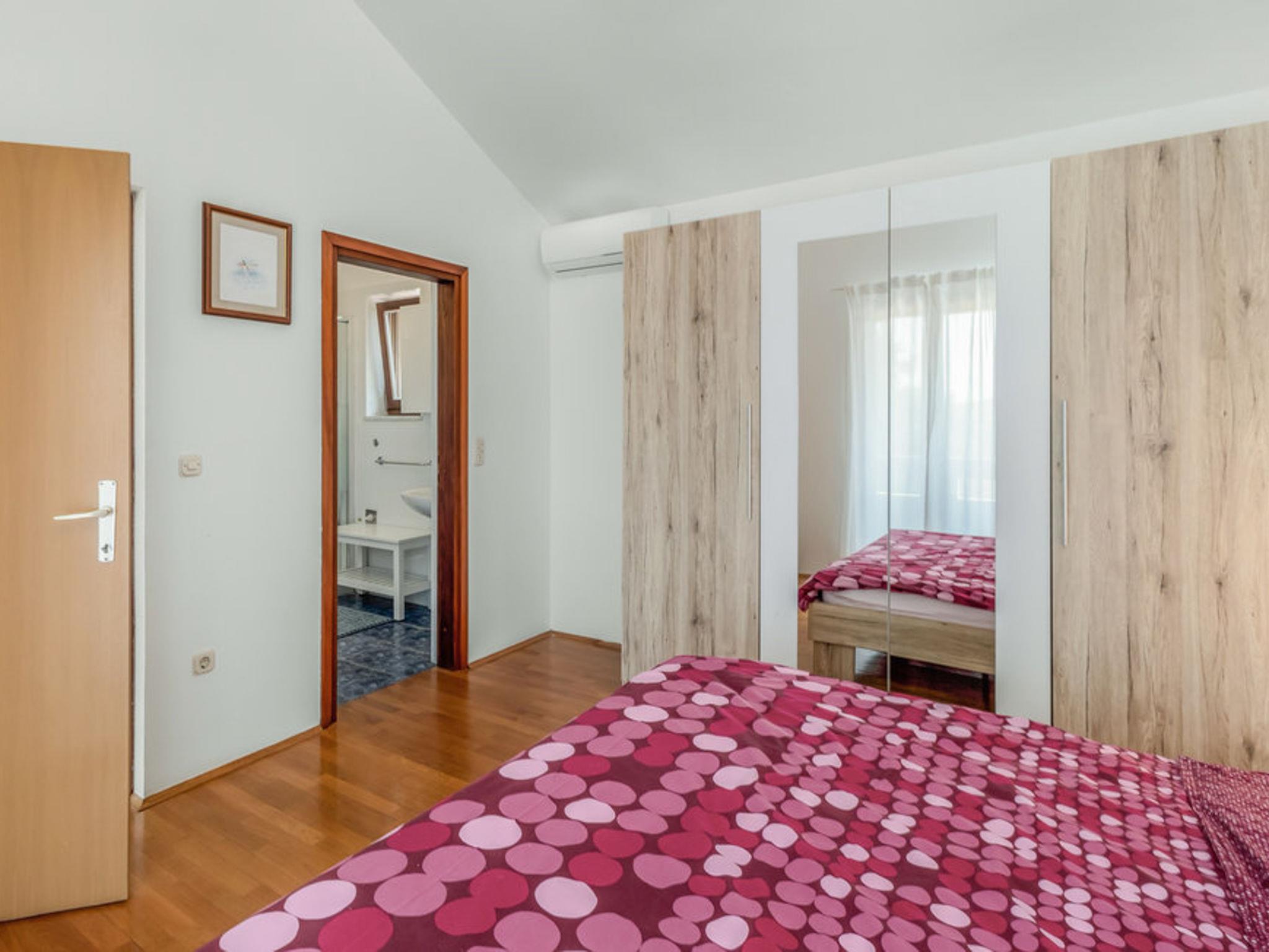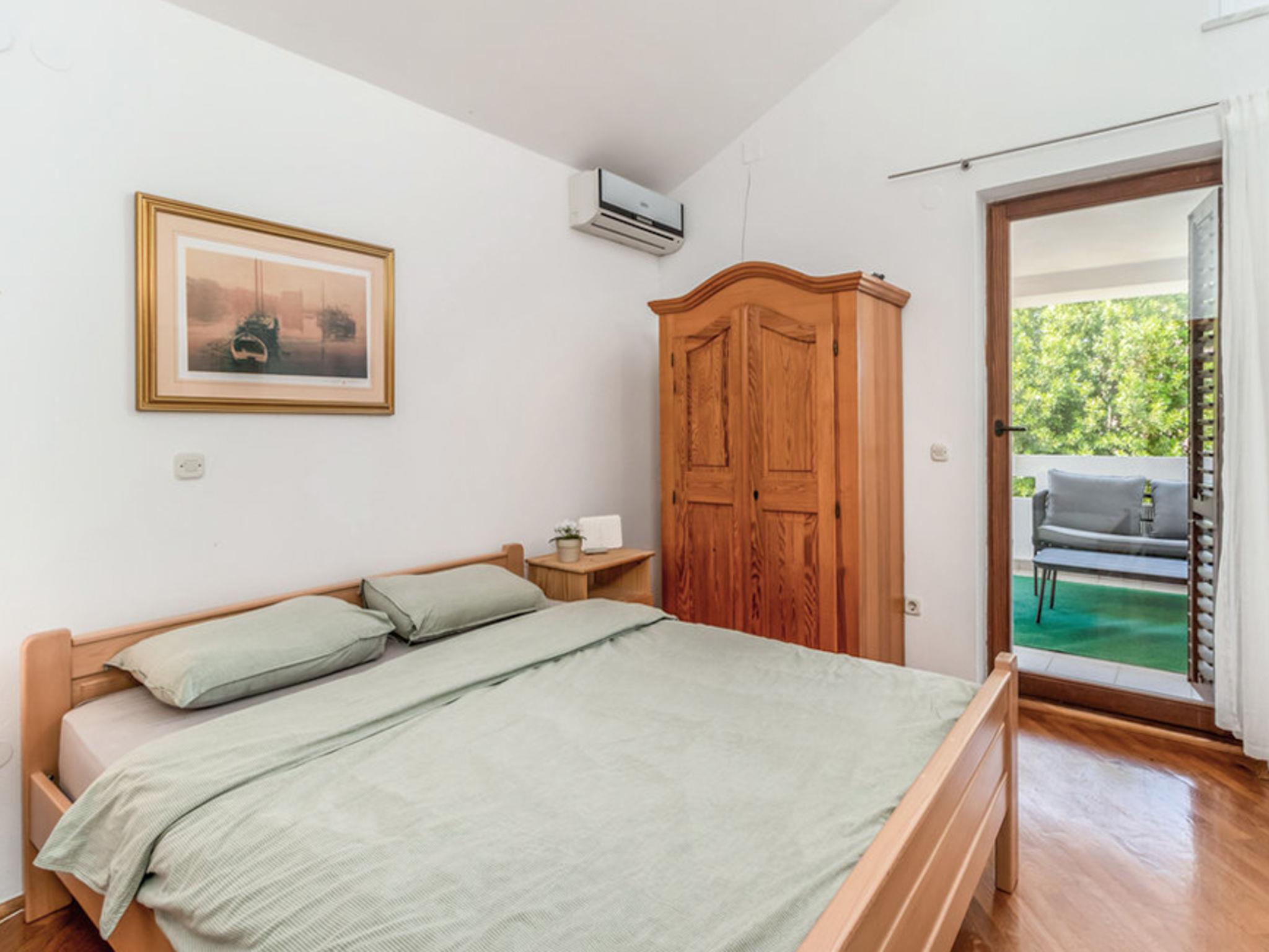 5-room house 125 m2 on 2 levels. Living/dining room with satellite TV. Exit to the terrace. 1 room with 2 beds (90 cm, length 200 cm), air conditioning. Exit to the garden. Open kitchen (oven, dishwasher, 4 ceramic glass hob hotplates, toaster, kettle). Exit to the terrace. Shower/WC. Upper floor: 2 rooms, each room with 1 french bed (180 cm, length 200 cm), shower/WC and air conditioning. Exit to the loggia. 1 room with 1 french bed (180 cm, length 200 cm), air conditioning. Shower/WC. Forced-air heating. Terrace 20 m2, roofed. Terrace furniture, balcony furniture, deck chairs, covered balcony. Facilities: Internet (WiFi). Please note: non-smoking house. Fire extinguisher.