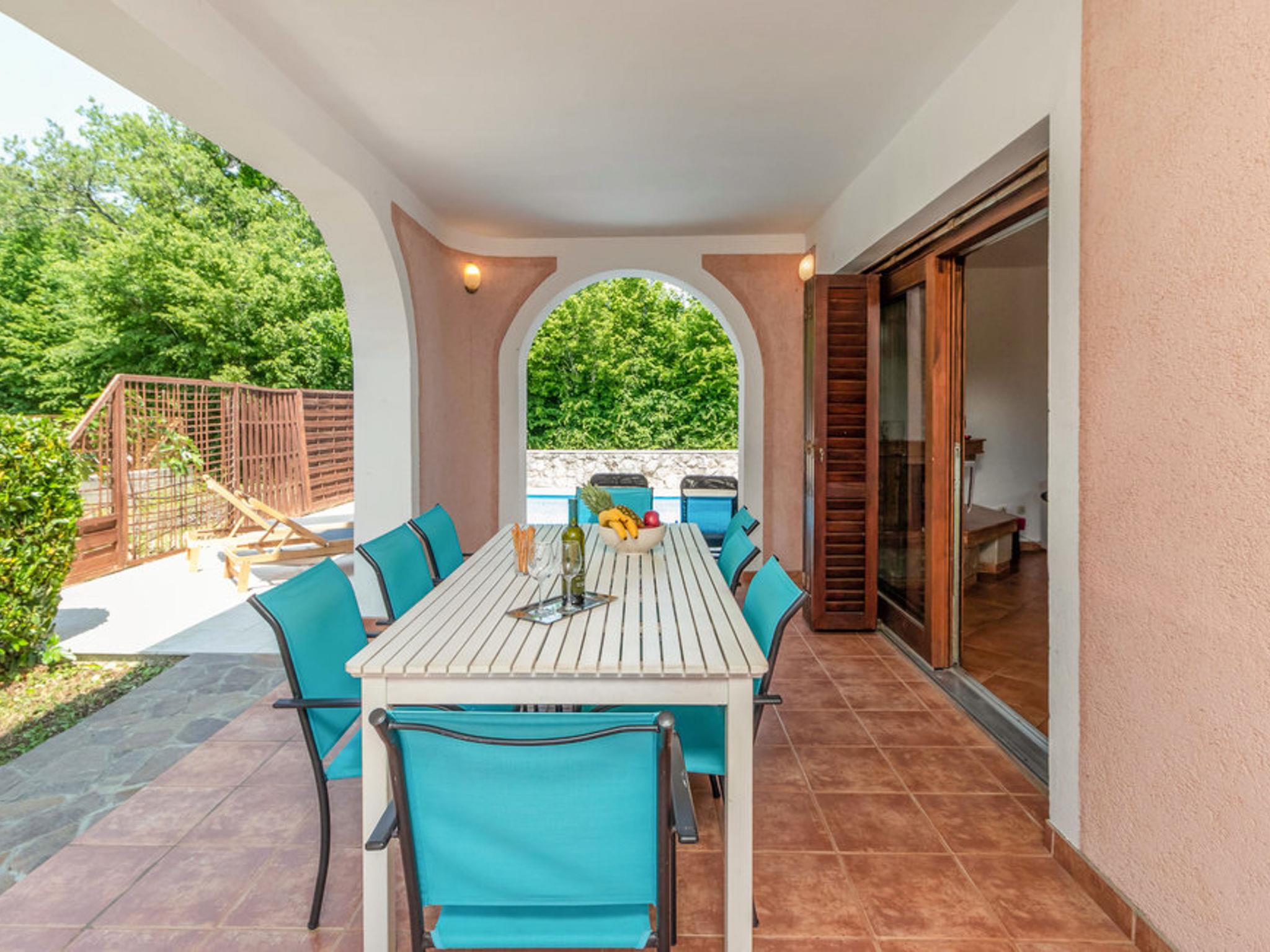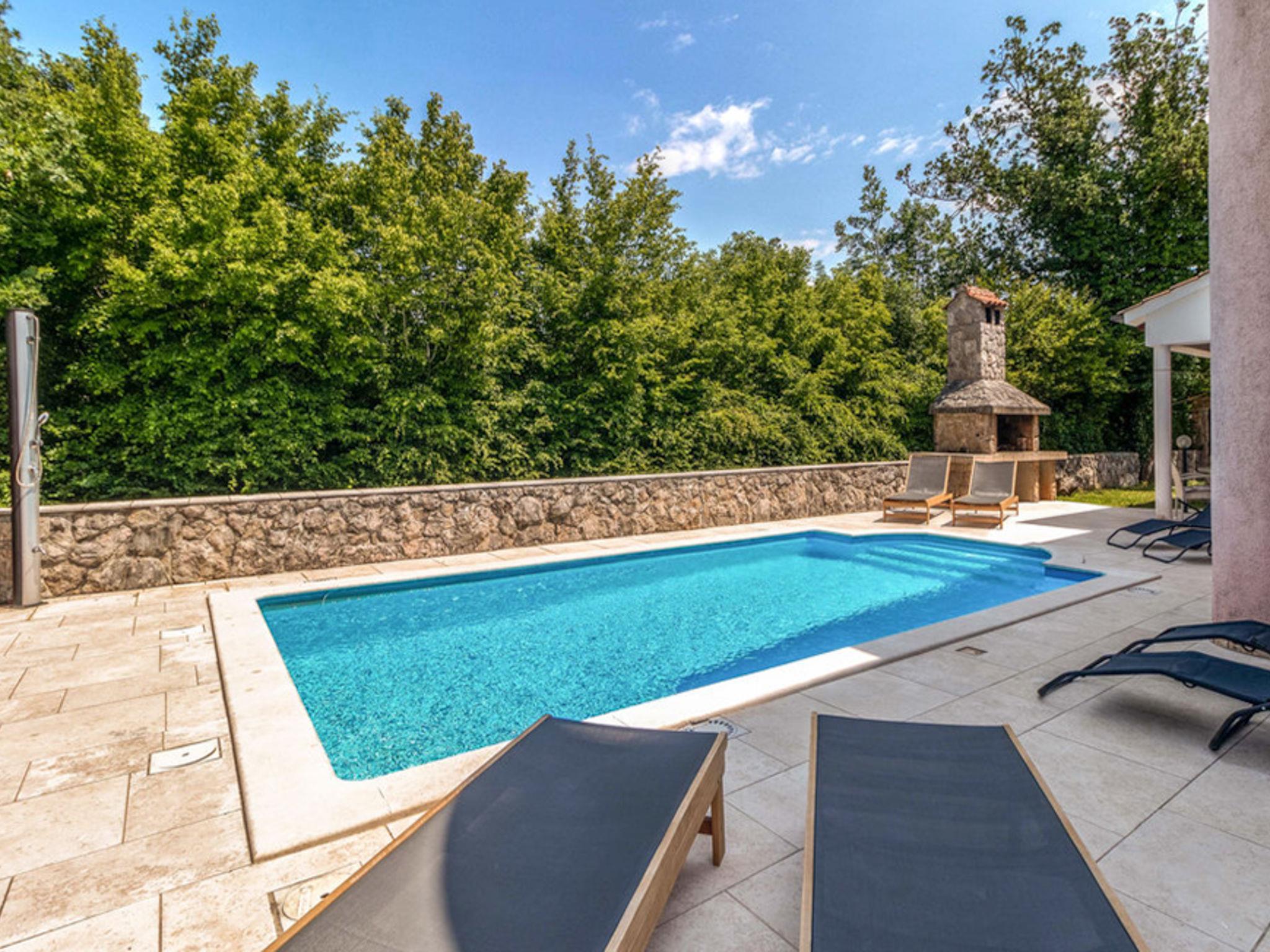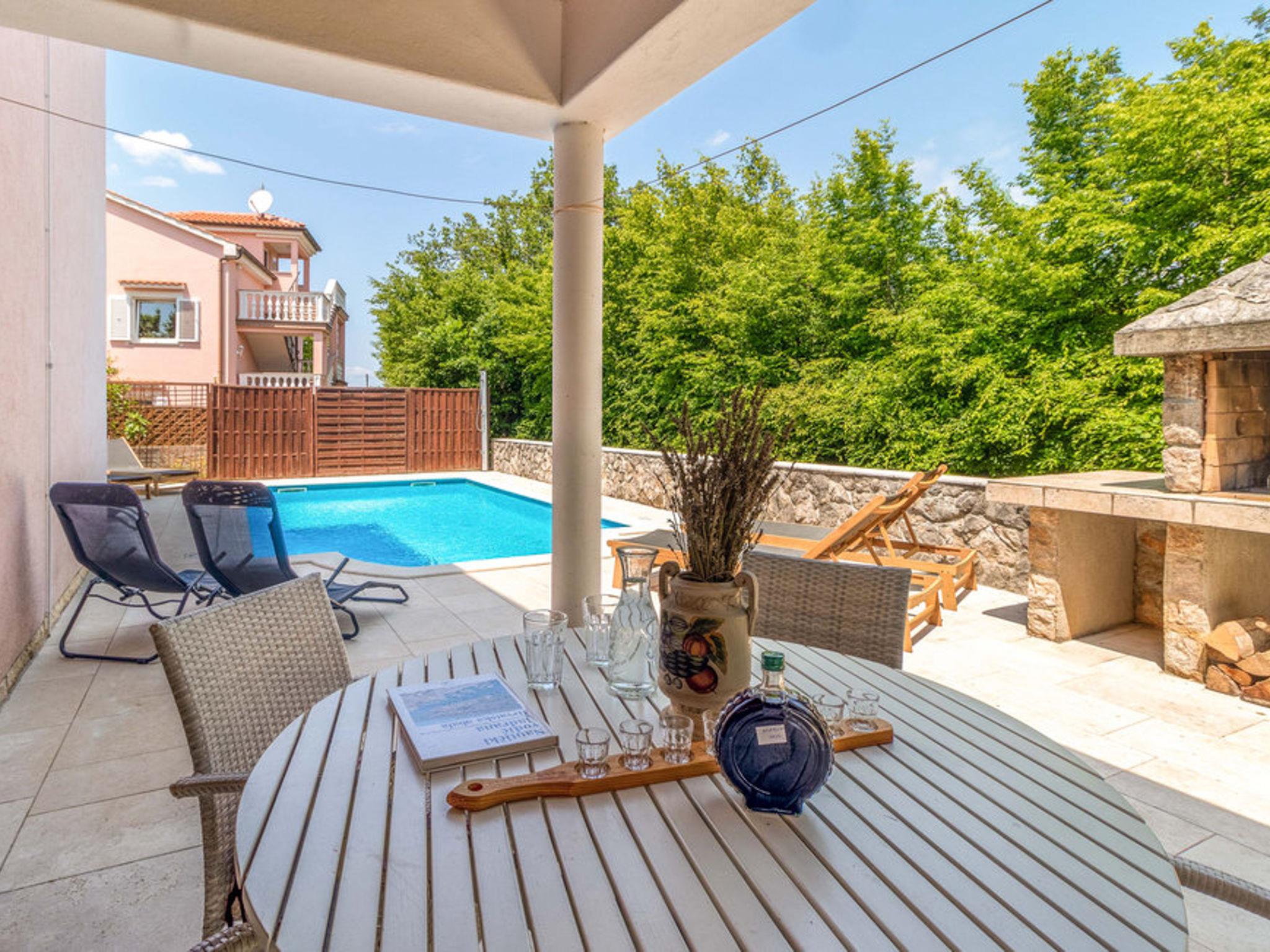 Single-family house "Karlo", 2 storeys. In the hamlet Gabonjin 3 km from the centre of Malinska, 3 km from the sea, 3 km from the beach. Private: property 500 m2 (fenced), natural garden, swimming pool angular (24 m2, depth 150 cm, seasonal availability: 01.May. - 01.Oct.). Outdoor shower, terrace (10 m2), garden furniture, barbecue. In the house: WiFi, washing machine. Parking (for 3 cars) at the house on the premises. Shop 200 m, restaurant 1.5 km, bus stop 1.5 km, pebble beach 3 km. The owner does not accept any youth groups. Please note: airfield 17 km from the property.