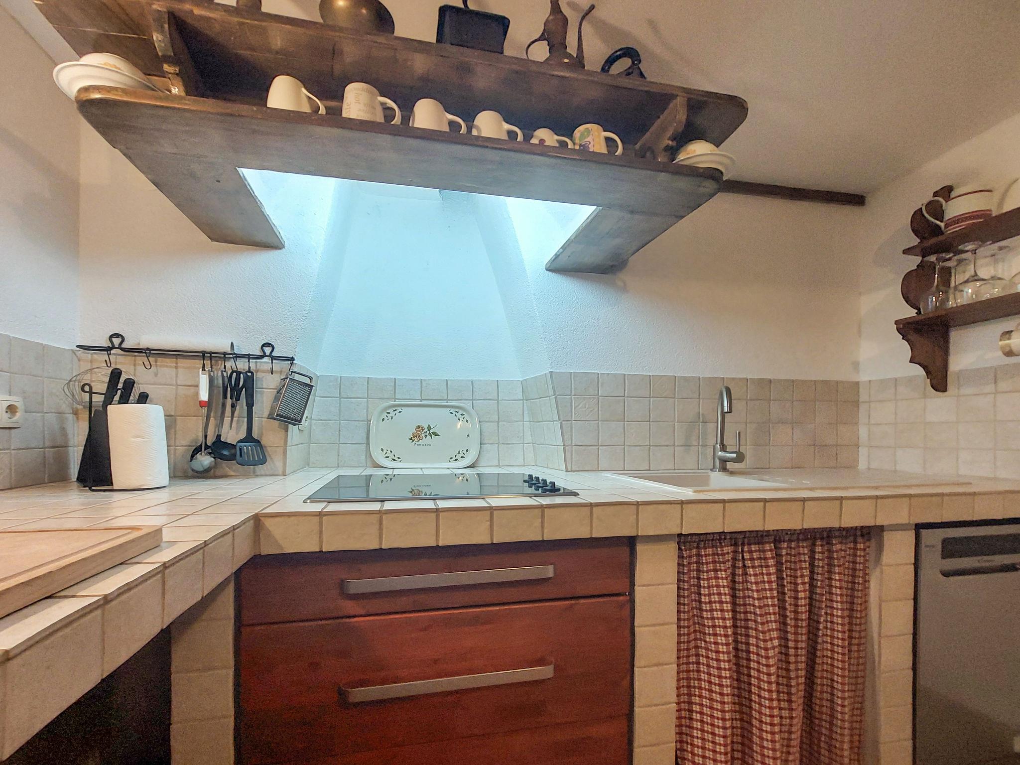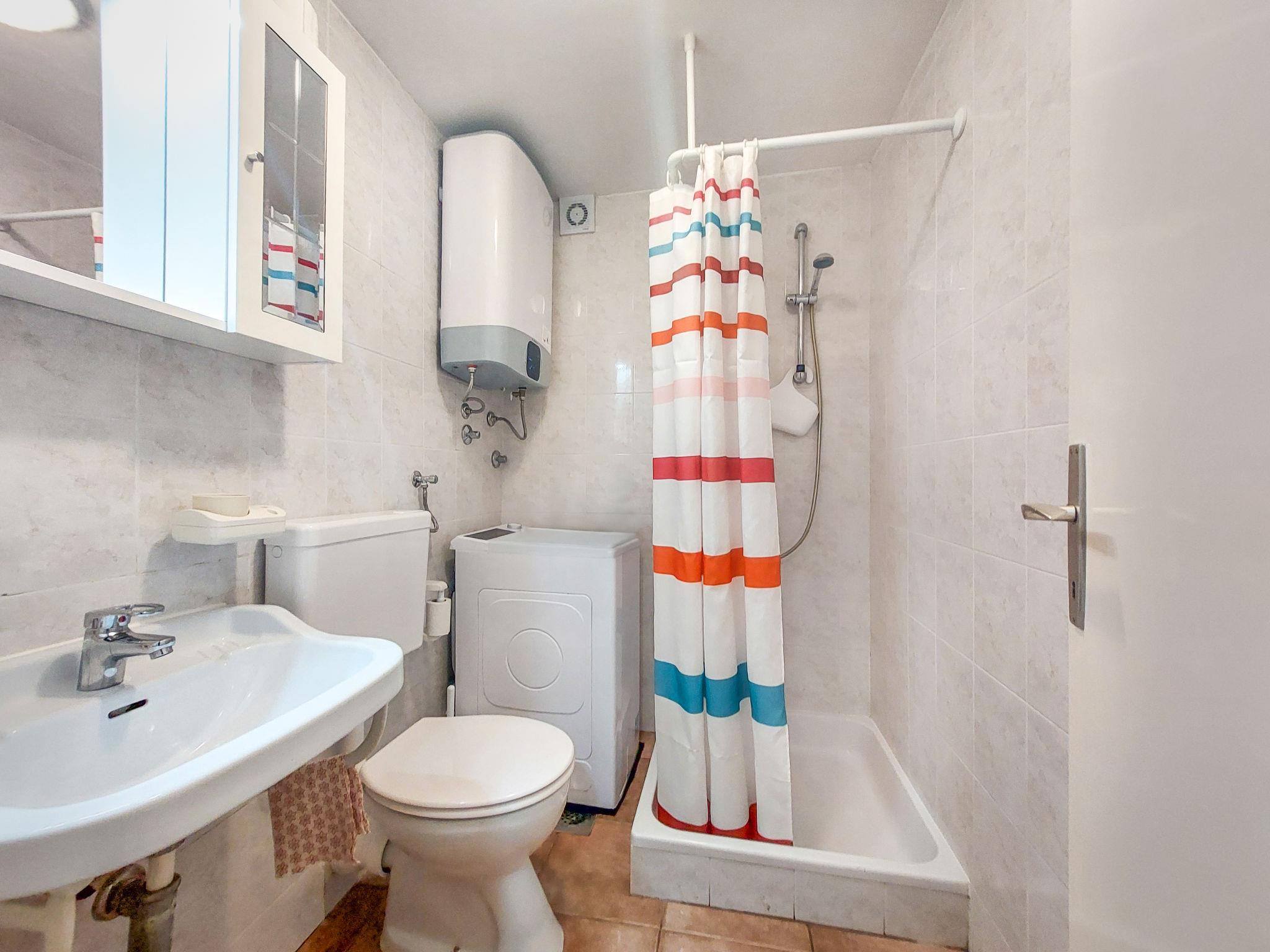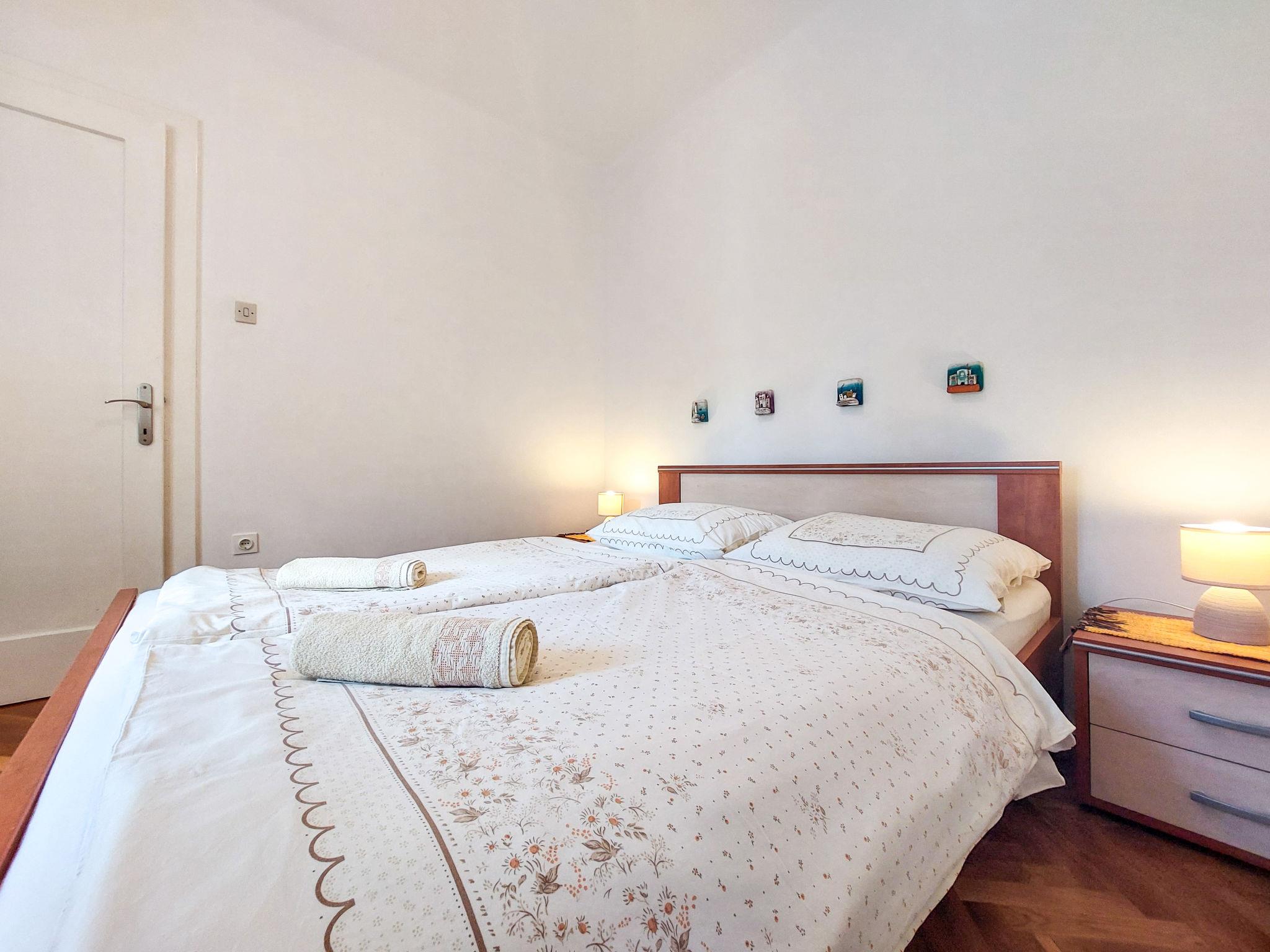 4-room house 70 m2 on 2 levels. Dining room with dining table. Kitchen (dishwasher, 4 ceramic glass hob hotplates, toaster, kettle, microwave, freezer, electric coffee machine). Exit to the terrace. Shower/WC. Upper floor: (exterior staircase) entrance hall with air conditioning. Exit to the terrace. Living room with 1 double sofabed and satellite TV. 1 room with 1 double bed (2 x 80 cm, length 200 cm). 1 room with 1 french bed (160 cm, length 200 cm). Open kitchen (2 hot plates, oven, 2 gas rings, freezer). Bath/WC. No heating option. Terrace 28 m2, terrace 30 m2, roofed. Terrace furniture, deck chairs (2). Facilities: children's high chair, baby cot. Internet (WiFi, free). Please note: non-smoking house. Maximum 2 pets/ dogs allowed. No internal connecting door between the floors. UP/I-335-03/06-01/594 Ur.broj:2170-83-03-06-3