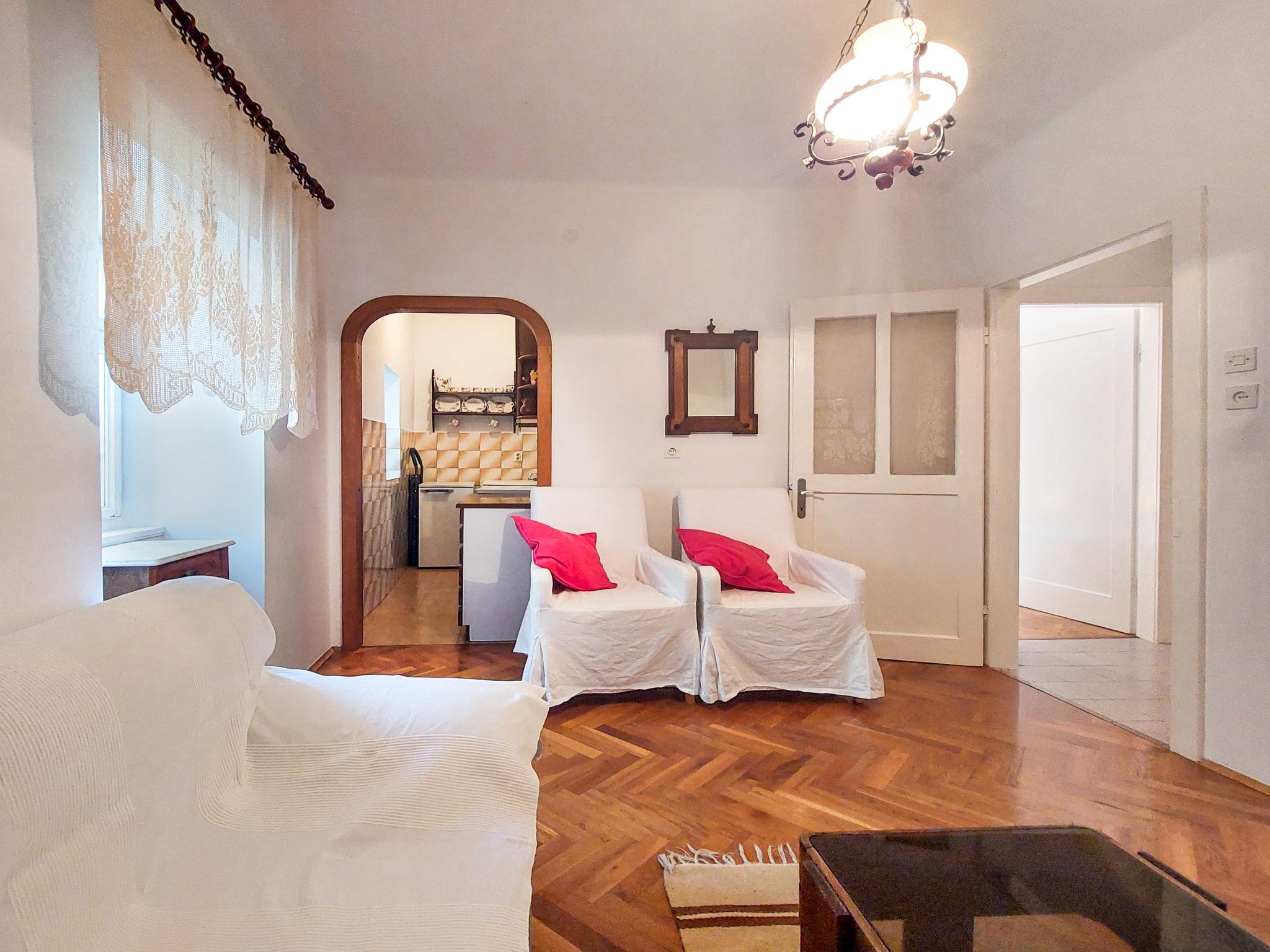 Single-family house "Ljudevit", 2 storeys. 13.5 km from the centre of Malinska, 450 m from the centre of Polje, 13 km from the centre of Vrbnik, 2.5 km from the sea, 2.5 km from the beach. Private: property 1'500 m2 with trees, meadow. Outdoor shower, barbecue, children's playground (swing). In the house: internet access, washing machine. Parking (for 3 cars) on the premises. Shop 450 m, bus stop 1.8 km, sandy beach 2.5 km. Please note: airfield 17 km from the property.