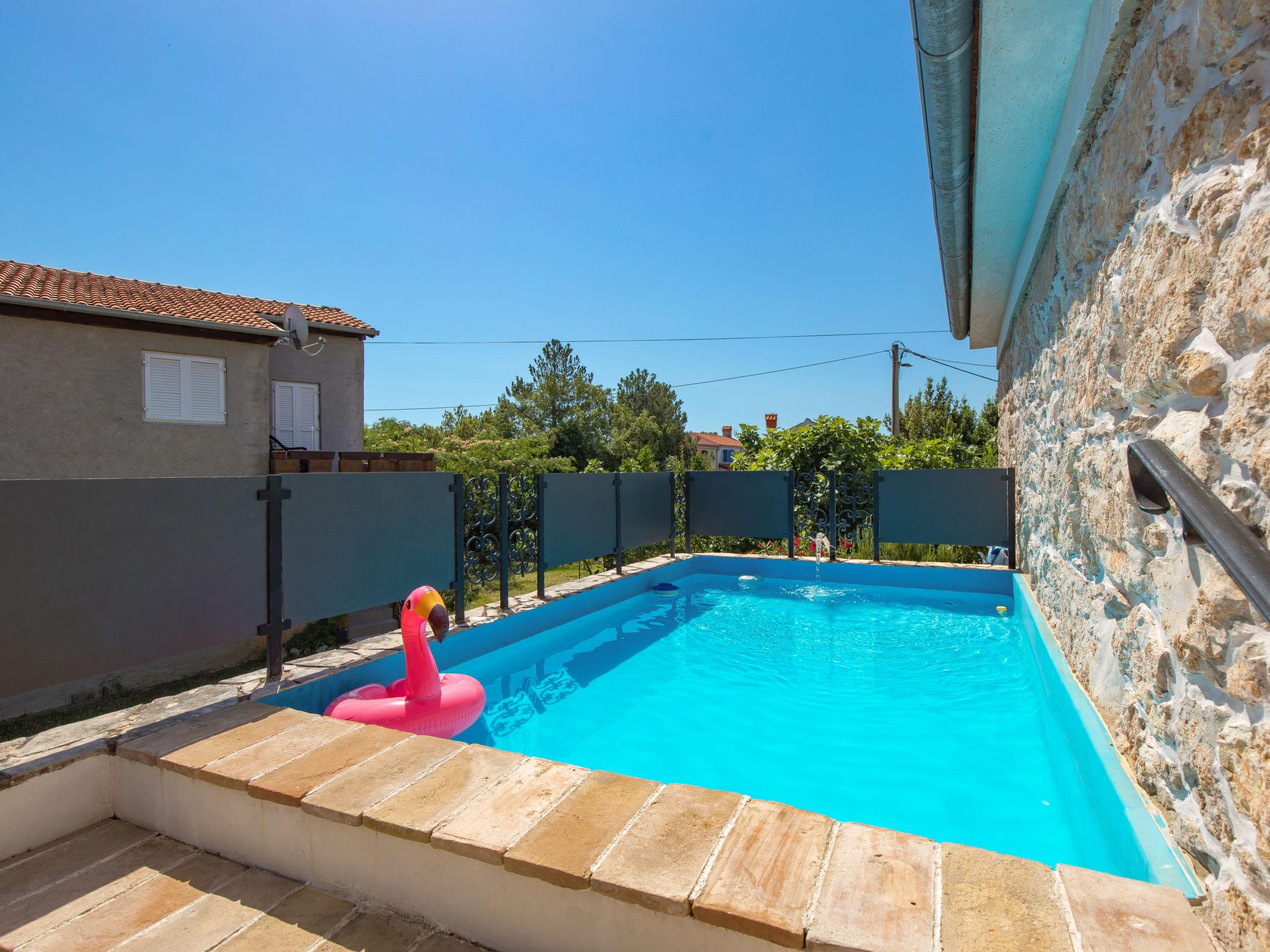 2-family house "Mia". In the hamlet Gabonjin 4.5 km from the centre of Malinska, 1.5 km from the centre of Rasopasno, 5.5 km from the centre of Dobrinj, 4.5 km from the sea. For shared use: property 1'000 m2 (fenced) with plants and trees. Children's pool, barbecue. In the house: internet access. 250 m long narrow motor access to the house. Parking on the premises. Shop 600 m, bus stop 3.4 km, pebble beach 4.5 km, rocky beach 4.5 km. Please note: the owner lives in the same residence. Airfield 16 km from the property. Children's pool available from 01.05. - 01.10.