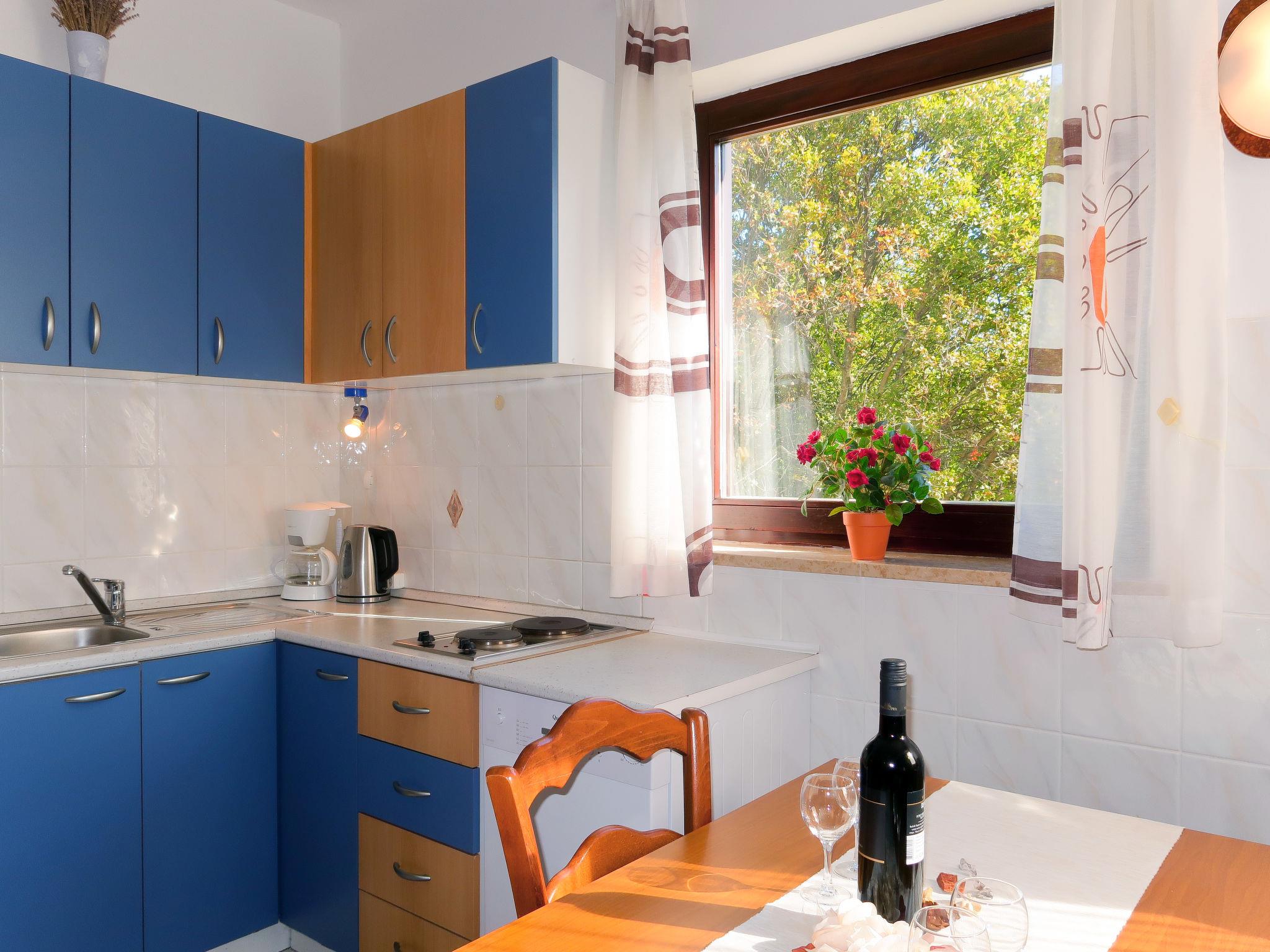 "Radmila", 2-room apartment 32 m2 on 1st floor. Living/dining room with 1 double sofabed (150 cm, length 200 cm), satellite TV and air conditioning. 1 room with 1 french bed (160 cm, length 200 cm). Exit to the balcony. Open kitchen (2 hot plates, dishwasher, toaster, kettle, microwave, electric coffee machine). Shower/WC. Heating (extra), air-conditioning (extra). Balcony. Balcony furniture. Facilities: washing machine. Internet (WiFi, free). Please note: non-smoking house. Maximum 1 pet/ dog allowed.