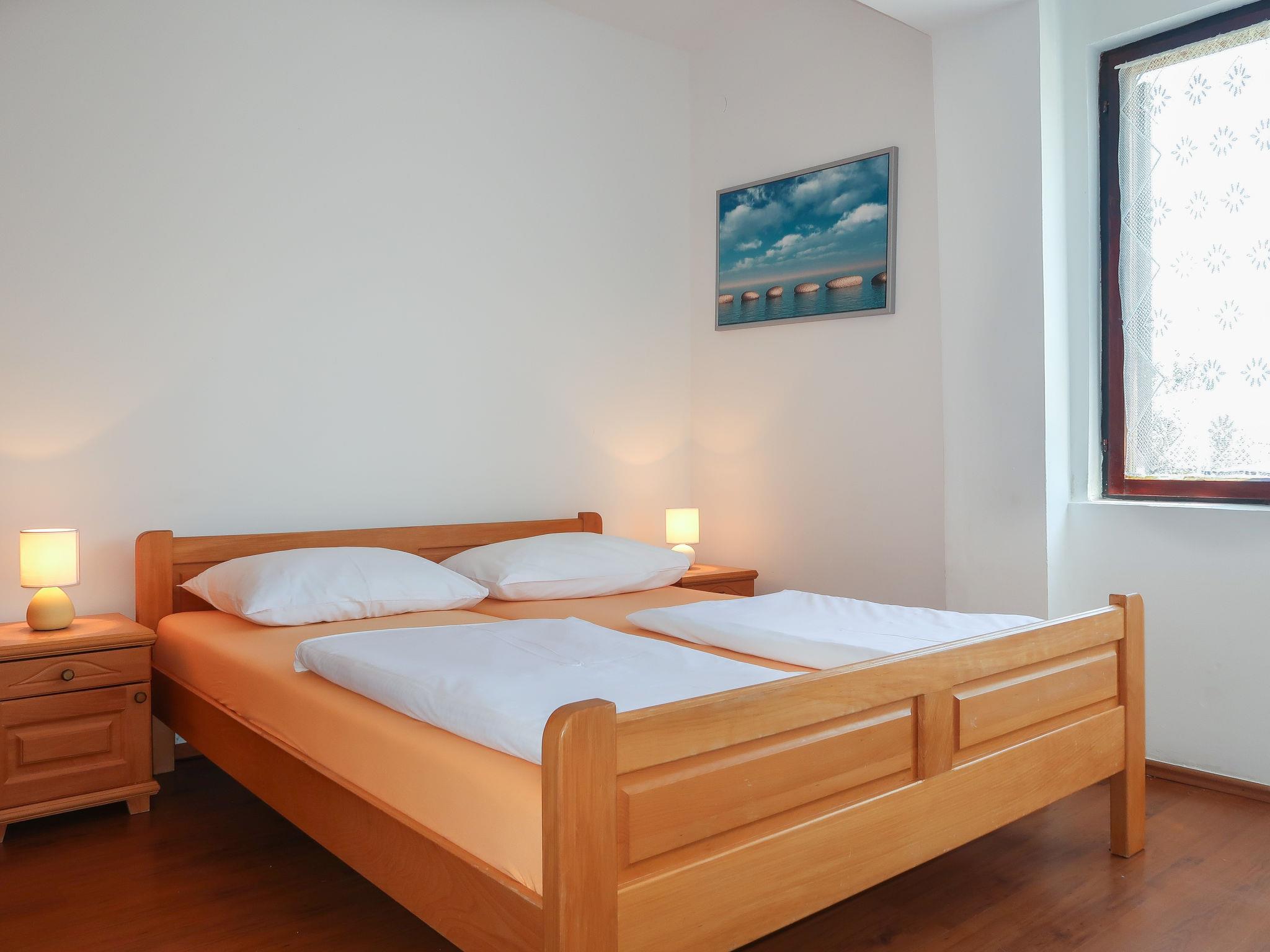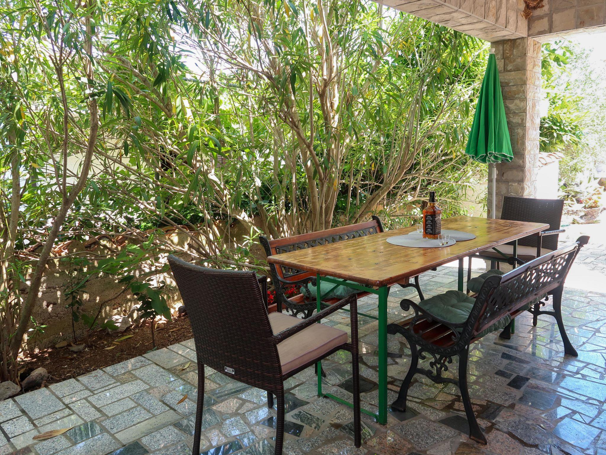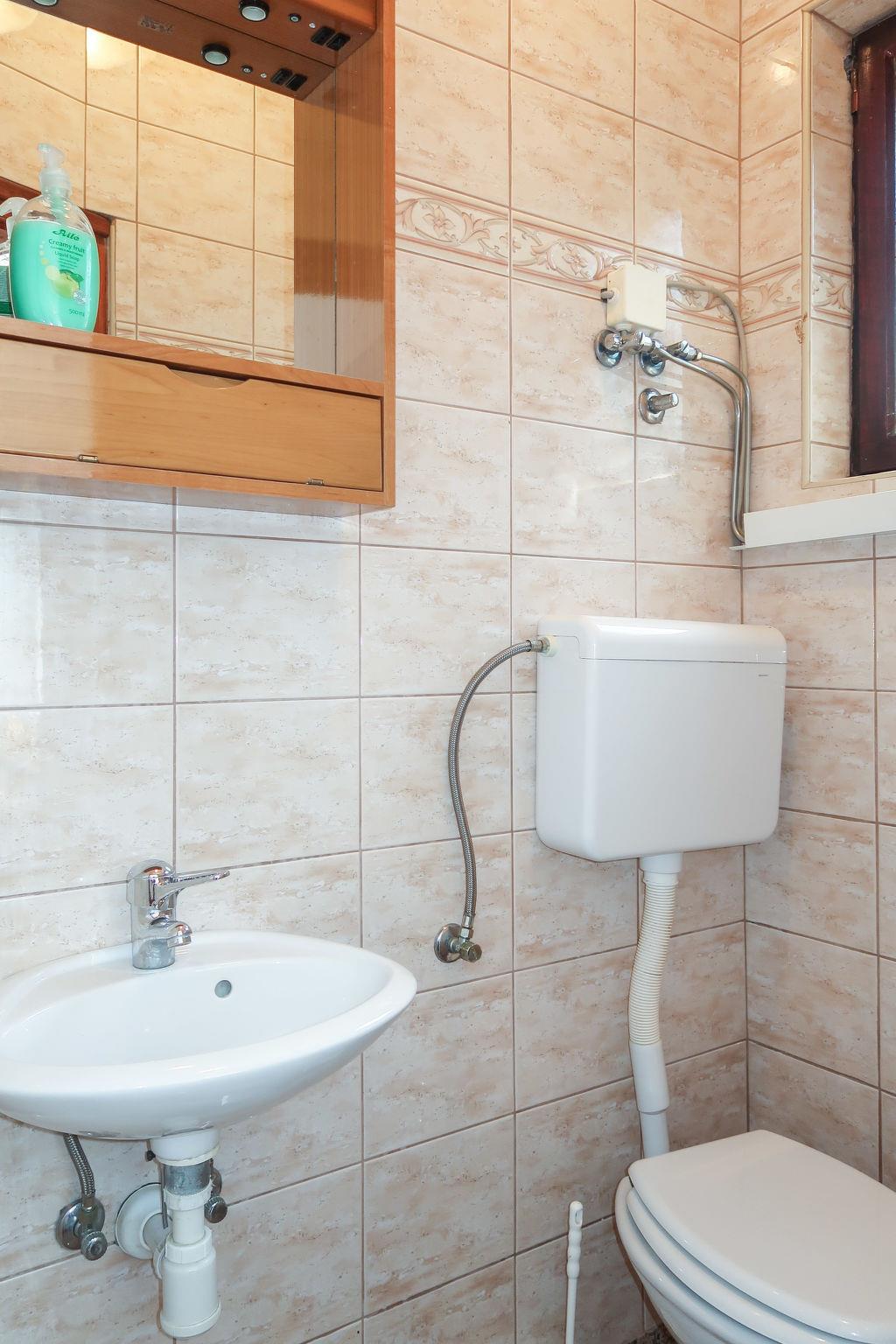 "Maravic", 3-room semi-detached house 70 m2 on 2 levels. Living/dining room with satellite TV. Exit to the terrace. Open kitchen (1 hot plate, oven, 3 gas rings, toaster, kettle, microwave, freezer, electric coffee machine). Shower/WC. Upper floor: 1 room with 1 bed (90 cm, length 200 cm), 1 double bed (2 x 80 cm, length 200 cm), air conditioning. Exit to the balcony. 1 room with 1 double bed (2 x 80 cm, length 200 cm), air conditioning. Exit to the balcony. Sep. WC. No heating option. Balcony 15 m2, balcony terrace 15 m2, roofed. Terrace furniture, balcony furniture, deck chairs. Facilities: Internet (WiFi, free). Please note: non-smoking house. Maximum 1 pet/ dog allowed. Private entrance.