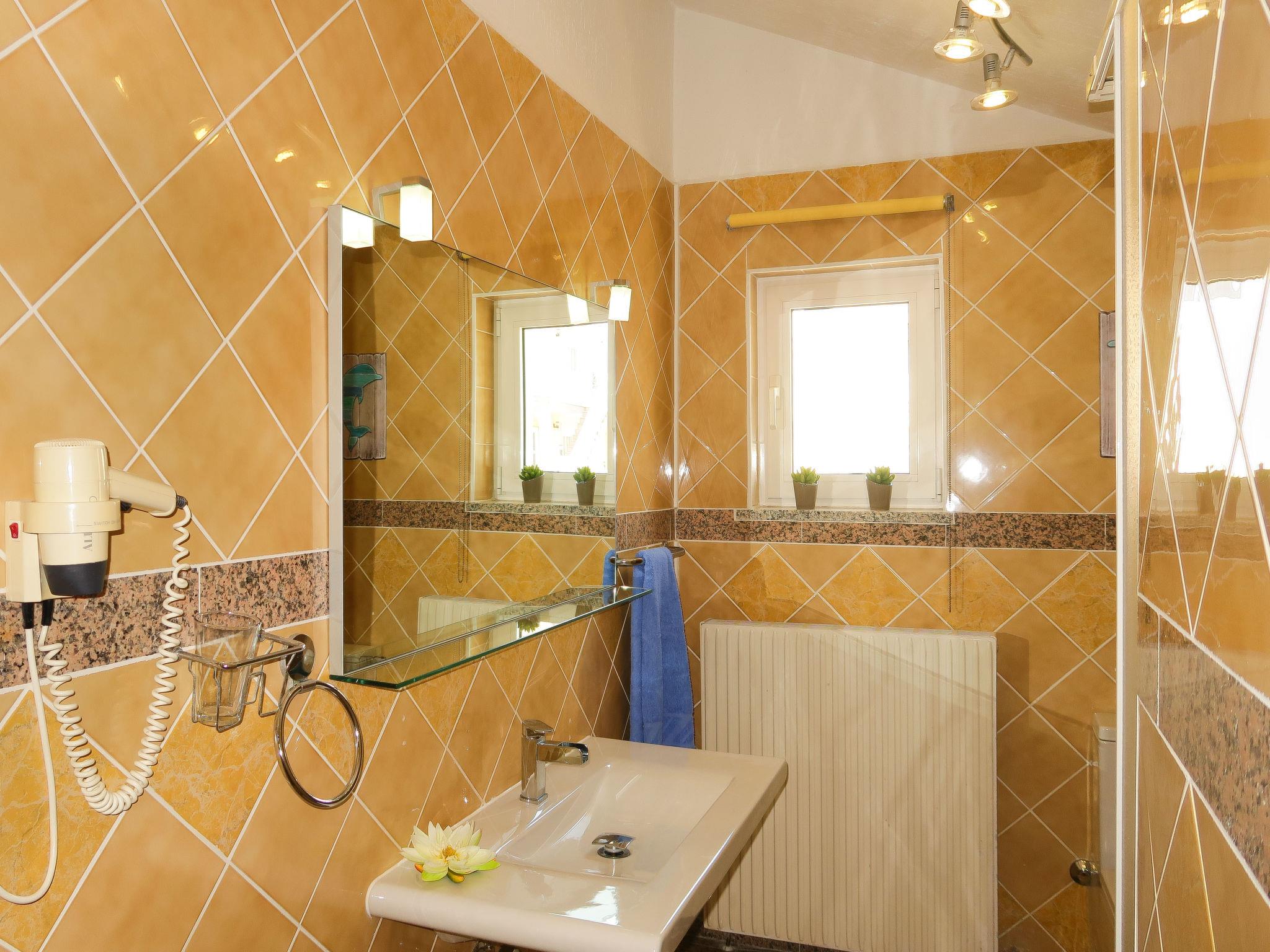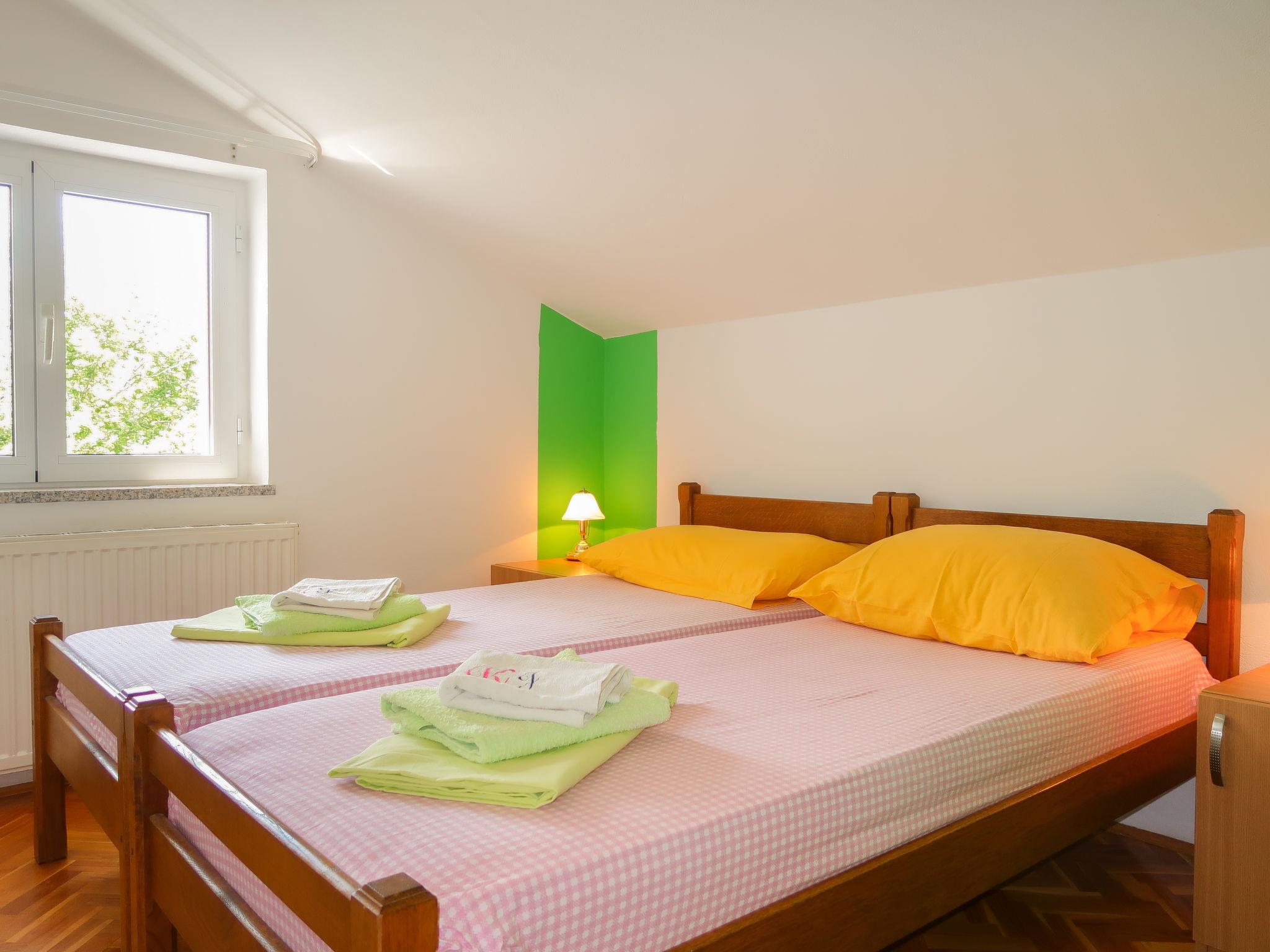 "Blekic", 3-room apartment 60 m2 on 1st floor. Living/dining room with sloping ceilings with 1 sofabed, satellite TV and air conditioning. Exit to the terrace. 1 room with sloping ceilings with 3 beds (90 cm, length 200 cm). 1 room with sloping ceilings with 2 beds (90 cm, length 200 cm). Open kitchen (2 ceramic glass hob hotplates, toaster, kettle, microwave, electric coffee machine). Shower/WC. No heating option. Balcony. Balcony furniture. View of the sea. Facilities: mosquito net, baby cot. Internet (WiFi, free). Parking (2 cars). Please note: non-smoking house. Maximum 3 pets/ dogs allowed.