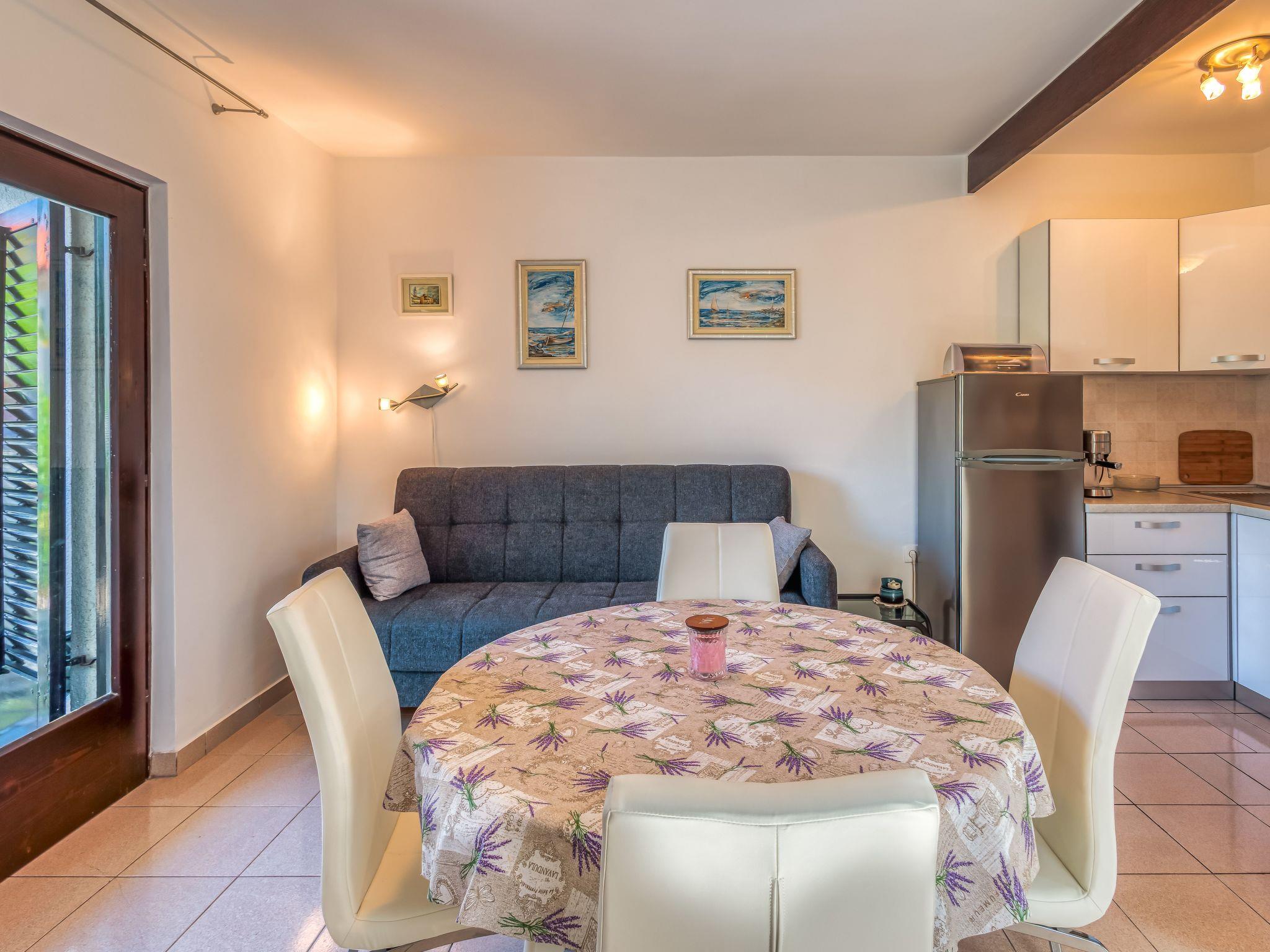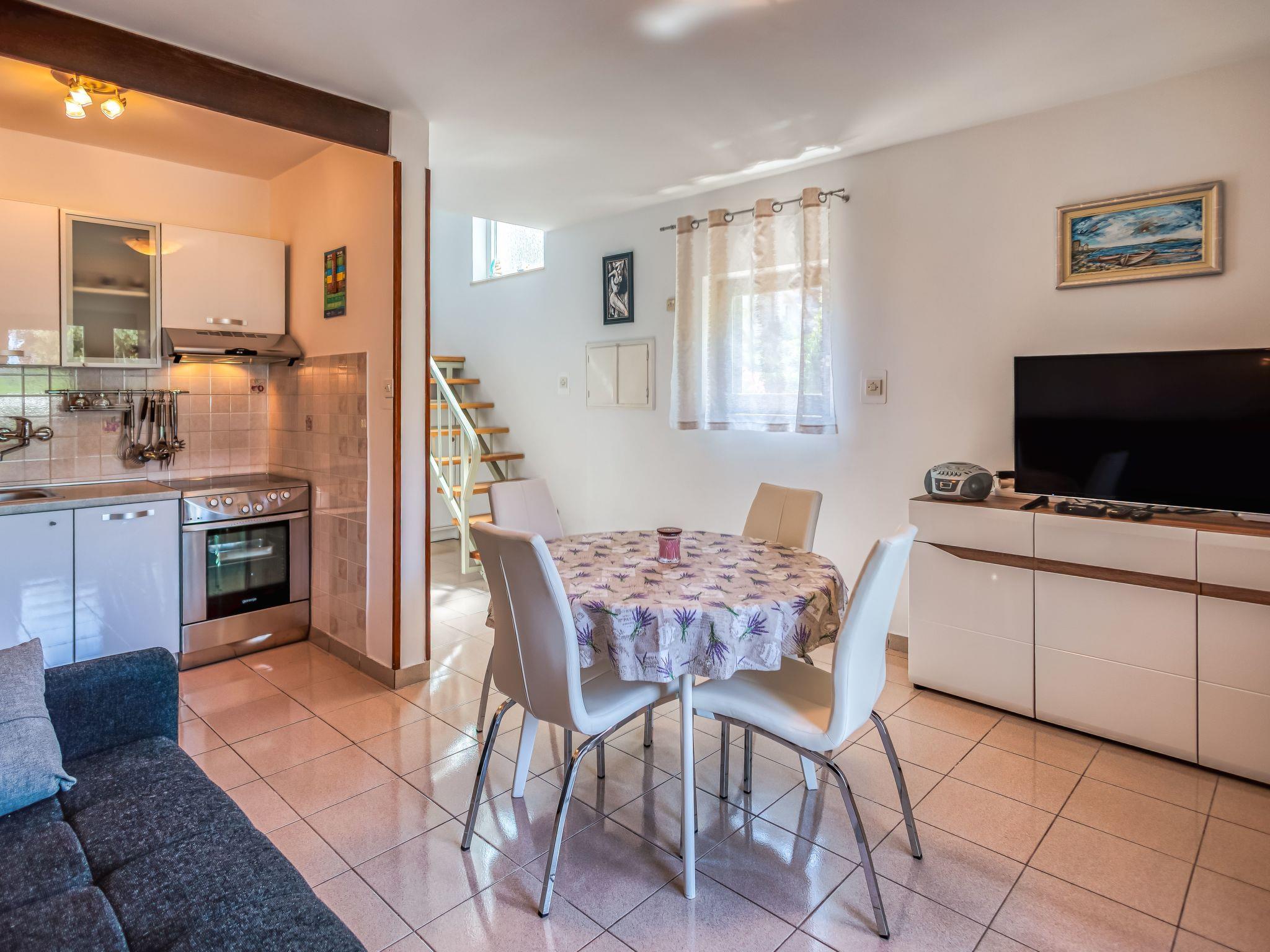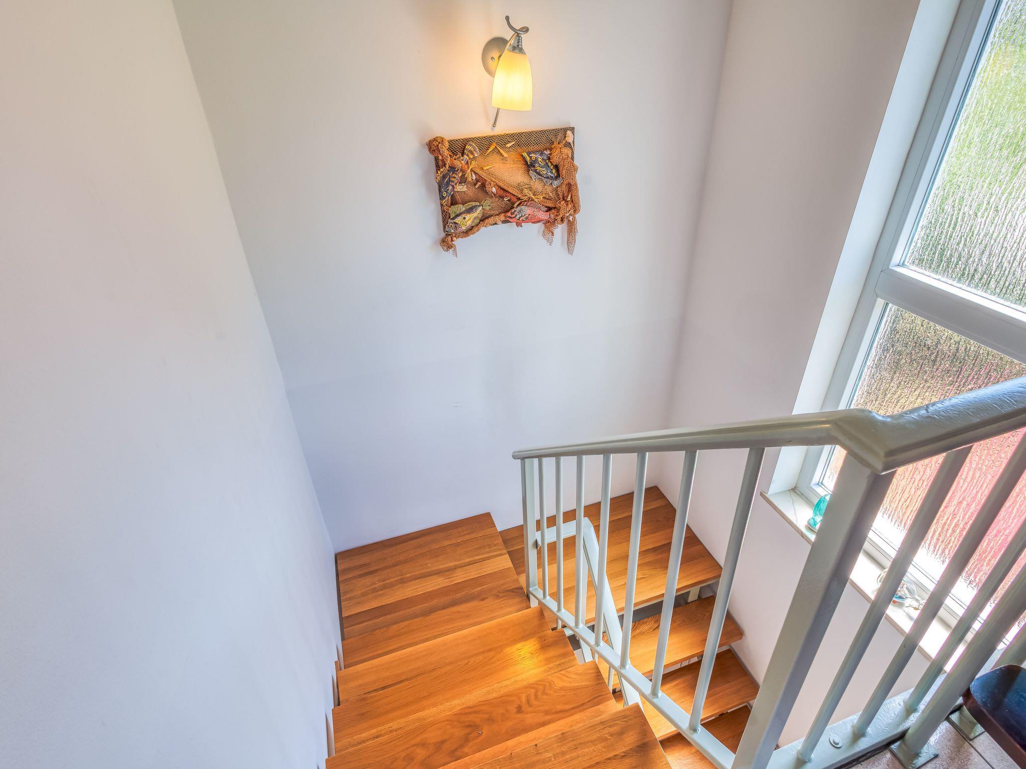 The 80m² apartment consists of a living room-kitchen, two bedrooms, a bathroom and a terrace. The air-conditioned living room comprises a comfortable sitting area with a leather sofa, a TV and a dining table, as well as an open cooking corner equipped with a stove, oven, coffee machine, fridge and espresso pot. The two bedrooms on the upper floor provide a double bed 160cm wide and two single beds 90cm wide. Bathroom has light tiles and is fitted with a shower, WC, hairdryer and washing machine. The apartment has a wireless Internet connection. Pets are not allowed.