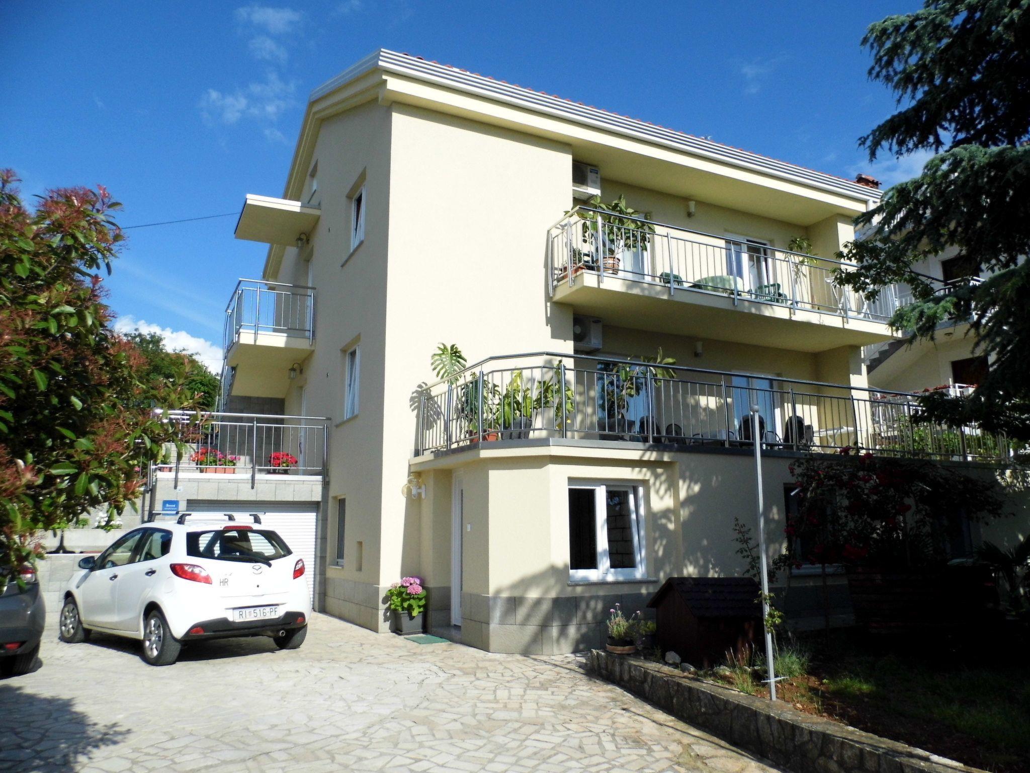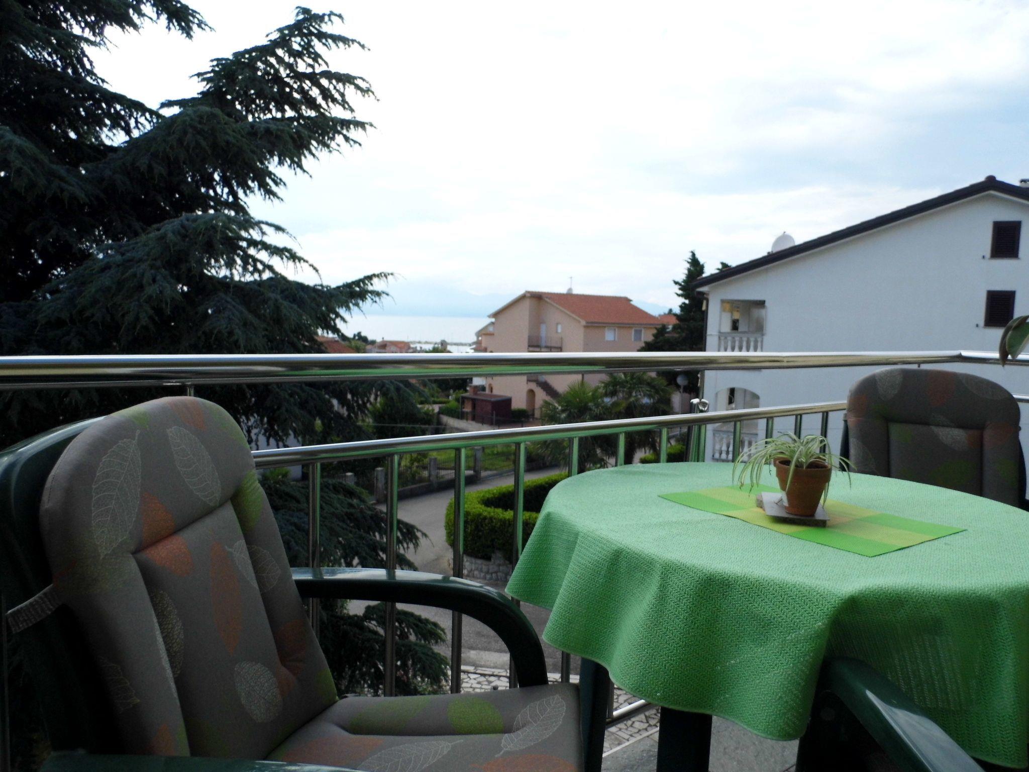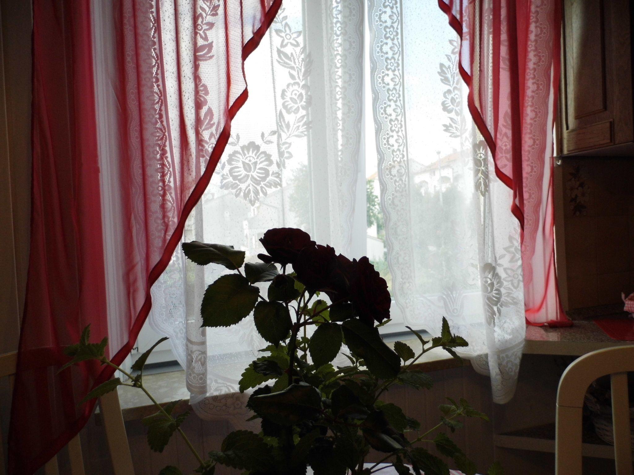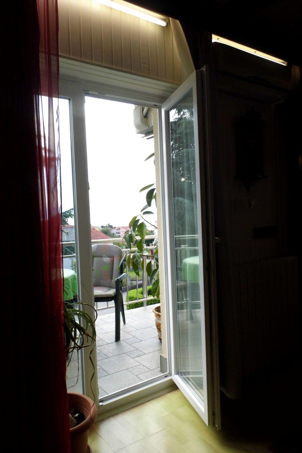 Apartment is on the second floor of the house about 90m2. It has two bedrooms, bathroom with shower ( Dusche), basin, toilet and washing machine. Each room has double bed. Kitchen is fully equipped with stove 2 gas plate and 2 electric plate, fridge with freezing compartment, filter coffee machine, toaster, electric kettle, dish washer and oven. In apartment is wi-fi connection and air condition. Out side is big spacious balcony with beautiful sea view.