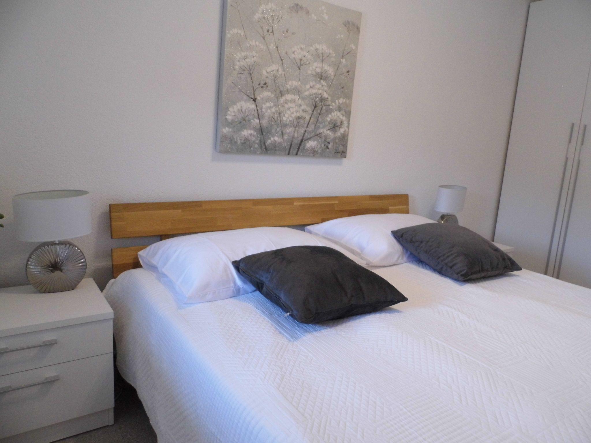 In nice cozy bedroom is bed 1,60 width and wardrobe.