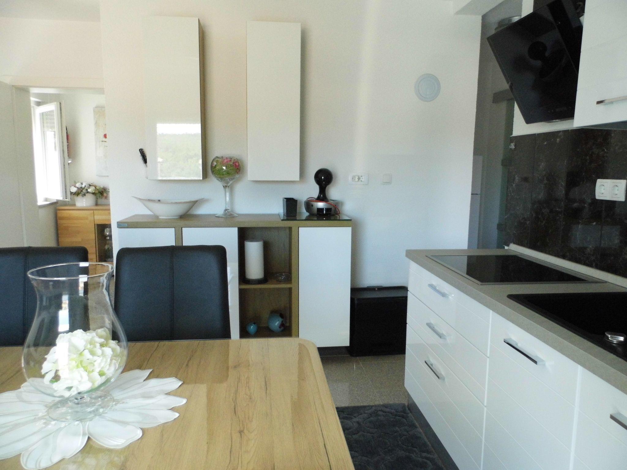 Apartment is situated on the first floor of the house, approximately 50m2. It has nice modern kitchen with electric stove, oven, dish washer, coffee machine, fridge with freezing compartment.
