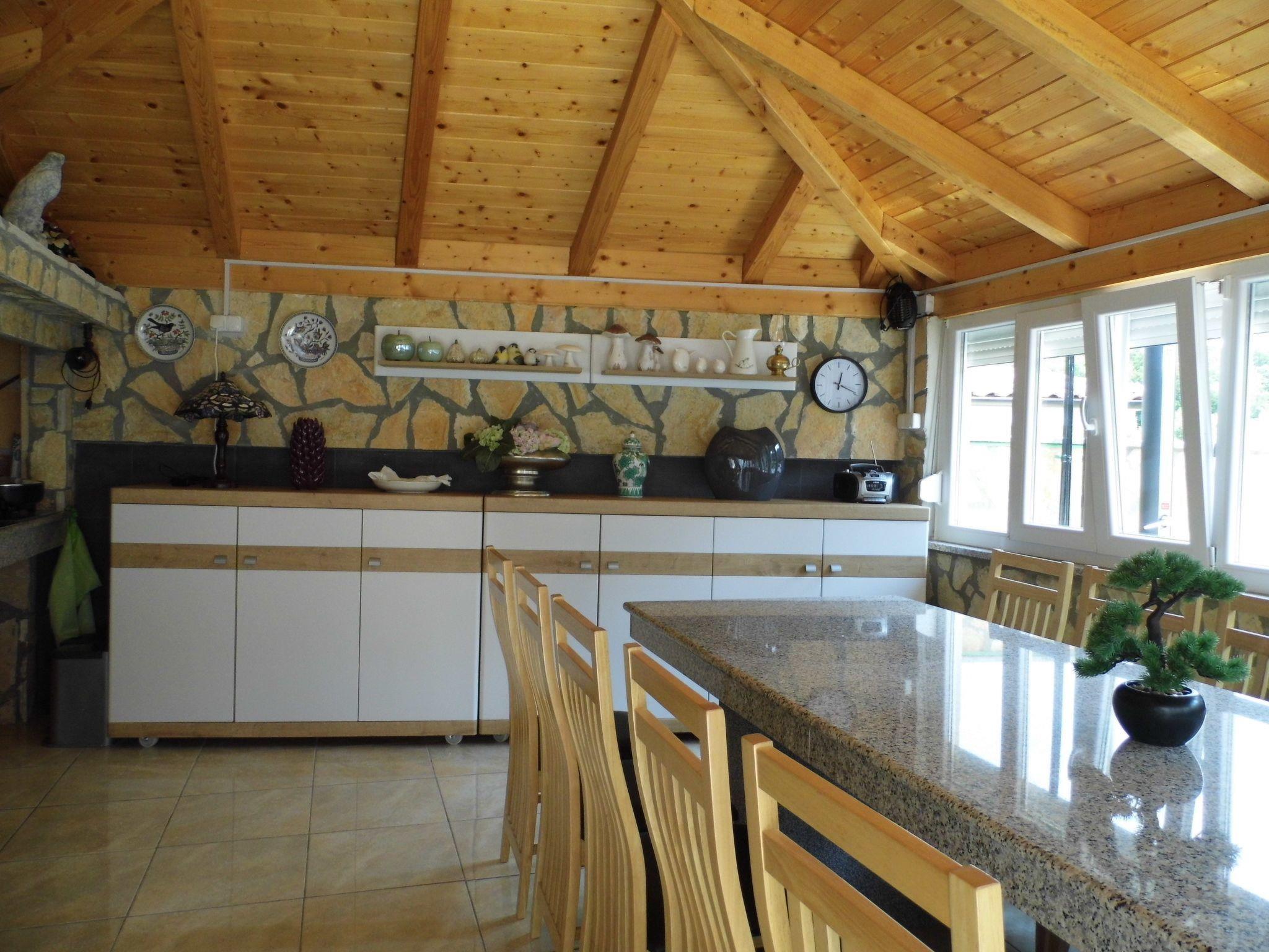 completely equipped kitchen in the garden, with grill on electricity, coal or gas.