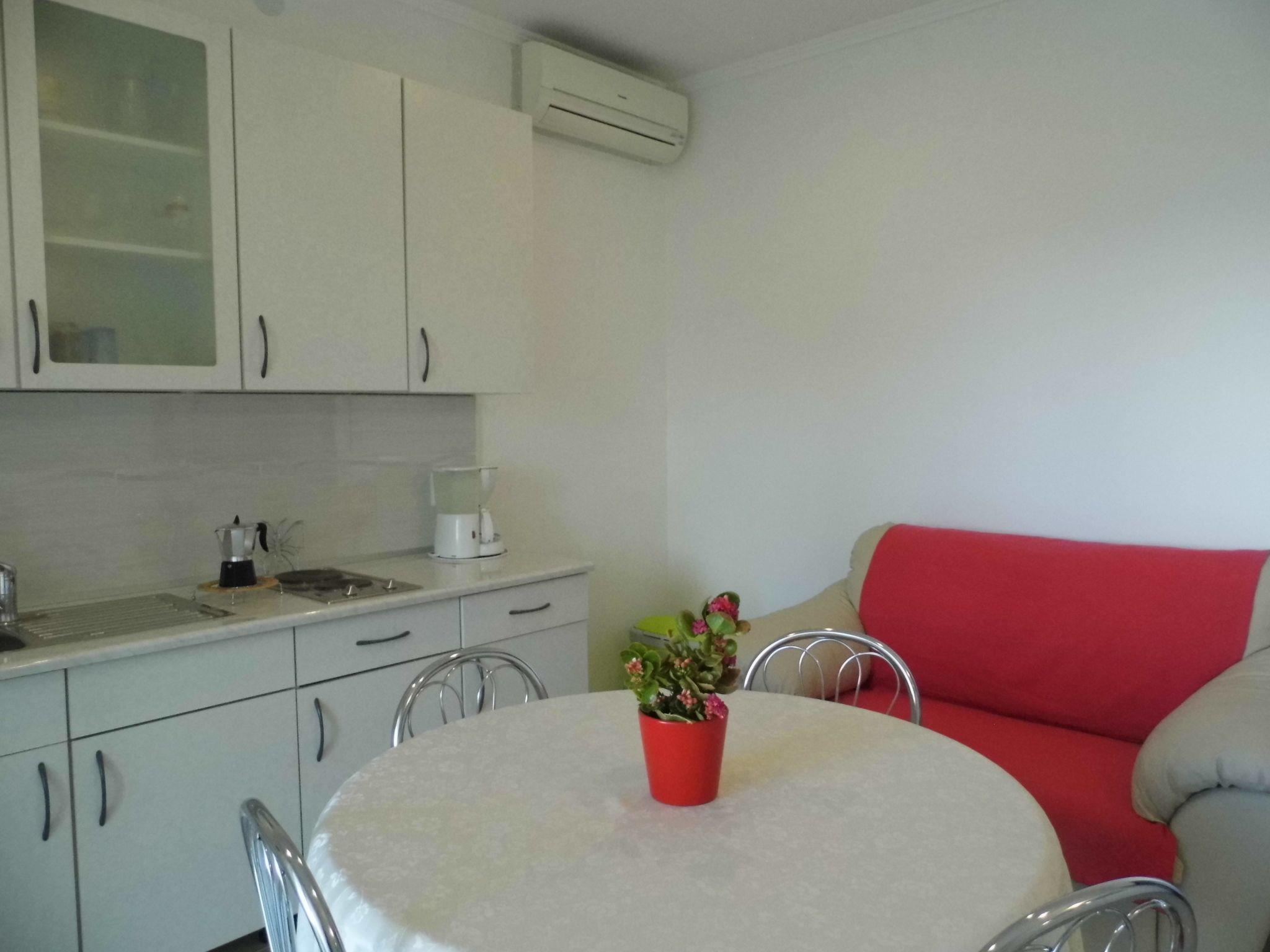 The surrounding area of Radici is ripe for discovery, with the beach just 700 meters away, inviting you to enjoy both concrete and pebble shores. The nearest town center, a mere 500 meters from the apartment, features charming cafes and restaurants, offering glimpses into local life and cuisine. For those who enjoy leisurely strolls, there's a picturesque promenade along the sea, shaded by pine trees, extending for about 3km. Additionally, the convenience of a grocery store 300 meters away means that essentials are never far from reach.