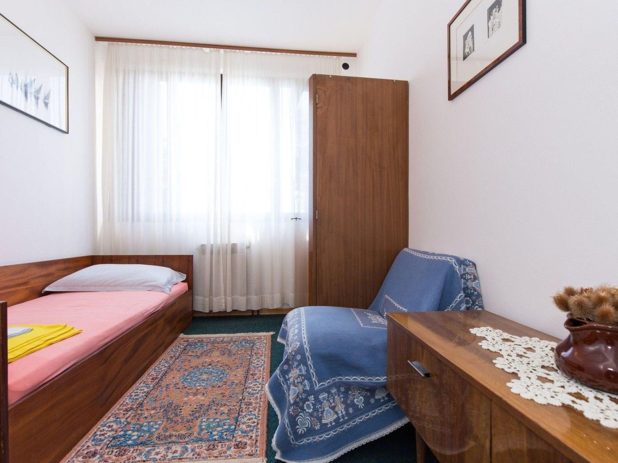 The holiday apartment is on the first floor and can accommodate up to six persons. It has three bedrooms: two bedrooms with a double bed each and one bedroom with a single bed. The living area is furnished with a TV set and a retractable sofa (additional bed) for one more person. There is a fully equipped kitchen (fridge, stove, oven etc.), a bathroom complete with bath tub and a separate guest toilet for additional comfort.
