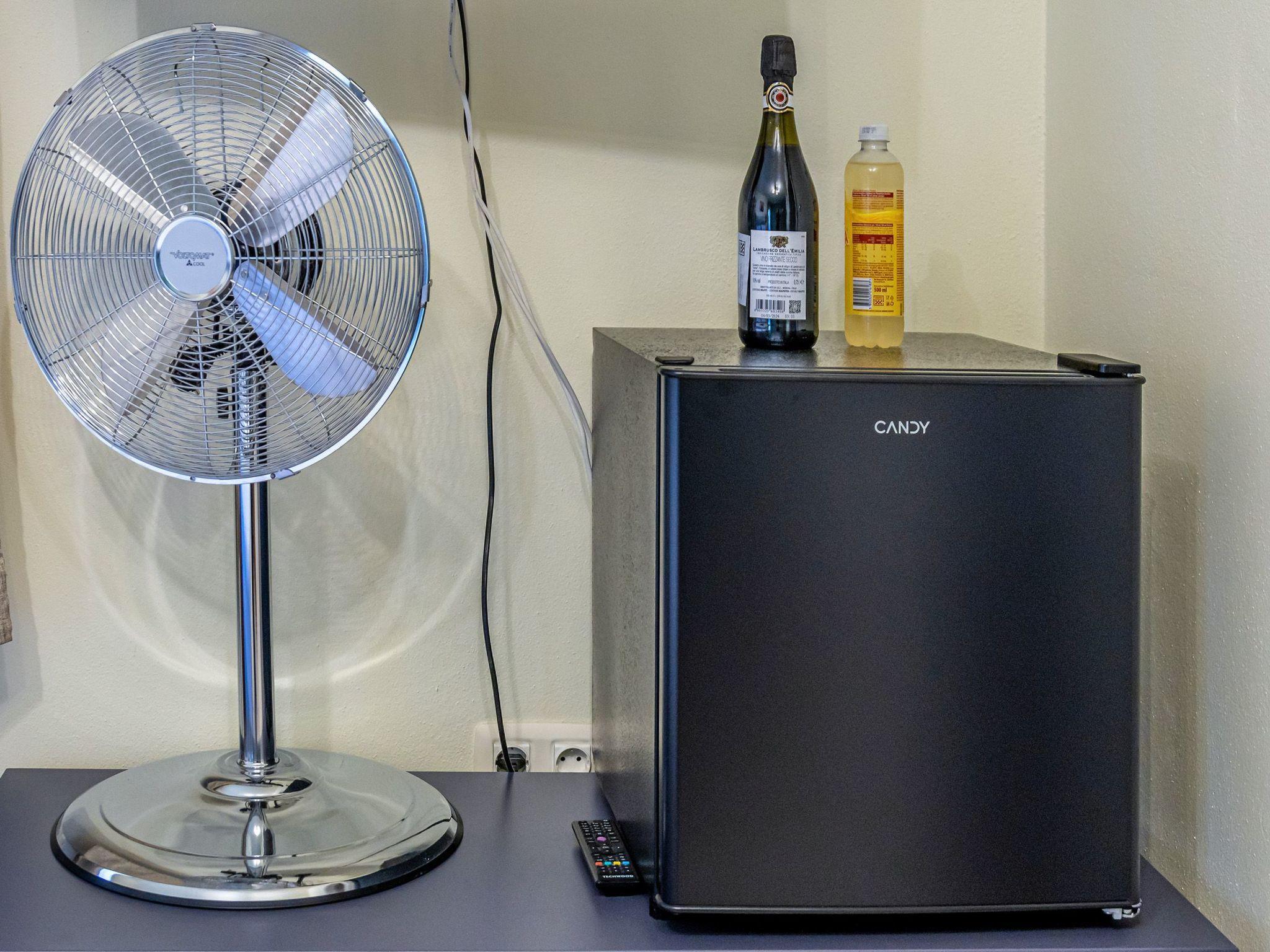 Inside, you will find a homely ambience, equipped with a mini fridge to keep your drinks cool and a cosy bedroom. The adjoining bathroom with shower promises practical comfort. In addition, the fan provided ensures pleasant air circulation, making the room a refreshing oasis even without air conditioning.