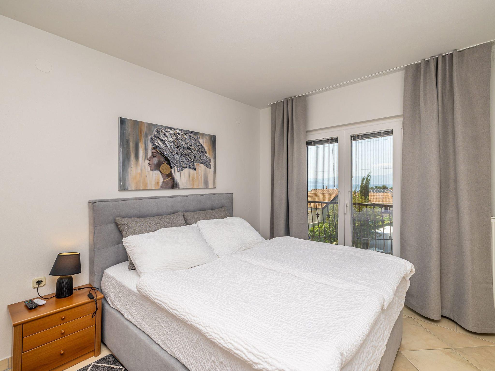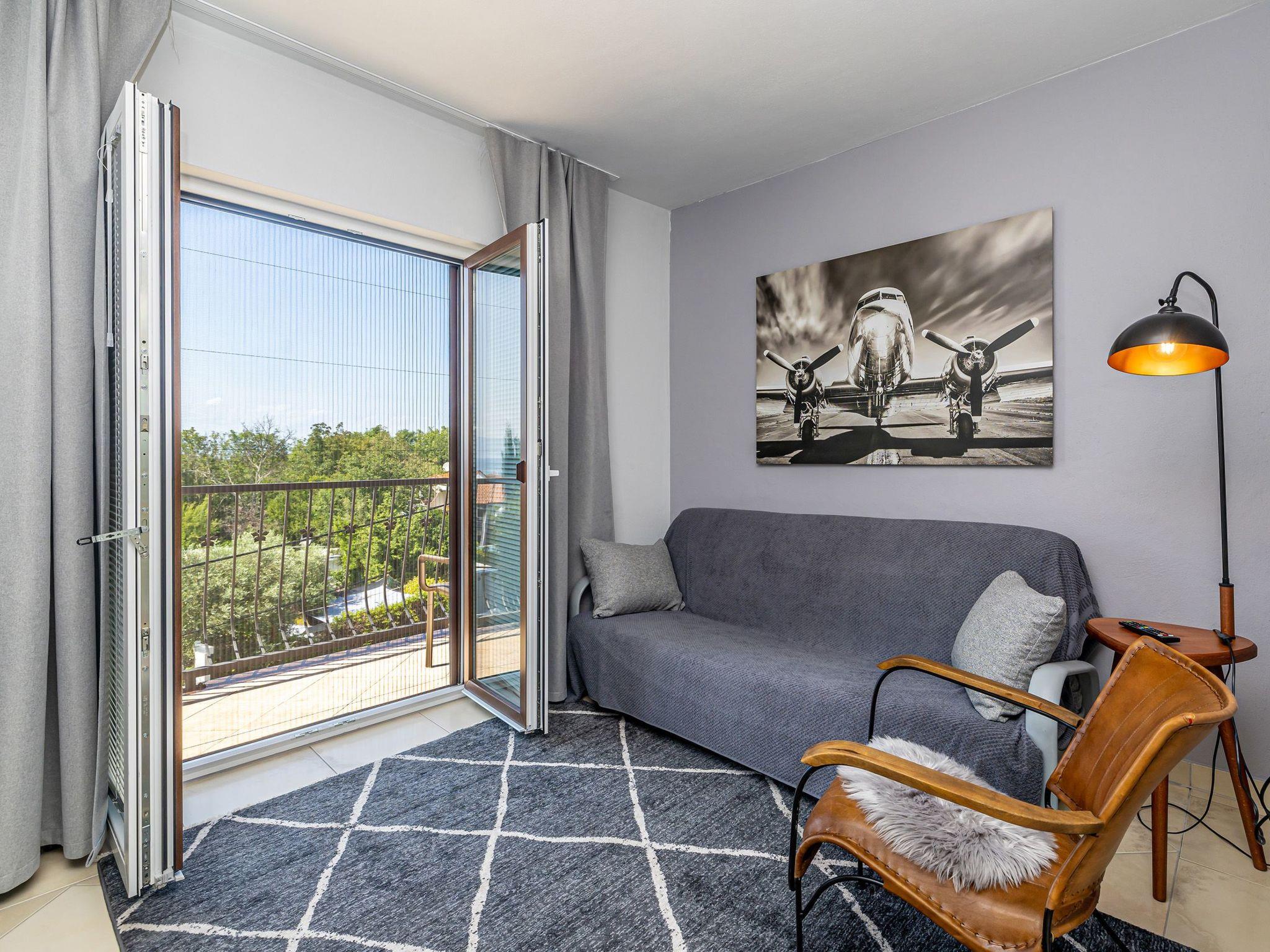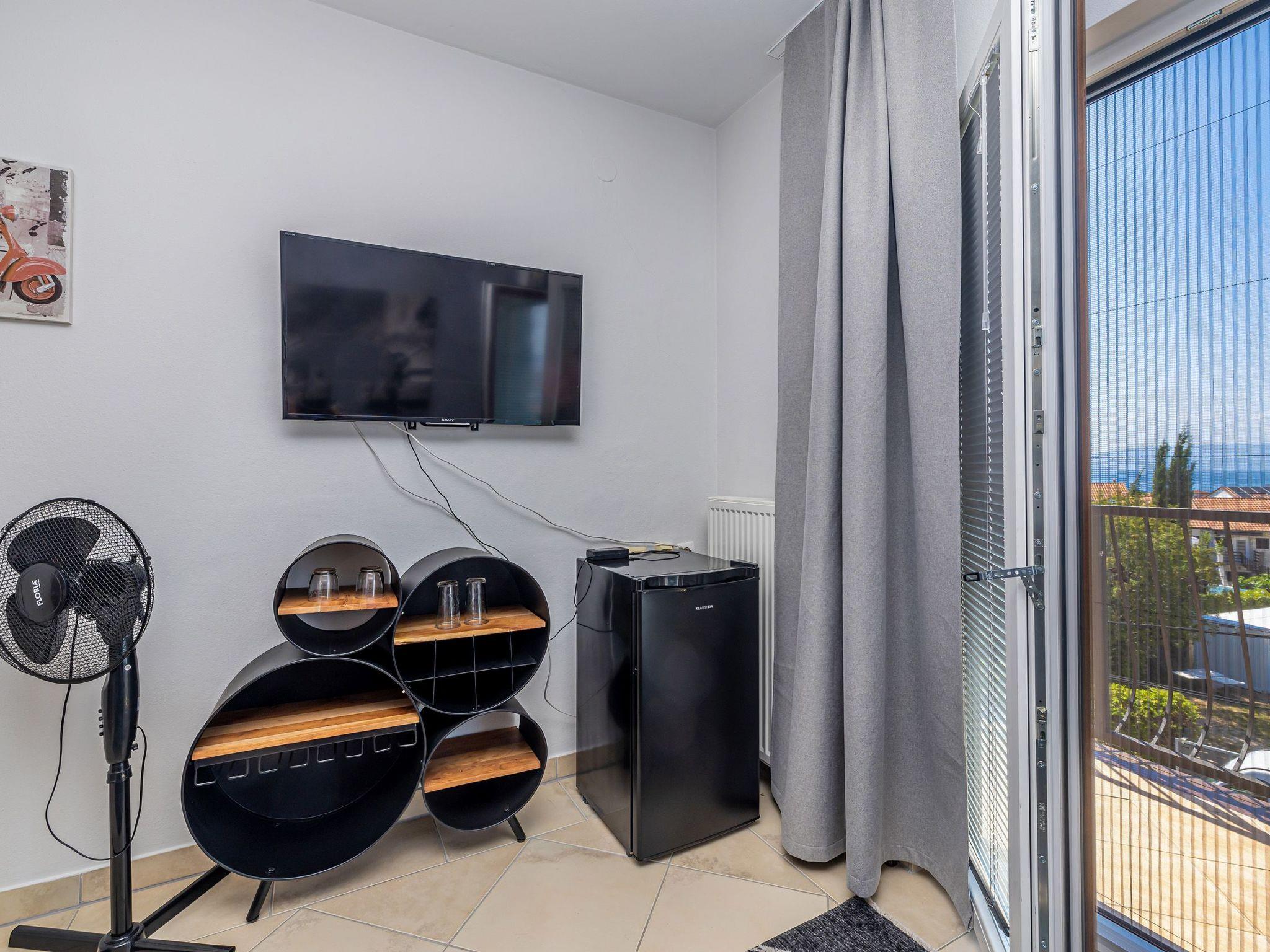 Discover your charming guest room in Radici, located in the picturesque Kvarner Bay. Perfect for couples who want to enjoy a relaxing break, this guest room on the second floor offers a wonderful setting for your holiday. With its beautiful sea view, a cosy seating area including a minibar and a separate sleeping area, you will find everything you need for a comfortable stay. Enjoy the peace and charm of your holiday home, complemented by amenities such as two televisions and mosquito nets, while you can regulate the fresh breeze with the help of the fan provided.