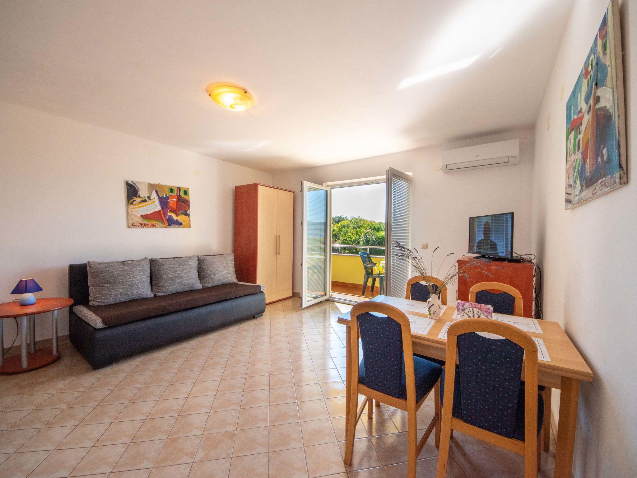 1-room studio 33 m2 on 1st floor. Studio with 1 double sofabed (160 cm, length 200 cm), dining table and satellite TV (flat screen), air conditioning. Exit to the balcony. Open kitchen (2 hot plates). Shower/WC. No heating option. Balcony 6 m2. Balcony furniture. View of the sea. Facilities: Internet (WiFi, free).