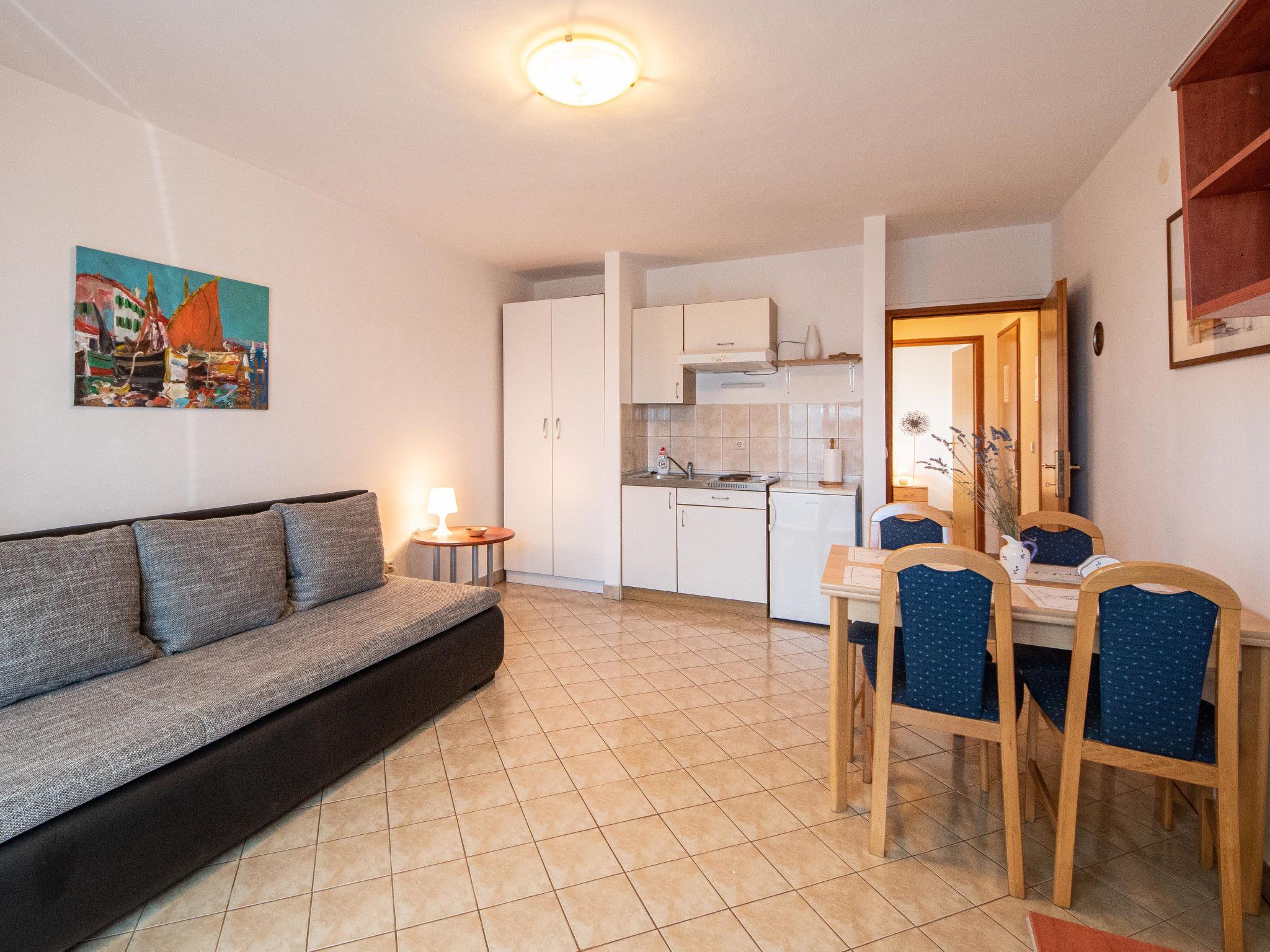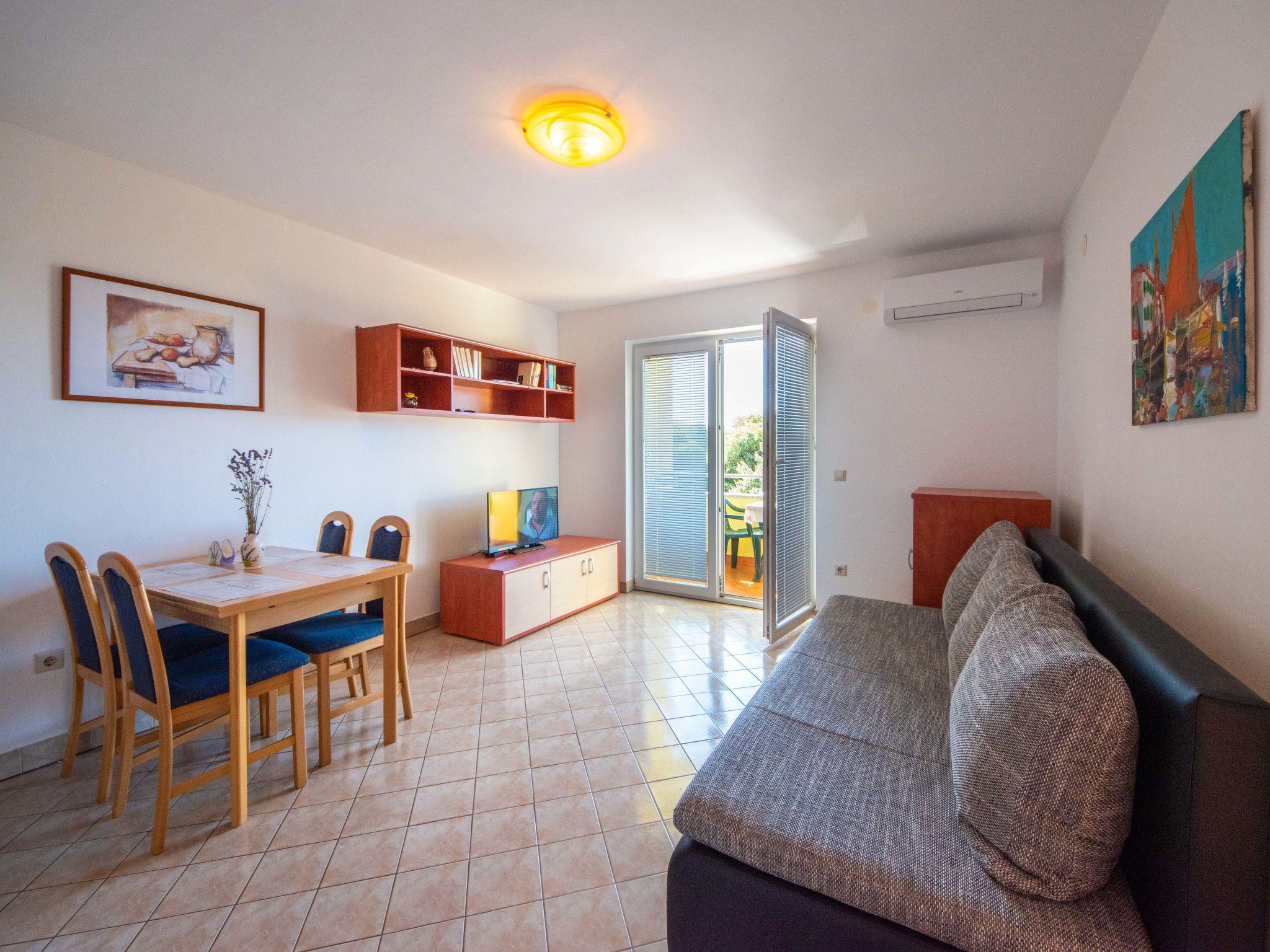2-room apartment 45 m2 on 1st floor. Living/dining room with 1 double sofabed (160 cm, length 200 cm), satellite TV (flat screen), air conditioning. Exit to the balcony. 1 room with 1 double bed (2 x 80 cm, length 200 cm). Open kitchen (2 hot plates). Shower/WC. No heating option. Balcony 5 m2. Balcony furniture. Partial view of the sea. Facilities: Internet (WiFi, free).