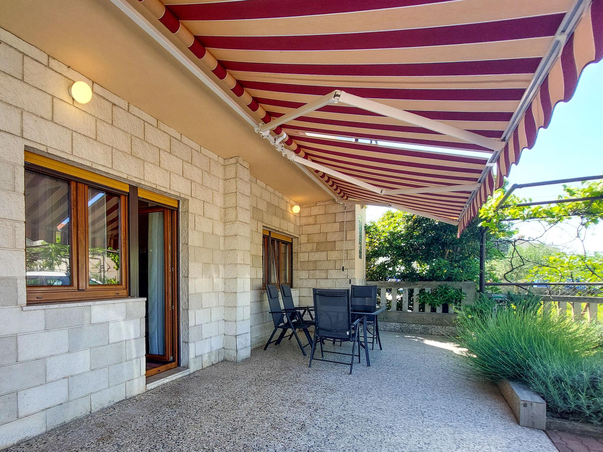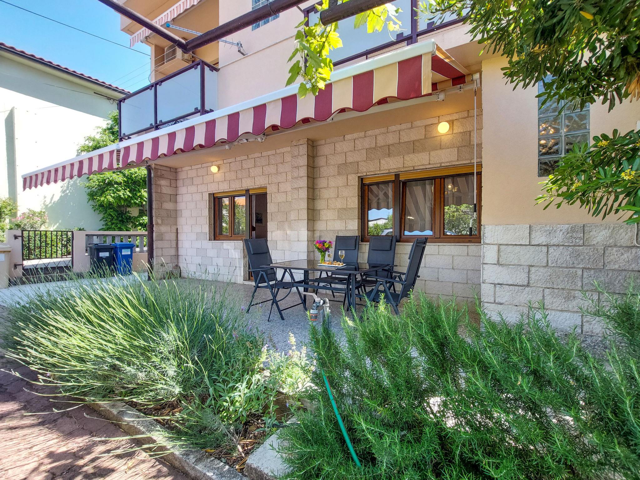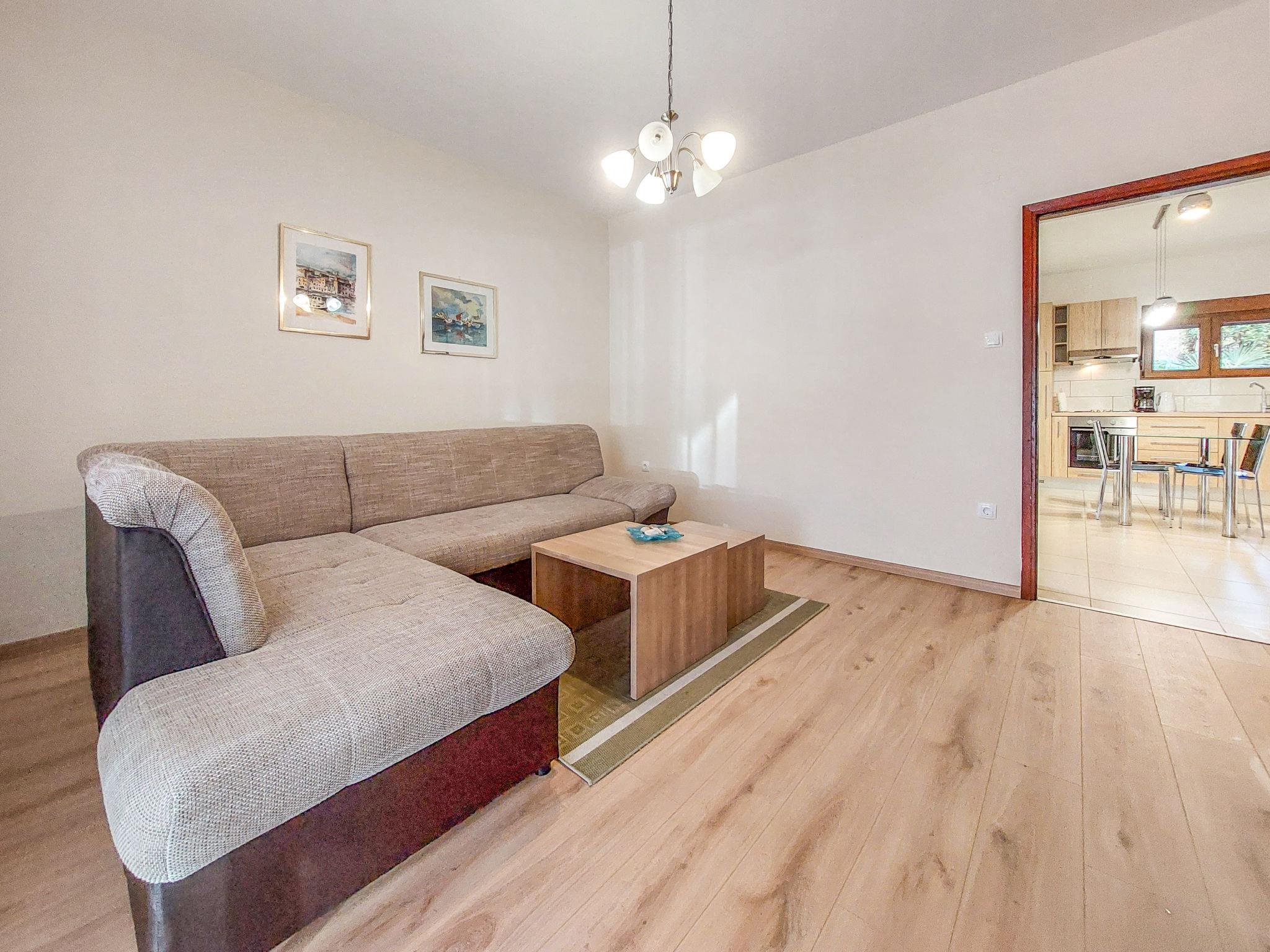 "Vesna", 3-room apartment 75 m2, on the ground floor. Object suitable for 4 adults + 1 child. Living/dining room with 1 sofabed (120 cm, length 200 cm), satellite TV and air conditioning. Exit to the terrace. 1 room with 1 double bed (2 x 90 cm, length 190 cm), separate WC. 1 room with 1 french bed (160 cm, length 200 cm), shower/WC. Kitchen (4 hot plates, oven, toaster, kettle, electric coffee machine) with dining table. Bath/WC. No heating option. Terrace 25 m2. Terrace furniture, barbecue (portable). Facilities: children's high chair, baby cot. Internet (WiFi, free). Please note: non-smokers only. Private entrance.