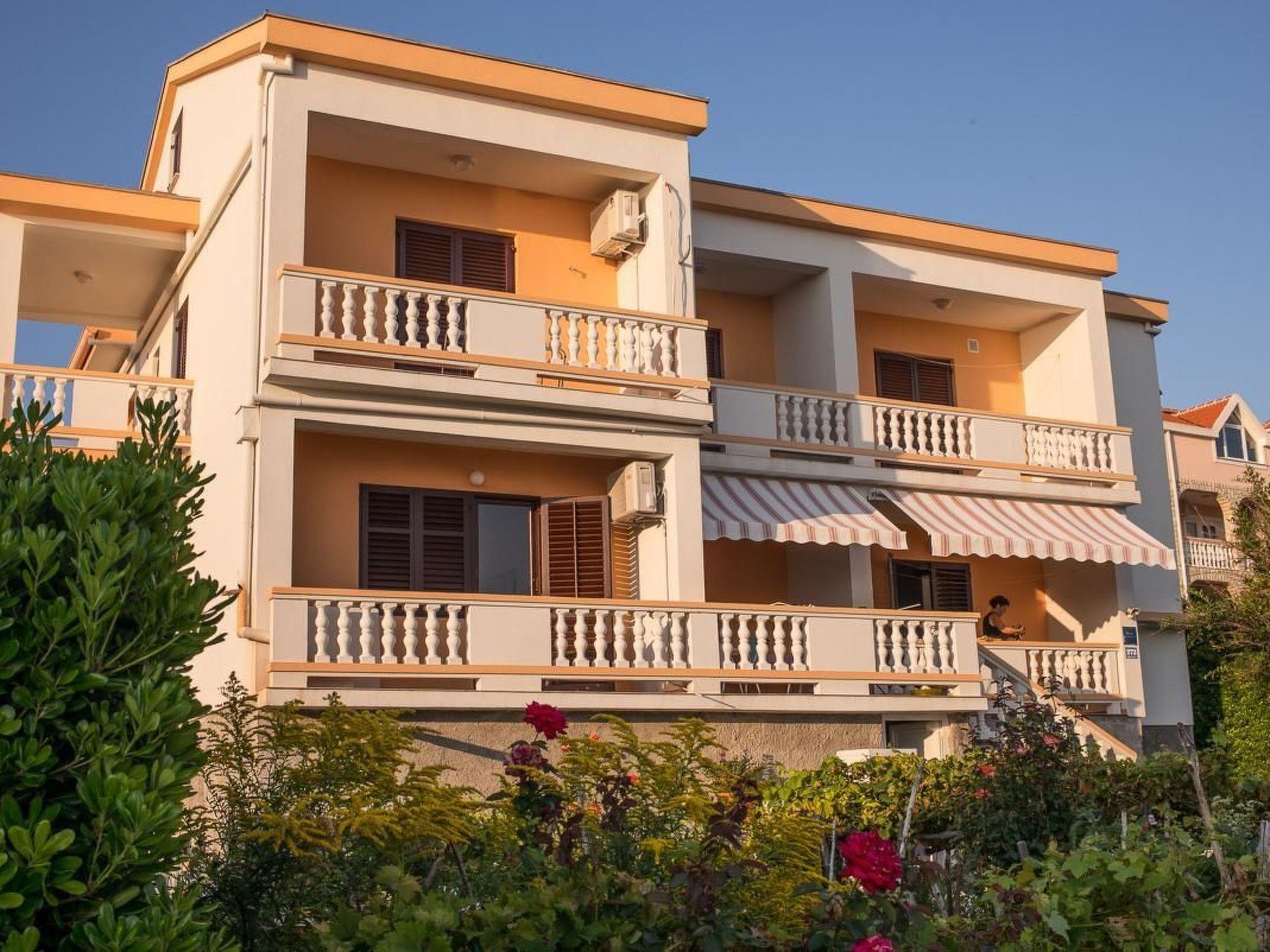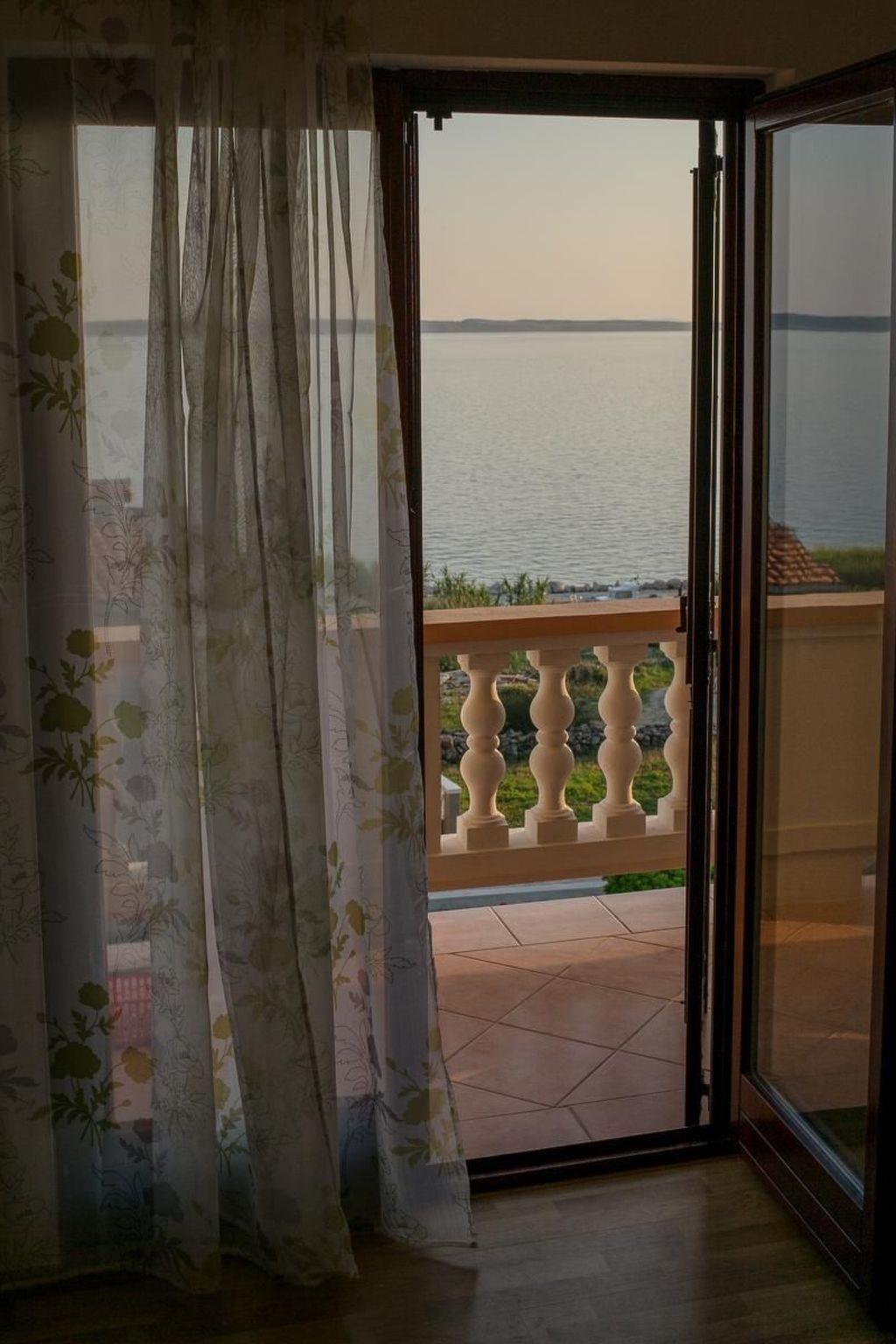 The apartment is in the little holiday town of Rtina between the town of Zadar and the island of Pag. It is ideally located for a peaceful holiday with sun and sea. The apartment is on the first floor and can accommodate up to five people. The bedroom has a double bed, an armchair and a wardrobe. A supplementary bed can also be provided. The air-conditioned living and dining room with an open kitchen has a sofa bed for two people, another sofa, satellite TV and a dining table with four chairs. The kitchen unit is fully-equipped with a stove, oven, fridge-freezer, kettle and dishwasher. The bathroom comprises a shower, washbasin and toilet. Free wireless Internet access is available. You can enjoy a wonderful view of the sea from the comfortable balcony with garden furniture, as well as beautiful sunsets. There are parking spaces available on site. Transfers to and from Zadar airport can be arranged through the owner.