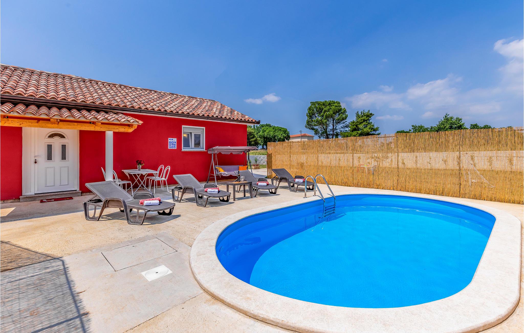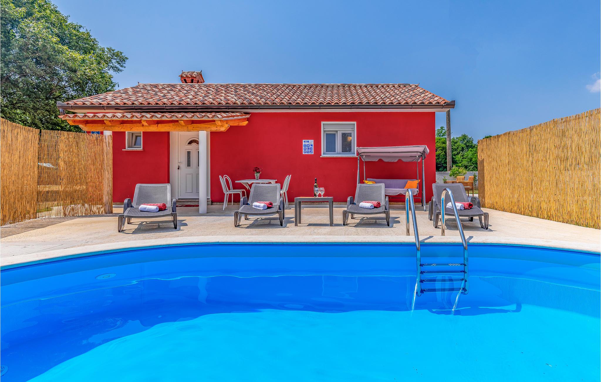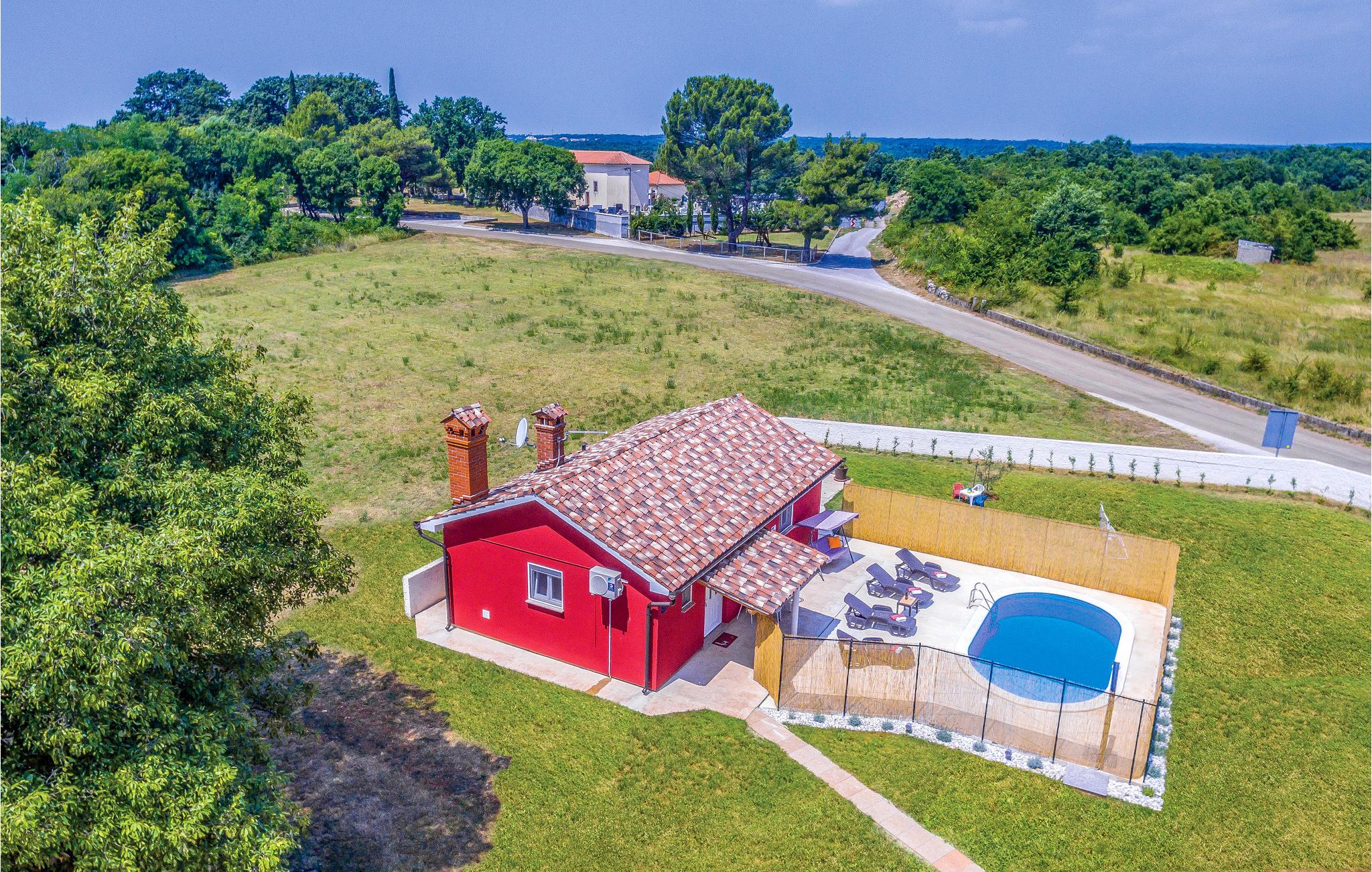 I den lille og rolige by Hrelici ligger dette praktisk indrettede feriehus med swimmingpool. Det rummer et soveværelse, badeværelse, køkken og stue. I haven står en grill, hvor det er nemt og lækkert at tilberede feriemaden. Det tager kun 20 minutter at køre til de nærmeste skønne strande i bil. Vi kan anbefale et besøg i naturpark Kap Kamenjak og sine vilde strande og besøge Pula med mange seværdigheder fra romertiden, især det smukke amfiteater. Smag på områdets lækre traditionsrige måltider på en af de mange restauranter eller taverner.