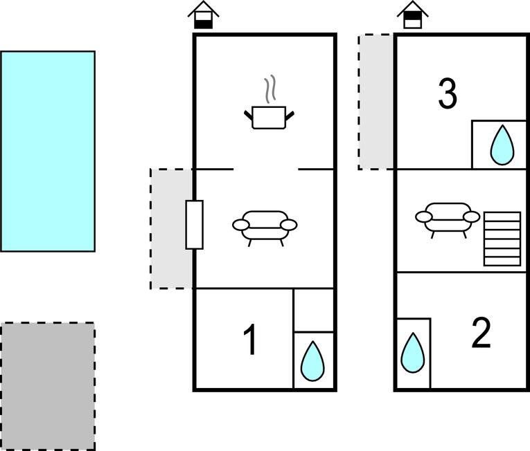 Soveværelse (nr. 1) - 2 Sovepladser. (Dobbeltseng(e)). 1 Soveplads. (Sofa, madras eller lignende).