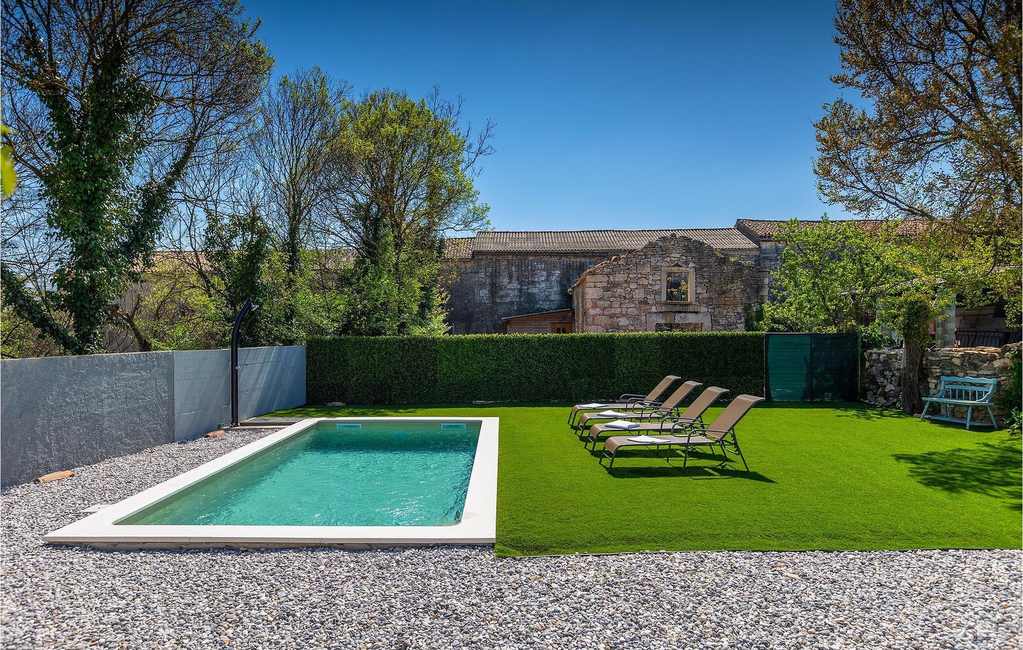 Villa Tilia er et renoveret autoktont istrisk stenhus og er ideelt til en afslappende familieferie for op til 6 personer. Ønsker du at holde din ferie i solen, finder du i villaens have en indbydende pool med liggestole, hvor du kan slappe af med en forfriskende drink. Det velholdte udeareal byder desuden på overdækket spiseplads, udekøkken og gasgrill. Brug grillen til at tilberede lækre måltider. Interiøret er komfortabelt indrettet med stor sans for detaljer. 1. salen består af en åben planløsning og spisestue med køkken og direkte adgang til udearealet. På anden sal er der to soveværelser og et badeværelse. Villa Tilia er det perfekte valg til at undslippe din hverdag og tilbringe en uforglemmelig ferie.Villa Tilia ligger i landsbyen Prodol i en smuk beliggenhed, som giver gæsterne mulighed for at udforske de omkringliggende mindre byer og besøge deres restauranter med berømte istriske specialiteter. Hvis du ønsker at forblive aktiv under din ferie, er dette det ideelle sted for dig! Det omkringliggende område byder på adskillige rekreative muligheder: Cykling, ridning, jogging, vandreture og meget mere. Den historiske by Pula ligger kun en kort køretur væk. Pula er den største by i Istrien og byder på et udvalg af barer, restauranter og seværdigheder. Besøg det berømte amfiteater fra det 1. århundrede. Mange begivenheder finder sted her, lige fra koncerter og filmvisninger til sportsbegivenheder. Vi anbefaler at tage en dagstur til Brijuni National Park. For mere information gennemse vores MyIstria-guide, hvor du finder adskillige tips til udflugter i området.