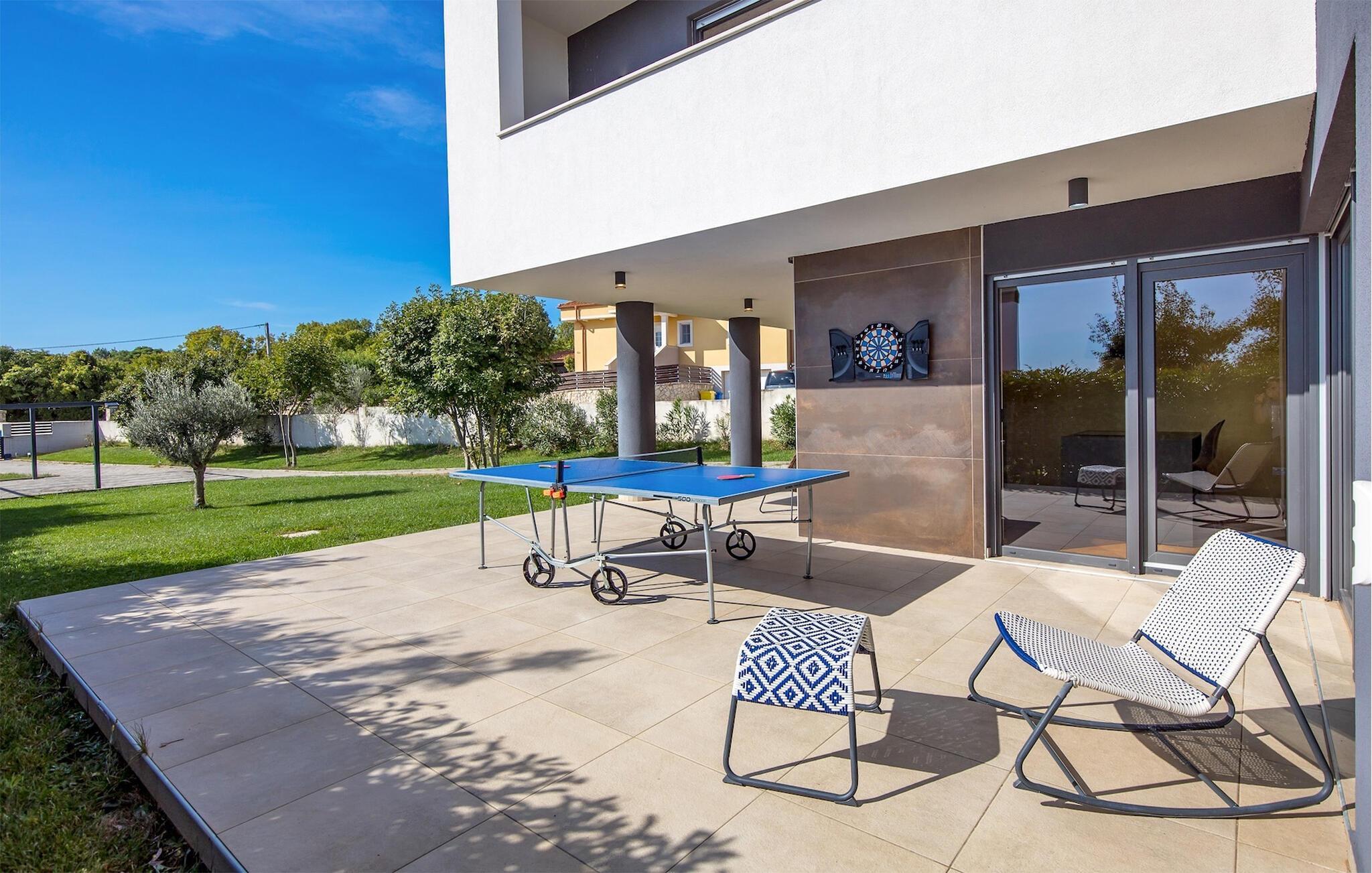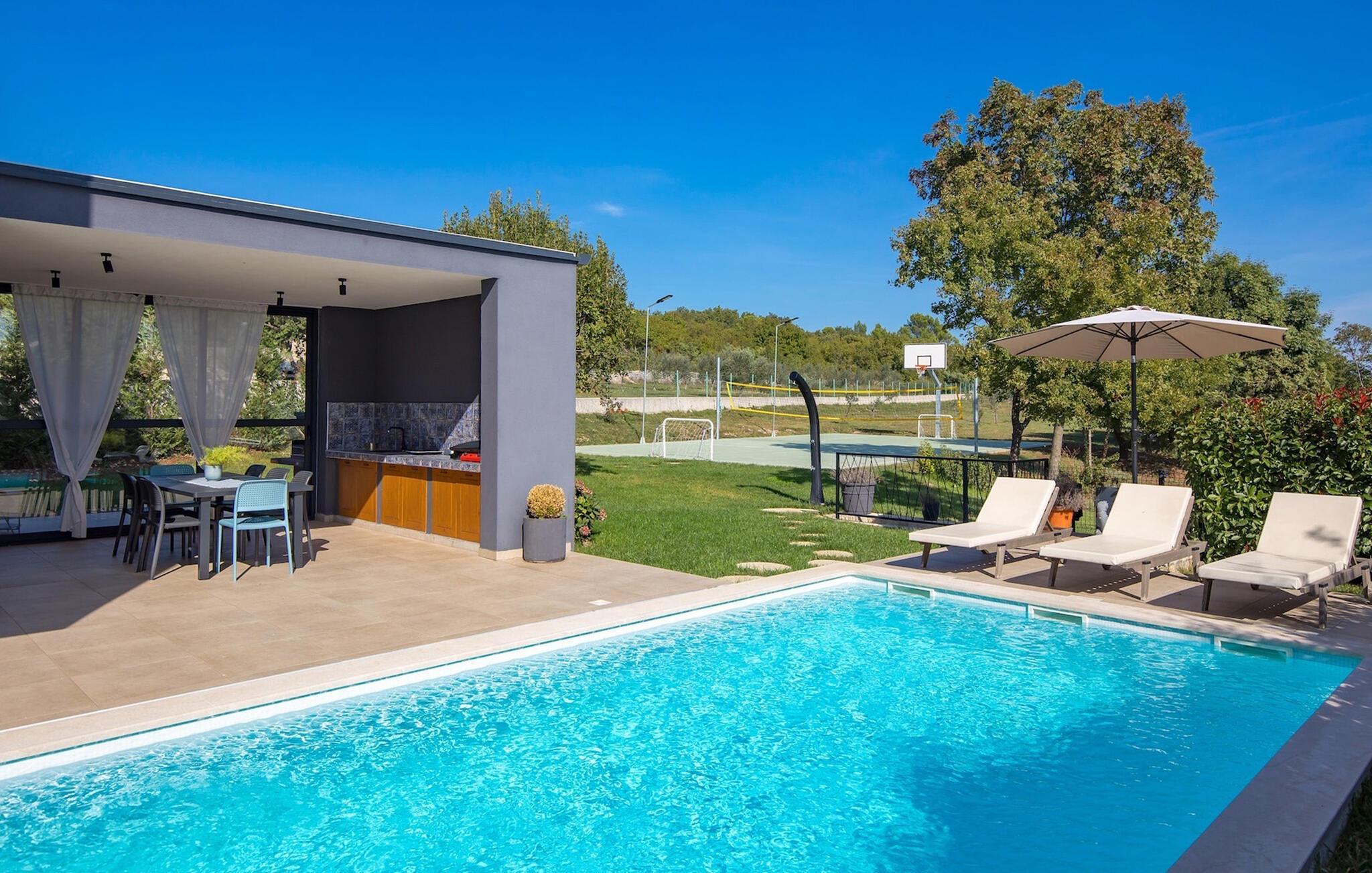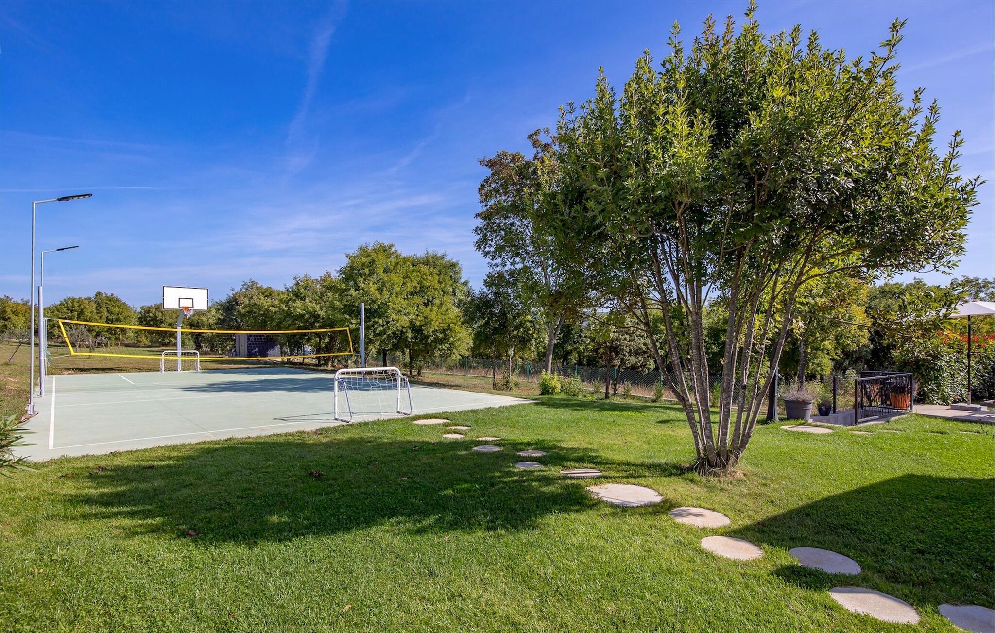 An warmen Sommertagen werden Sie sicherlich den Außenbereich mit privatem Pool am meisten zu schätzen wissen. Erfrischen Sie sich im Pool und lehnen Sie sich danach in einer der Sonnenliegen zurück und entspannen Sie sich einfach. Für alle Grillfans steht ein Gasgrill zur Verfügung. Zeigen Sie Ihre Kochkünste und bereiten Sie ein wunderbares Essen zu, das Sie mit Ihren Lieben genießen können. Einer der besten Vorzüge dieser Villa ist ein großer Multisportplatz im Außenbereich.