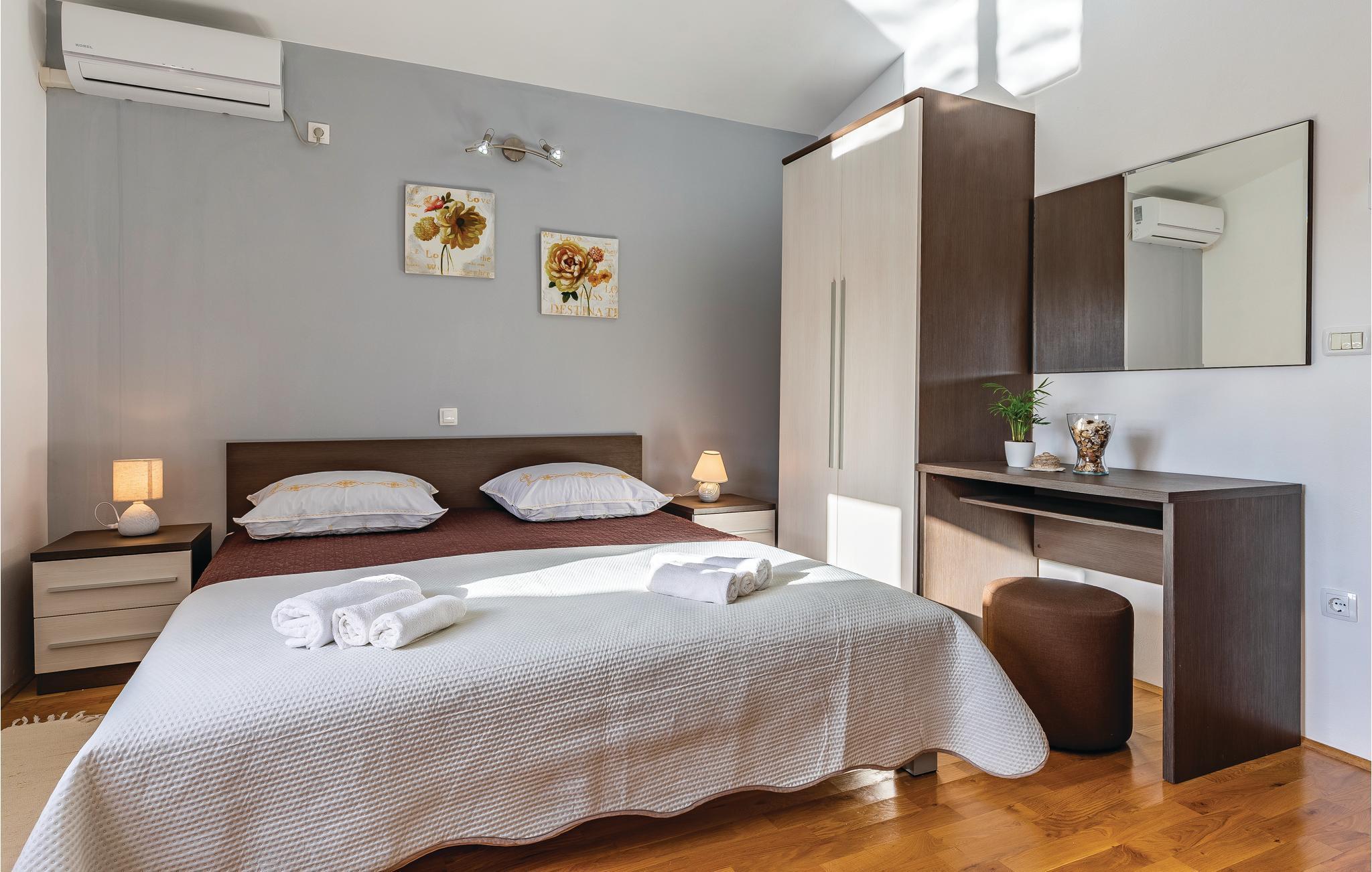 Forkæl jer selv med en dejlig og uforglemmelig ferie i dette skønne feriehus med tilhørende swimmingpool. Slap af på den dejlige terrasse eller på de nærliggende grus- og sandstrande i Rakalj og Krnica. Hvis det bliver for varmt, kan I tage en forfriskende dukkert eller slappe af på den overdækket terrasse. Der står en grill til rådighed, hvor du kan tilberede lækre kød-og fiskeretter. Hvis du hellere vil svømme i det krystalklare havvand, ligger der en strand kun få minutter væk. I sommermånederne bliver der afholdt fiskeaftner og lignende underholdning både direkte på havnen og i nærheden.