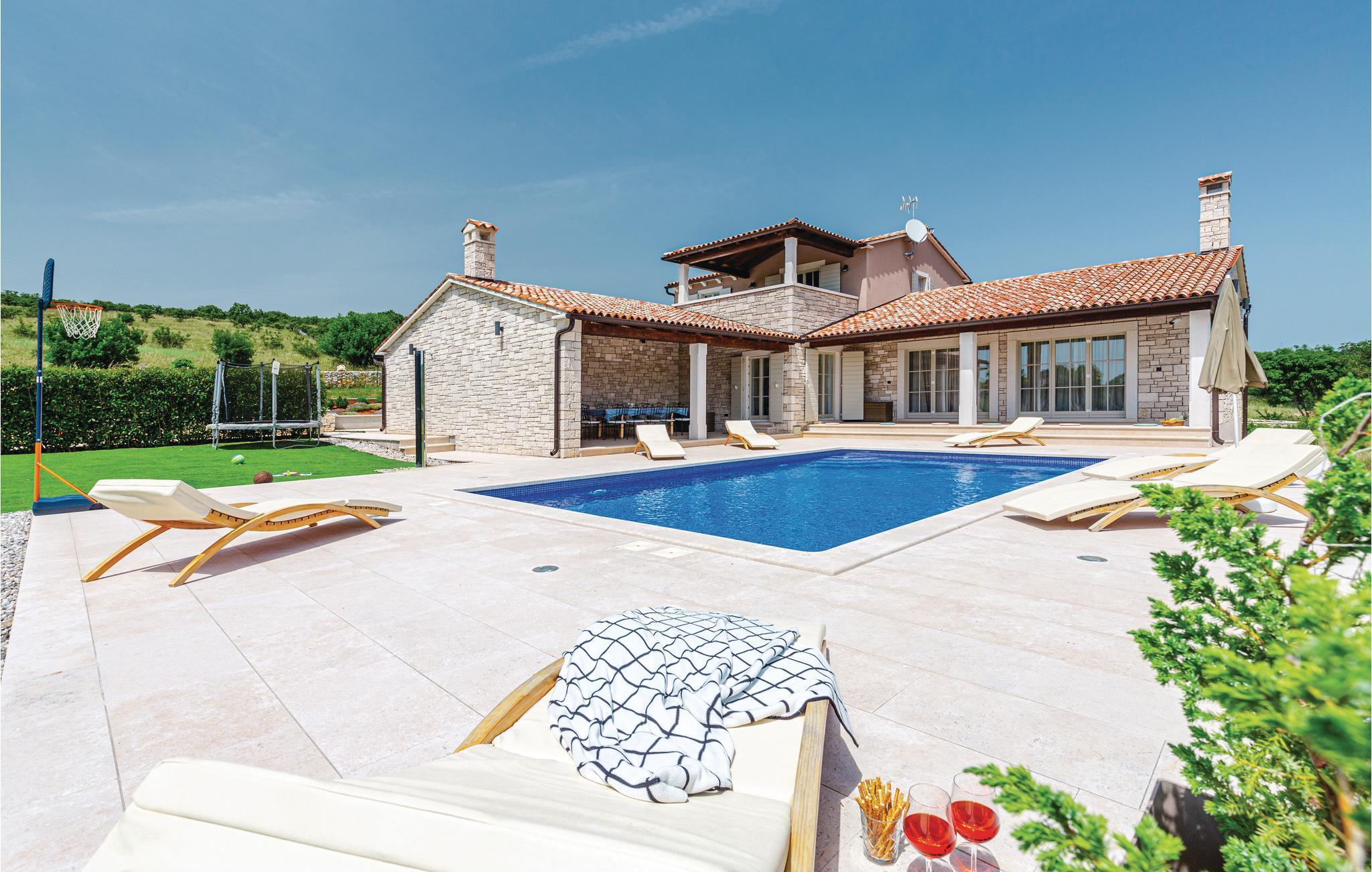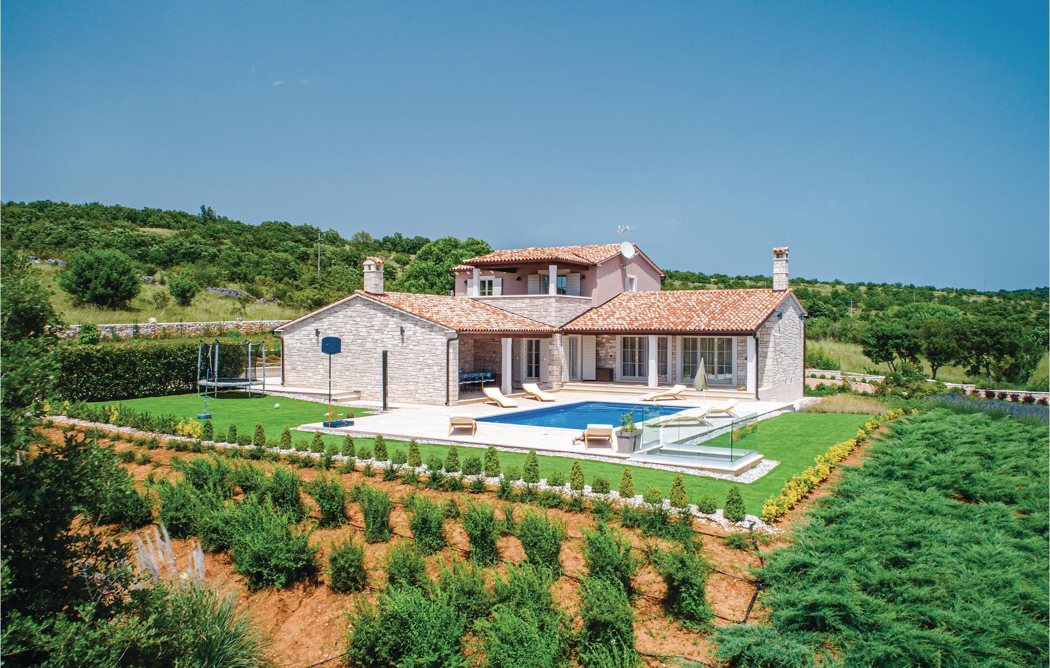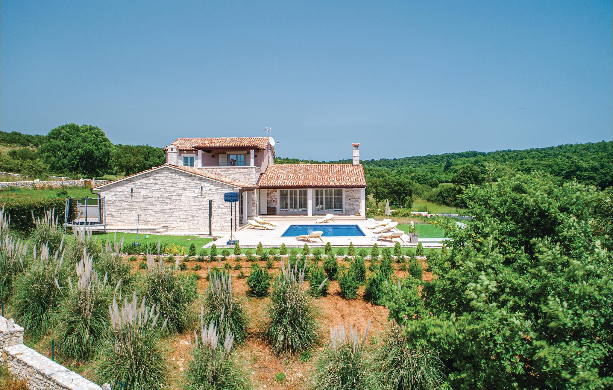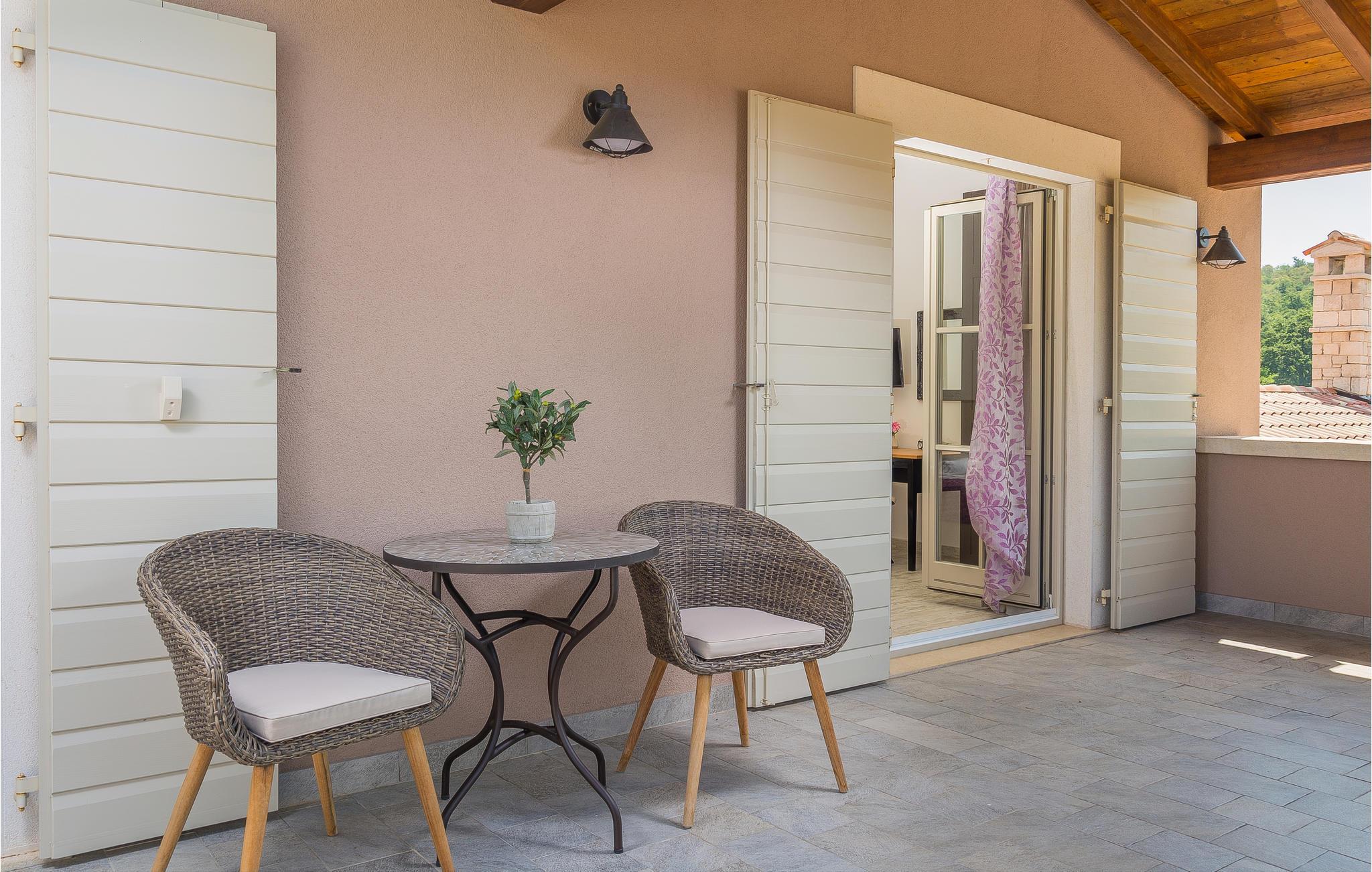Dette feriehus med swimingpool har en tilbagetrukket beliggenhed på en stor landejendom, ikke langt fra den lille landsby Multovran. Omgivet af duftende grønt på de omkringliggende maki bevoksede kuperede landskab, er stedet roligt og fredfyldt. I stueetagen ligger køkkenalrum, et soveværelse med badeværelse og et ekstra toilet, og en trappe fører op til soveveærelset på første sal med eget badeværelse. I kælderetagen findes whirlpool og sauna. Poolen bliver på de varme sommerdage stedets naturlige samlingspunkt, hvor man kan nyde en forfriskende dukkert. Pula er det oplagte udflugtsmål med byens romerske amfiteater og andre imponerende seværdigheder.