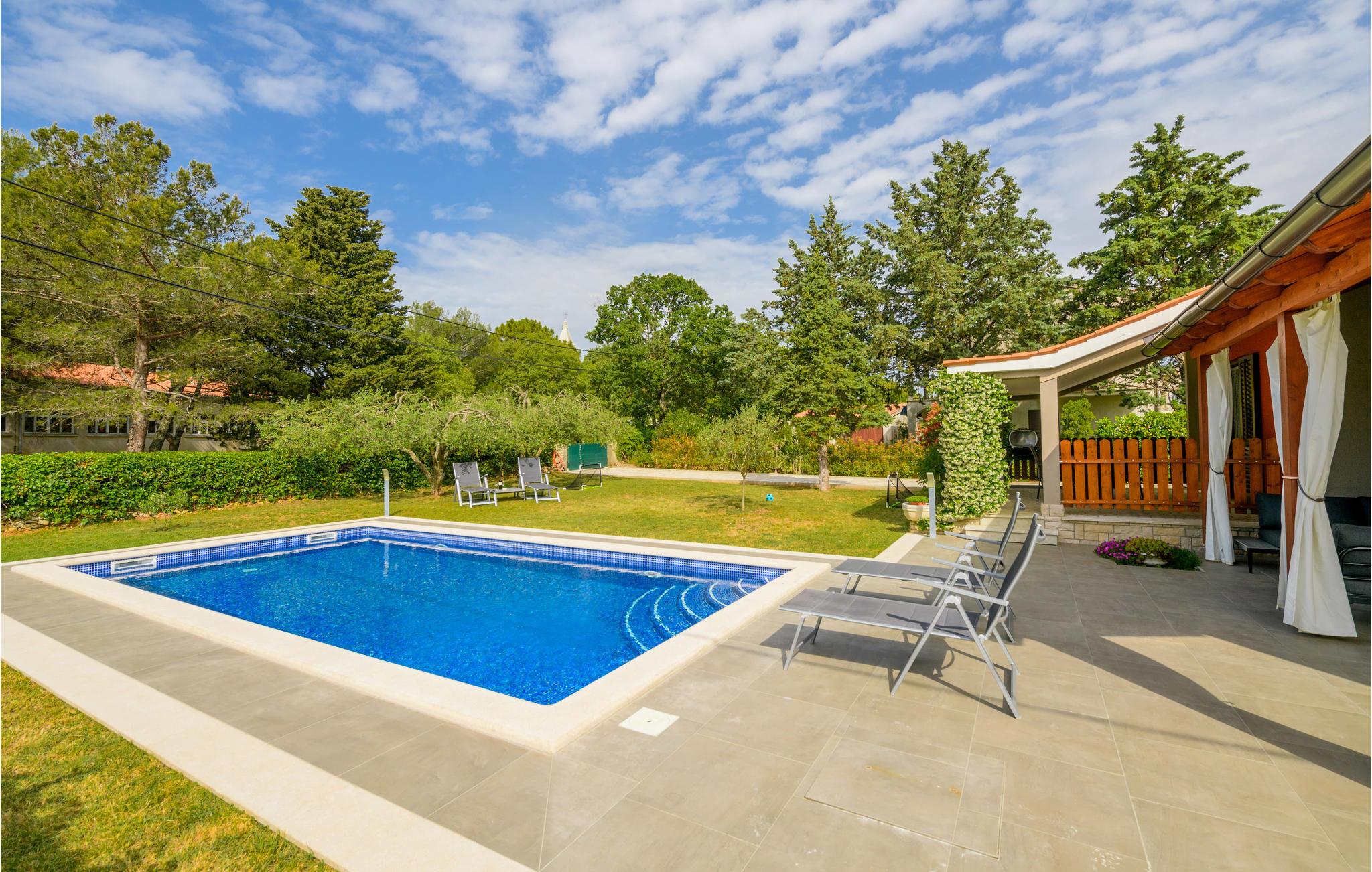 Dette skønne feriehus med pool ligger i Krnica ved Istriens østkyst. Huset er i et plan, og indrettet med god smag. Her er tre soveværelser og huset ligger på en komplet indhegnet grund, hvor der både er en udendørs pool og en terrasse til sol. Her er der dømt afslappe ferie i meget fredelige omgivelser. Det tager ikke mange minutter i bil at køre til havet og klippe- og kiesstrandene, hvor I kan nyde lange dage fulde af strand og hav. I bor ikke langt fra flere cykelstier, en rideskole og en klatrepark.