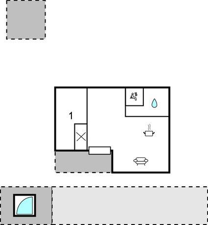 Opholdsstue/køkken 20m2 - 2 Sovepladser. (Sofa, madras eller lignende).