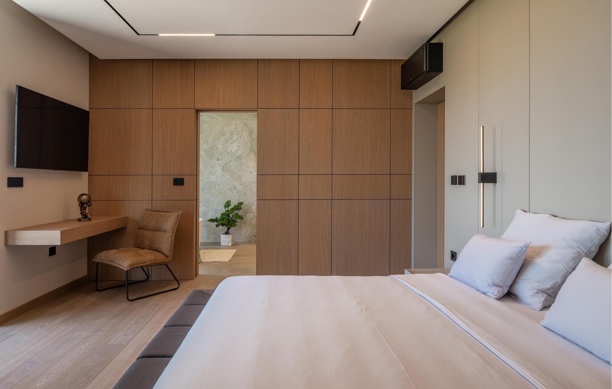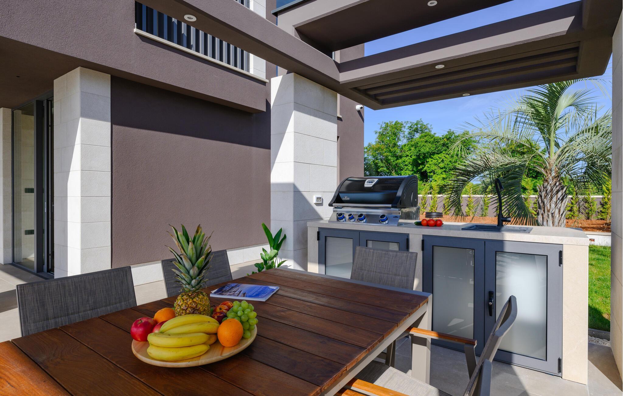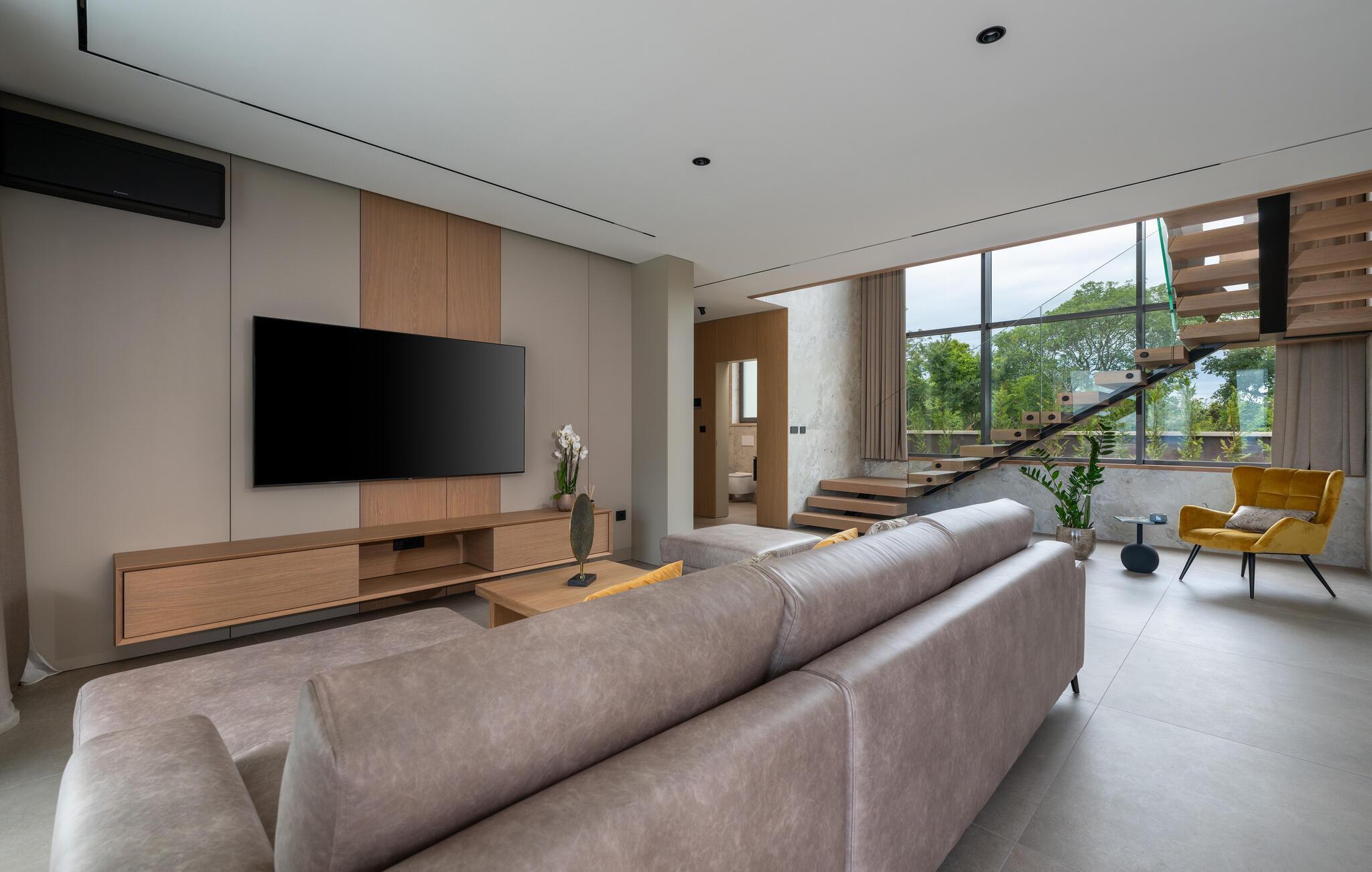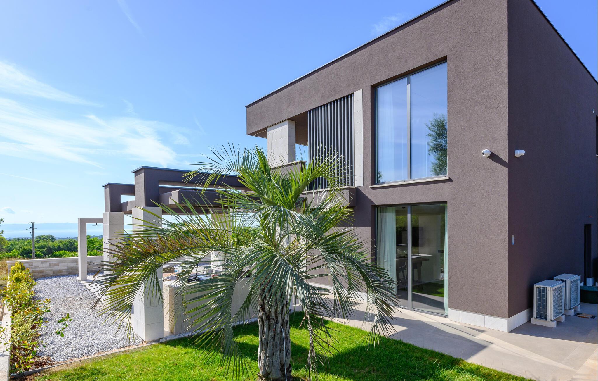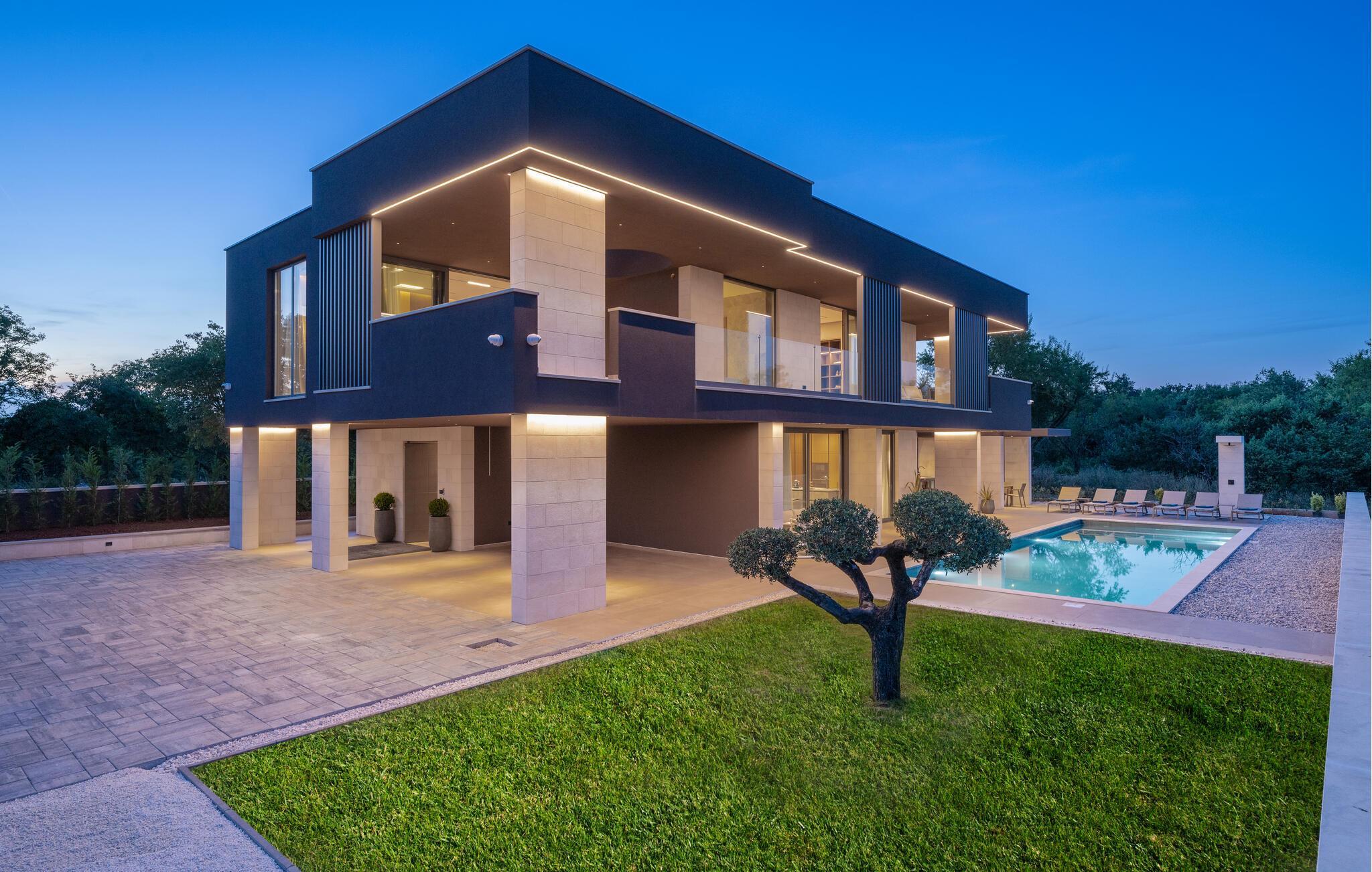 Nyd den stilfulde atmosfære i dette eksklusive designerhus. Den åbne, lysfyldte arkitektur skaber en harmonisk følelse af at bo, mens I kan fremtrylle middelhavsspecialiteter i det ultramoderne køkken. Forkæl jer selv med kulinariske lækkerier ved det elegante spisebord eller gør jer godt tilpas på det rummelige sofaområde, mens I streamer en film eller lytter til musik.