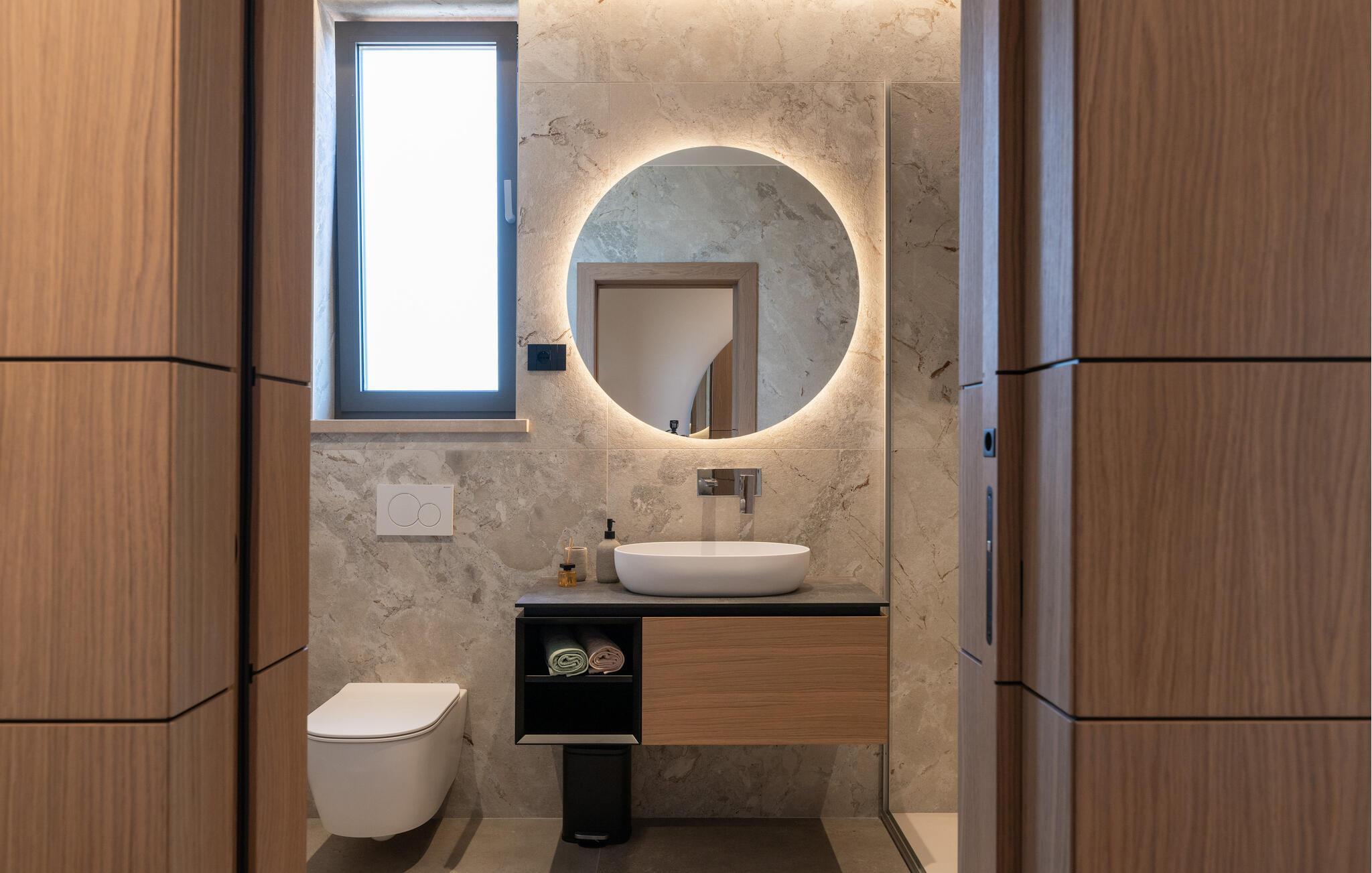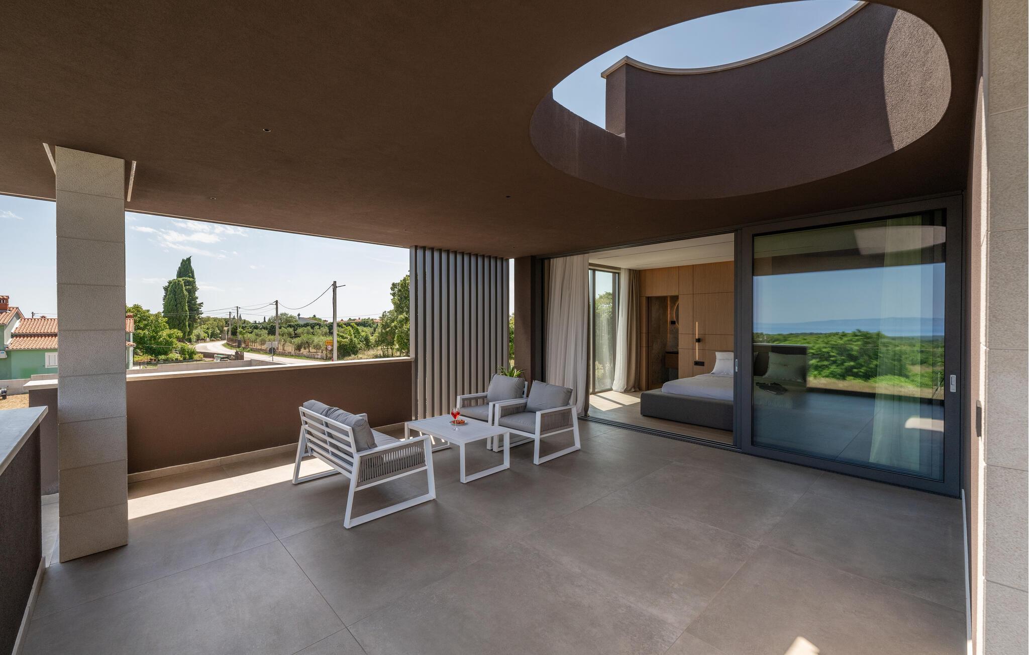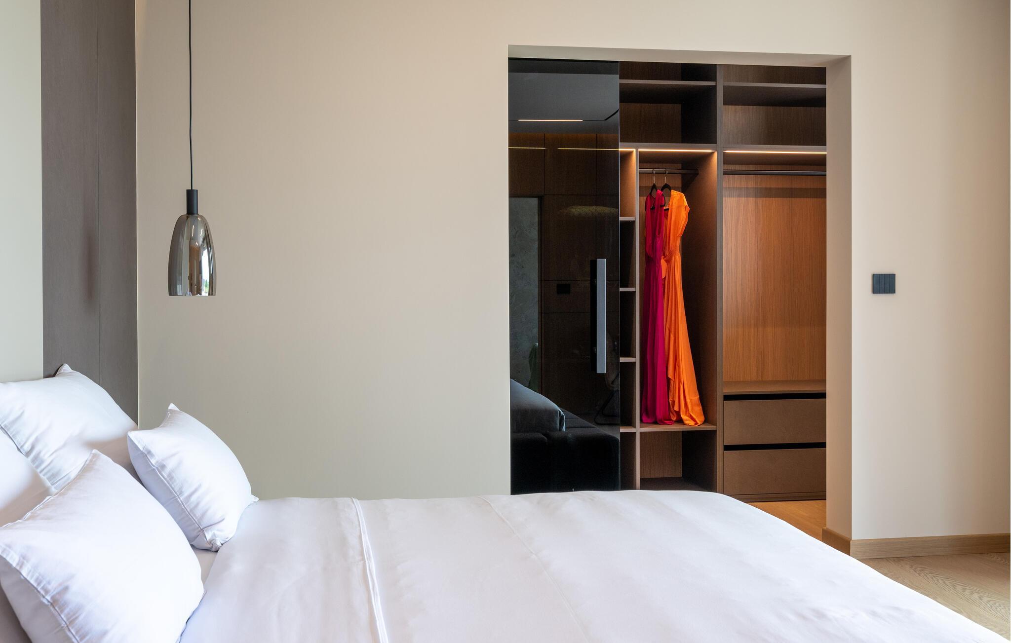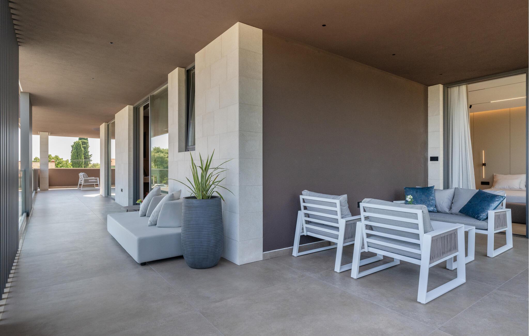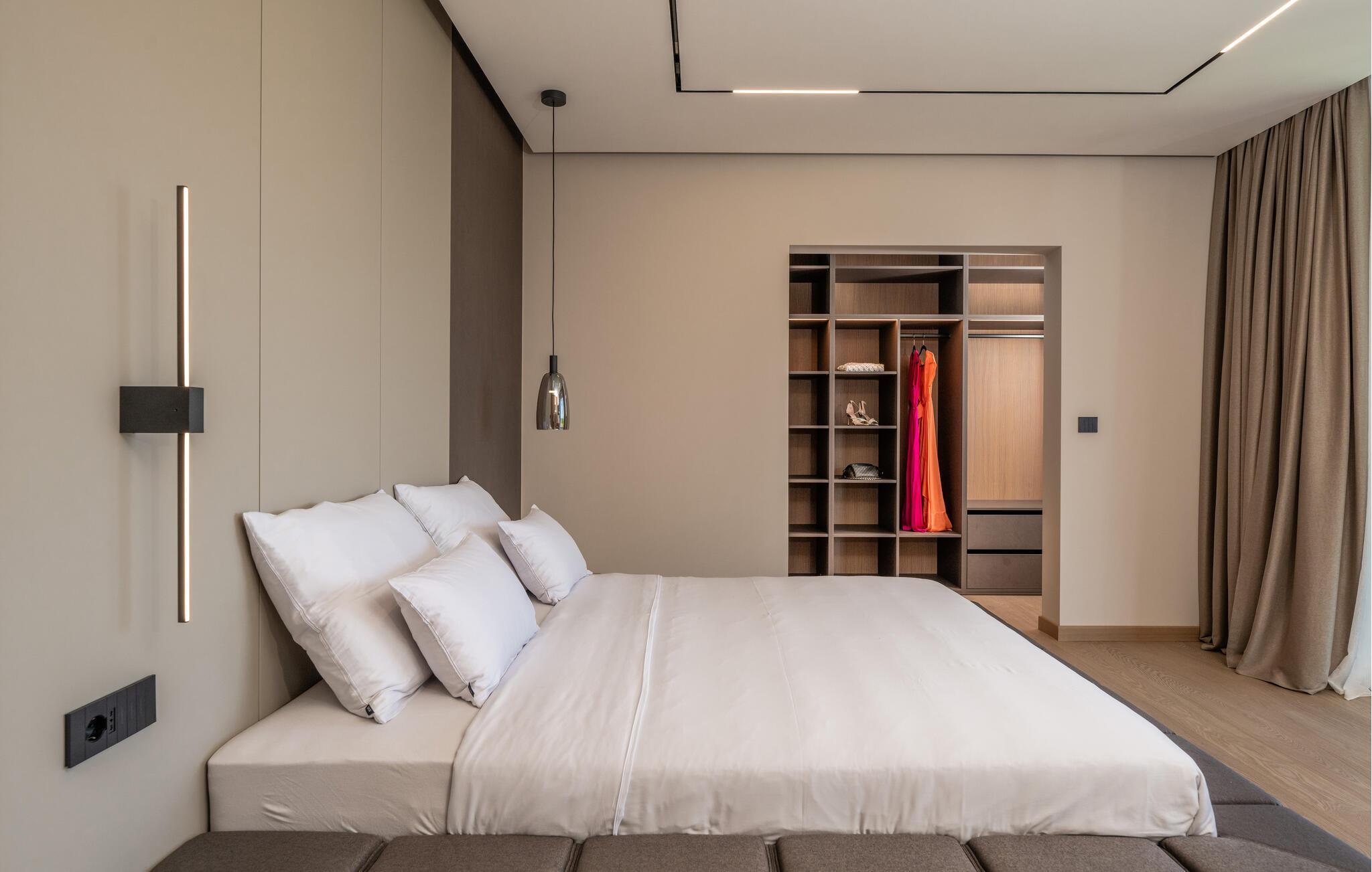 Nyd den stilfulde atmosfære i dette eksklusive designerhus. Den åbne, lysfyldte arkitektur skaber en harmonisk følelse af at bo, mens I kan fremtrylle middelhavsspecialiteter i det ultramoderne køkken. Forkæl jer selv med kulinariske lækkerier ved det elegante spisebord eller gør jer godt tilpas på det rummelige sofaområde, mens I streamer en film eller lytter til musik.
