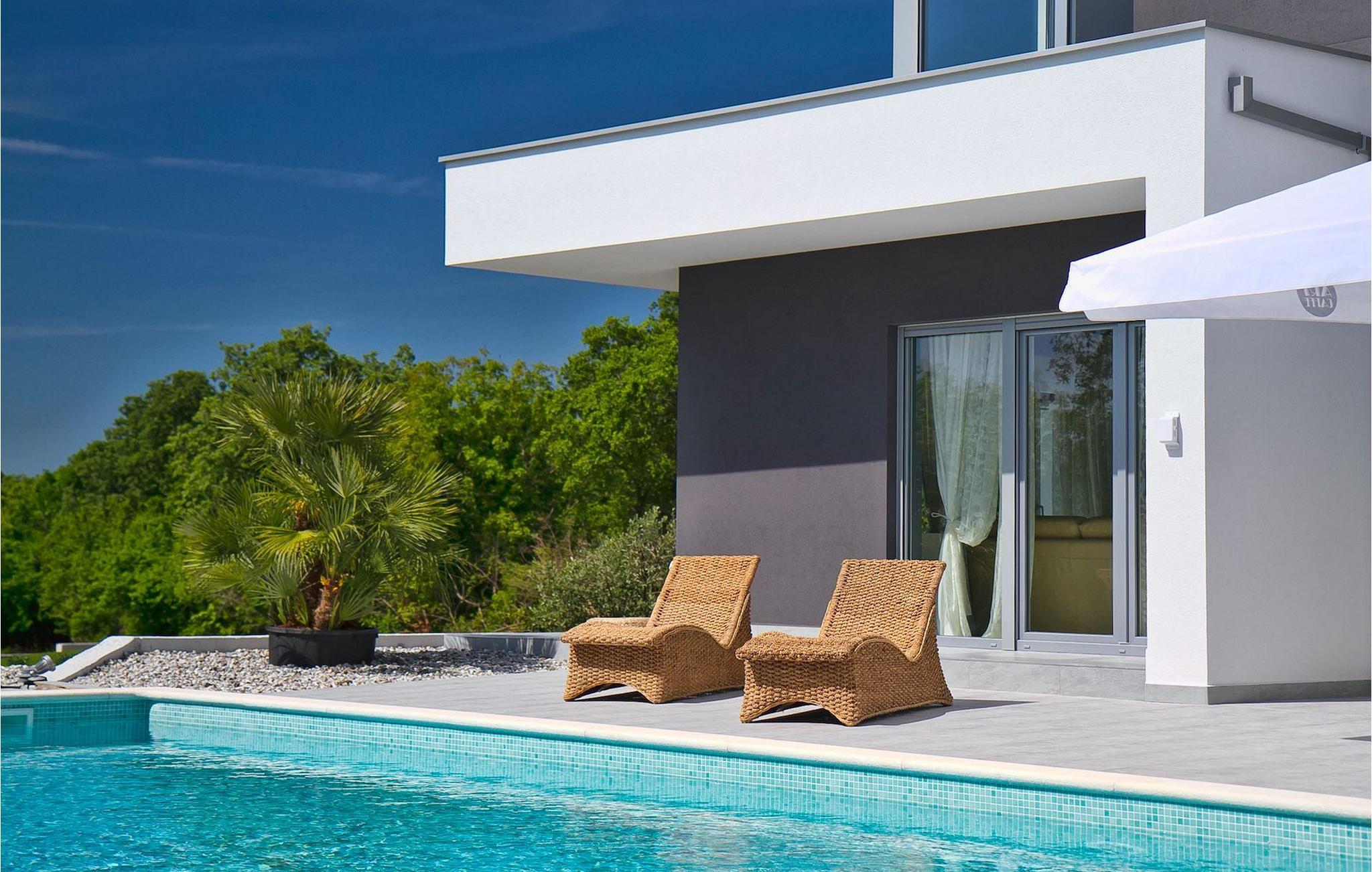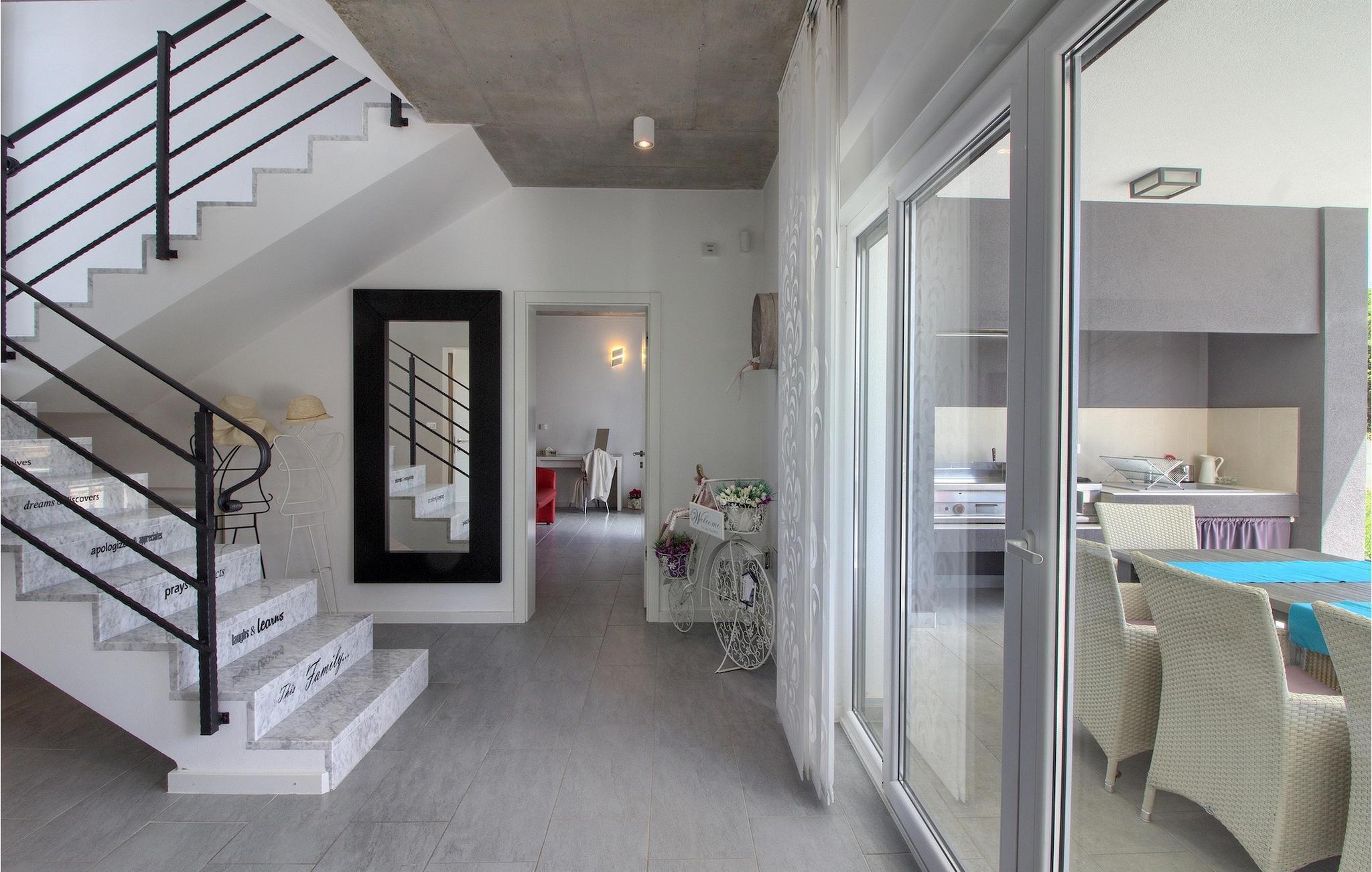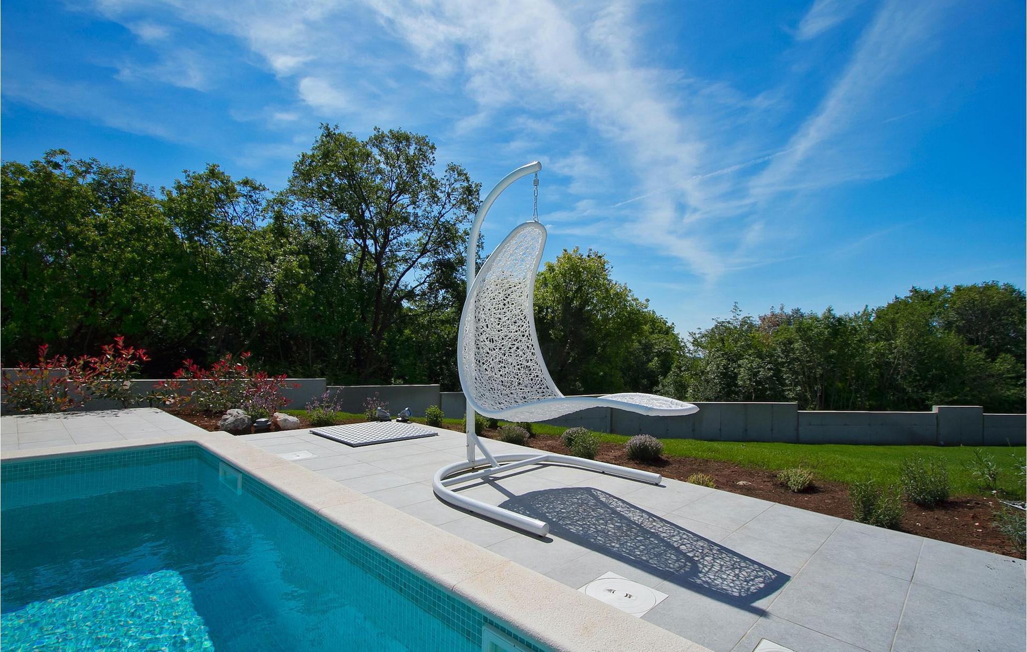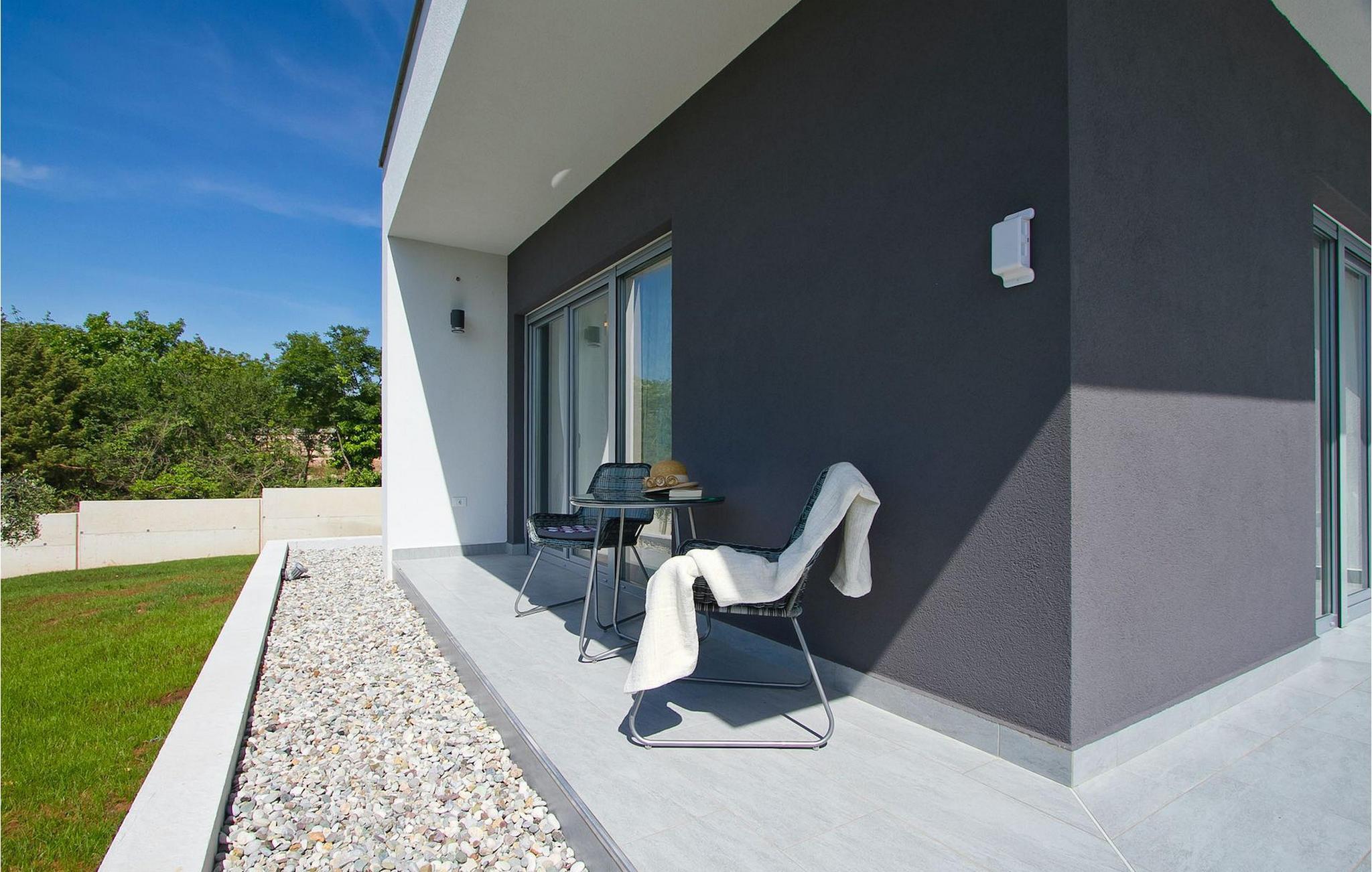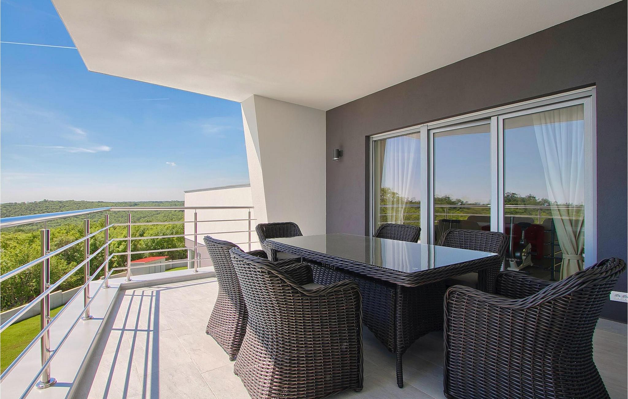 Dieses schöne, moderne Anwesen ist mit viel Liebe zum Detail gebaut worden. Die Anlage ist umgeben von wunderschöner unberührter mediterraner Natur und bietet vollkommene Ruhe und Privatsphäre. Die Villa ist auch ein guter Ausgangspunkt für einen aktiven Urlaub, da die Strände in nur 5 Minuten Fahrt erreichbar sind, mit vielen Radwegen usw. Draußen gibt es einen schönen großen Pool mit Liegestühlen. Ein gepflegter und bewässerter Rasen mit Lounge-Möbeln bietet perfekte Erholung. Der Garten, mit gut ausgestatteter Außenüche mit einem Gasgrill, ist der perfekte Ort für ein Essen im Freien mit Blick auf die Natur und den beleuchteten Pool. Sie können auch oben, auf der großen überdachten Terrasse mit Meerblick entspannen. Der Innenraum ist lichtdurchflutet und schön eingerichtet, es fühlt sich wirklich wie ein Zuhause an. Es gibt 4 Schlafzimmer mit eigenem Bad. Zwei der Zimmer teilen sich ein Bad. Eines der Schlafzimmer ist im Erdgeschoss. Im Obergeschoss gibt es auch einen Fitnessbereich. Das Haus ist voll klimatisiert und es gibt WiFi-Internetzugang.Krnica ist ein kleiner Ort in Istrien, der unweit von der Küste gelegen ist (5 Autominuten). Krnica ist der perfekte Ausgangspunkt für Tagesausflüge zu den berühmten Städten wie Pula, Rovinj und Opatija. Krnica ist auch ein ausgezeichneter Ort für die Kombination von Entspannung und Aktivurlaub. Im nahe gelegenen Hafen gibt es ein hervorragend ausgestattetes Tauchzentrum, das alte versunkene Schiffe, spektakuläre Unterwasser-Höhlen, Klippen, den Nervenkitzel des Nachttauchens für Anfänger und erfahrene Taucher entdeckt. Die Ost-Küste von Istrien bietet eine Vielfalt von Stränden und kristallklares Meer. Die unberührte Küste verbirgt viele ruhige Buchten. Mit seinen zahlreichen Küsten-und Waldwegen, ist dieses Gebiet ideal für Mountainbiking, lange entspannende Spaziergänge, Reiten, und als Ausgangspunkt für Ausflüge der Entdeckung des magischen Istriens.