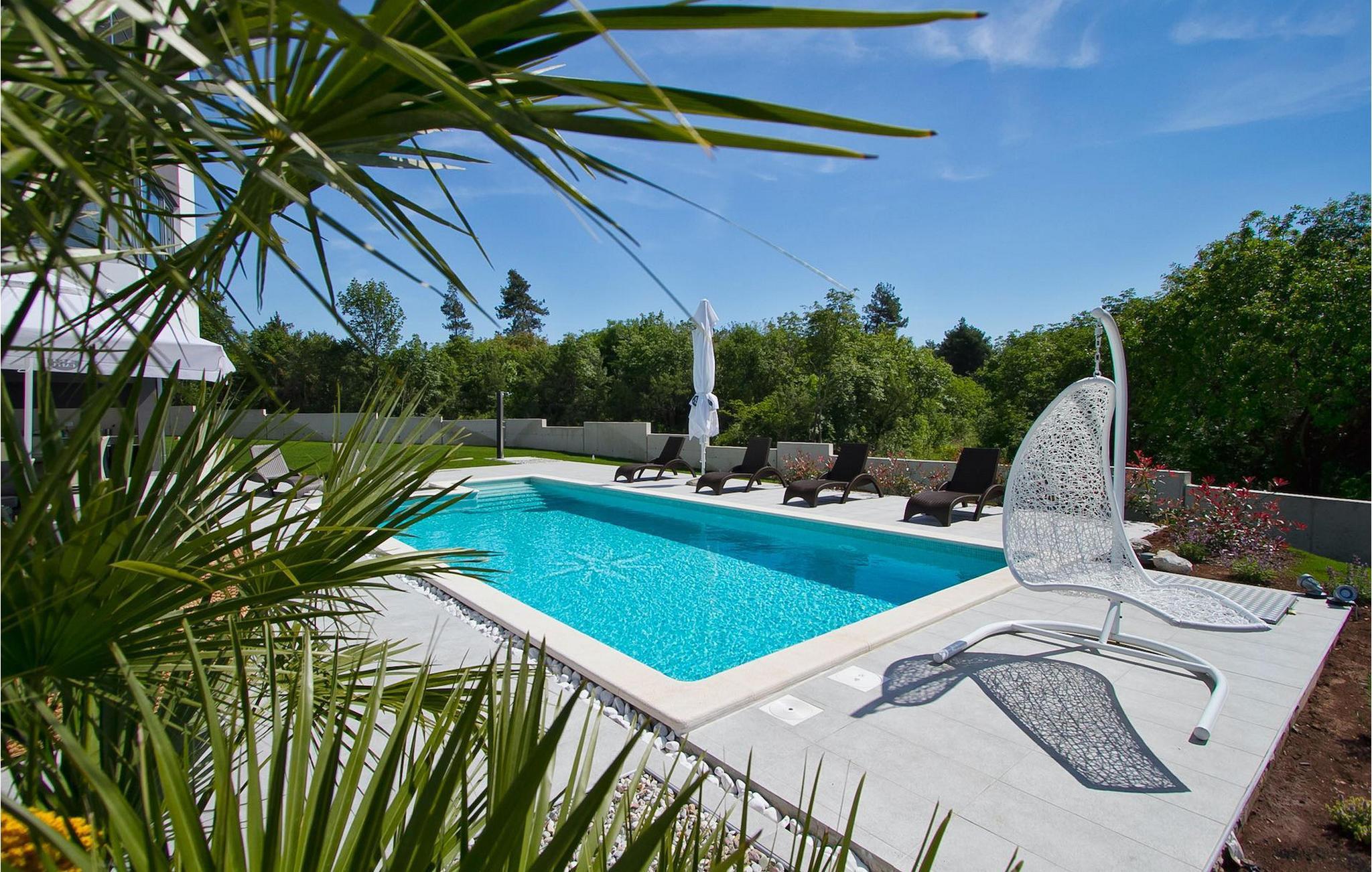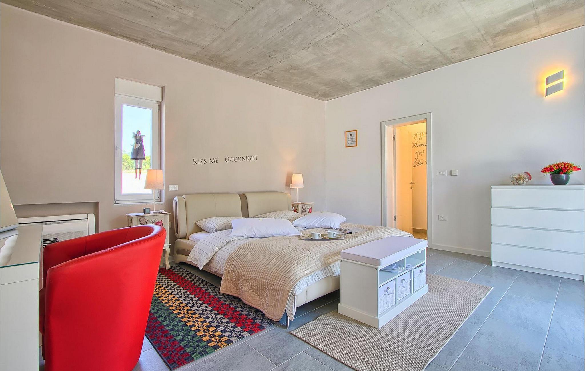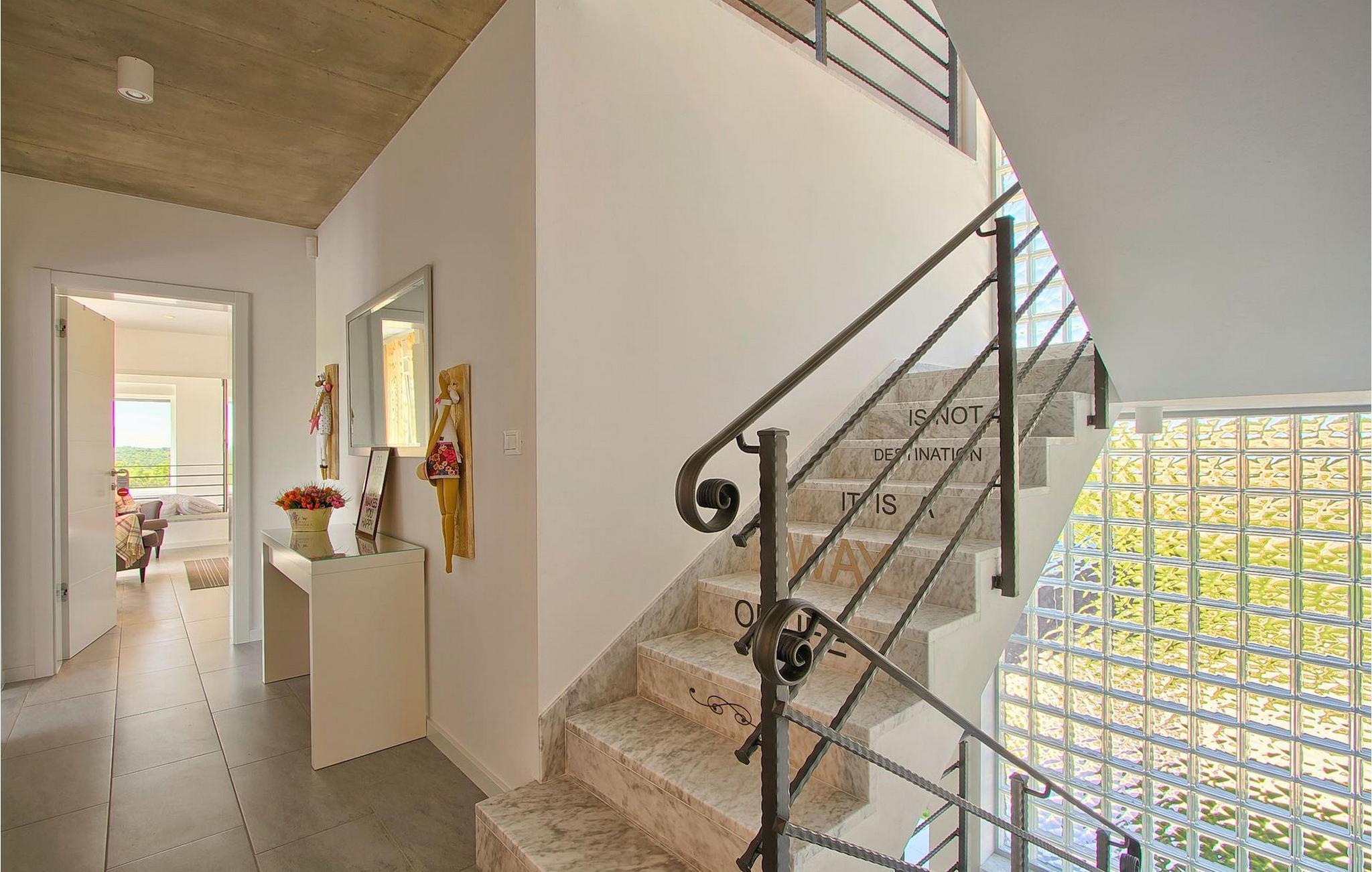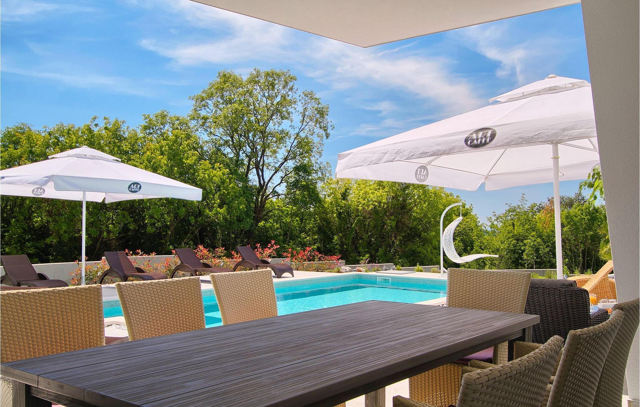 Dieses schöne, moderne Anwesen ist mit viel Liebe zum Detail gebaut worden. Die Anlage ist umgeben von wunderschöner unberührter mediterraner Natur und bietet vollkommene Ruhe und Privatsphäre. Die Villa ist auch ein guter Ausgangspunkt für einen aktiven Urlaub, da die Strände in nur 5 Minuten Fahrt erreichbar sind, mit vielen Radwegen usw. Draußen gibt es einen schönen großen Pool mit Liegestühlen. Ein gepflegter und bewässerter Rasen mit Lounge-Möbeln bietet perfekte Erholung. Der Garten, mit gut ausgestatteter Außenüche mit einem Gasgrill, ist der perfekte Ort für ein Essen im Freien mit Blick auf die Natur und den beleuchteten Pool. Sie können auch oben, auf der großen überdachten Terrasse mit Meerblick entspannen. Der Innenraum ist lichtdurchflutet und schön eingerichtet, es fühlt sich wirklich wie ein Zuhause an. Es gibt 4 Schlafzimmer mit eigenem Bad. Zwei der Zimmer teilen sich ein Bad. Eines der Schlafzimmer ist im Erdgeschoss. Im Obergeschoss gibt es auch einen Fitnessbereich. Das Haus ist voll klimatisiert und es gibt WiFi-Internetzugang.Krnica ist ein kleiner Ort in Istrien, der unweit von der Küste gelegen ist (5 Autominuten). Krnica ist der perfekte Ausgangspunkt für Tagesausflüge zu den berühmten Städten wie Pula, Rovinj und Opatija. Krnica ist auch ein ausgezeichneter Ort für die Kombination von Entspannung und Aktivurlaub. Im nahe gelegenen Hafen gibt es ein hervorragend ausgestattetes Tauchzentrum, das alte versunkene Schiffe, spektakuläre Unterwasser-Höhlen, Klippen, den Nervenkitzel des Nachttauchens für Anfänger und erfahrene Taucher entdeckt. Die Ost-Küste von Istrien bietet eine Vielfalt von Stränden und kristallklares Meer. Die unberührte Küste verbirgt viele ruhige Buchten. Mit seinen zahlreichen Küsten-und Waldwegen, ist dieses Gebiet ideal für Mountainbiking, lange entspannende Spaziergänge, Reiten, und als Ausgangspunkt für Ausflüge der Entdeckung des magischen Istriens.