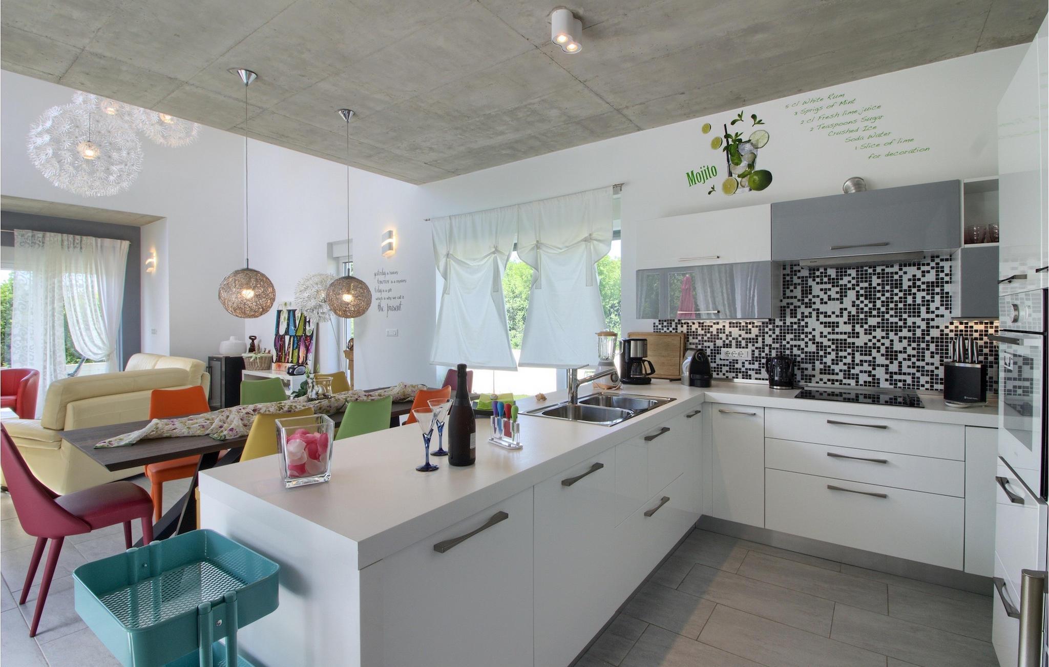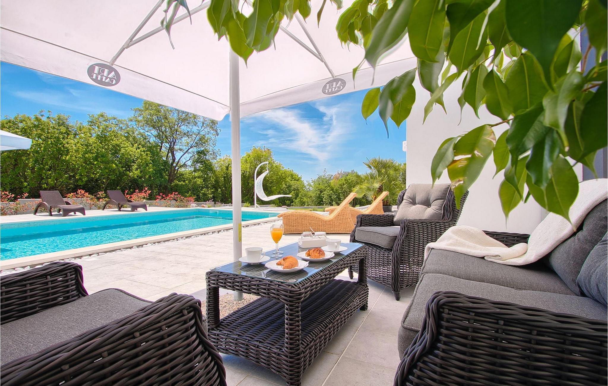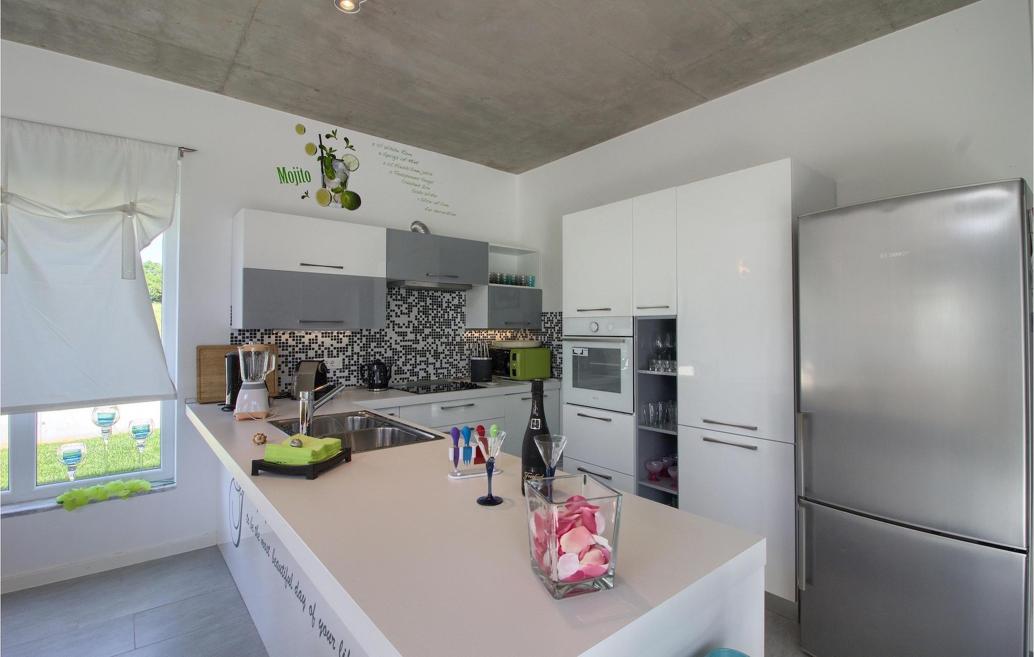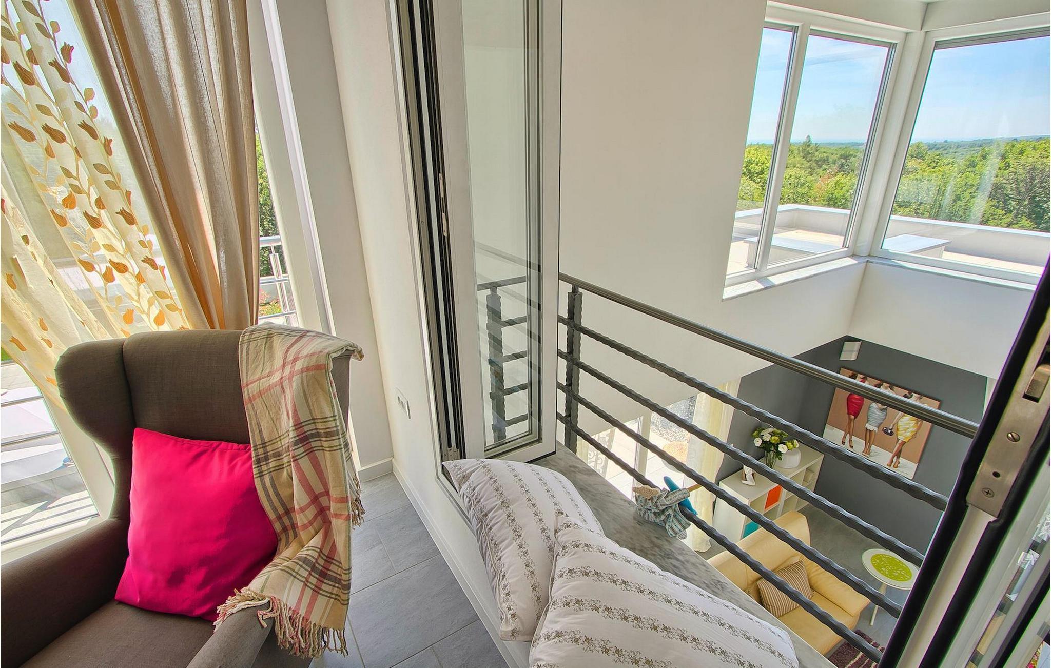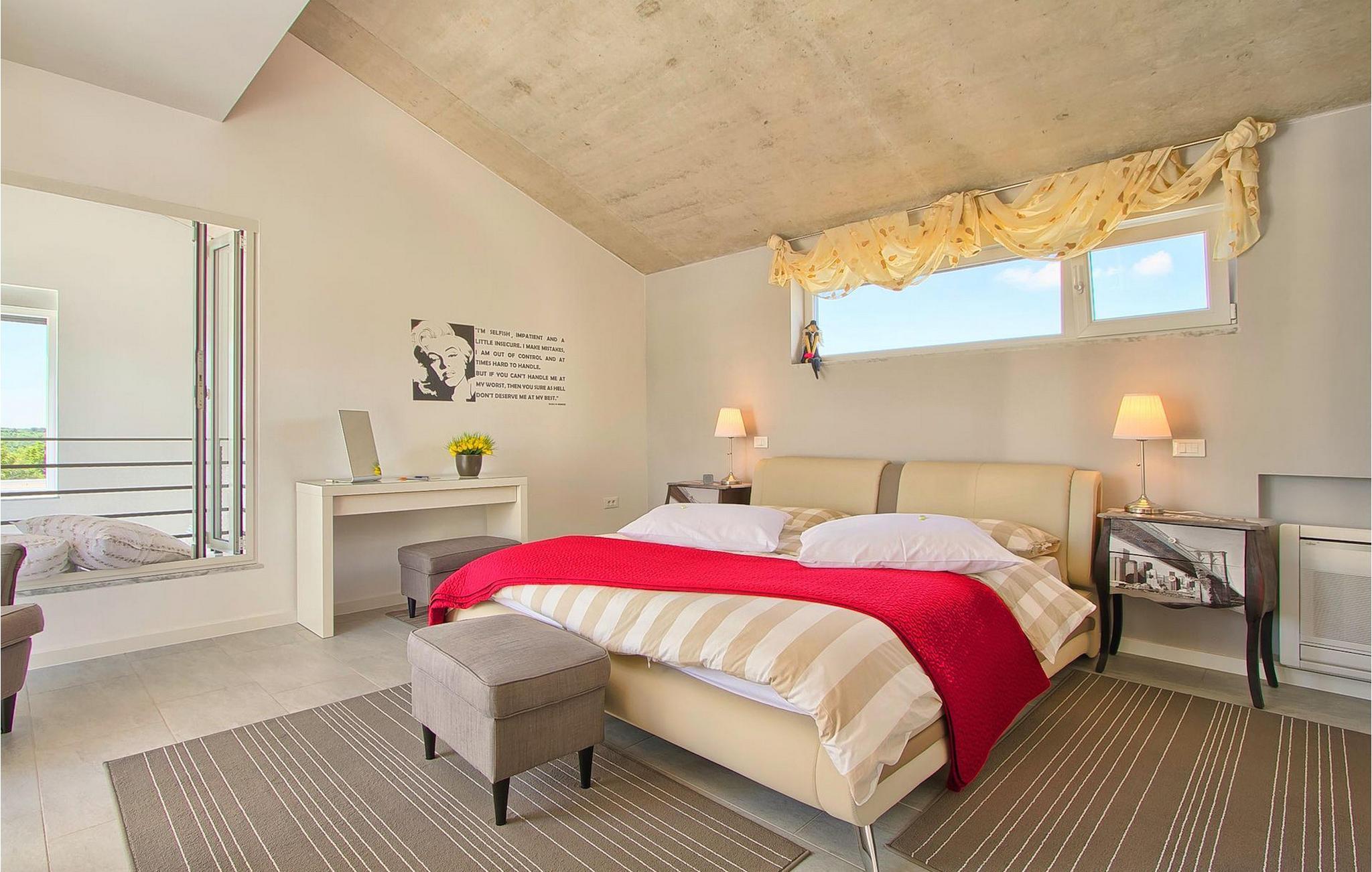 Dieses schöne, moderne Anwesen ist mit viel Liebe zum Detail gebaut worden. Die Anlage ist umgeben von wunderschöner unberührter mediterraner Natur und bietet vollkommene Ruhe und Privatsphäre. Die Villa ist auch ein guter Ausgangspunkt für einen aktiven Urlaub, da die Strände in nur 5 Minuten Fahrt erreichbar sind, mit vielen Radwegen usw. Draußen gibt es einen schönen großen Pool mit Liegestühlen. Ein gepflegter und bewässerter Rasen mit Lounge-Möbeln bietet perfekte Erholung. Der Garten, mit gut ausgestatteter Außenüche mit einem Gasgrill, ist der perfekte Ort für ein Essen im Freien mit Blick auf die Natur und den beleuchteten Pool. Sie können auch oben, auf der großen überdachten Terrasse mit Meerblick entspannen. Der Innenraum ist lichtdurchflutet und schön eingerichtet, es fühlt sich wirklich wie ein Zuhause an. Es gibt 4 Schlafzimmer mit eigenem Bad. Zwei der Zimmer teilen sich ein Bad. Eines der Schlafzimmer ist im Erdgeschoss. Im Obergeschoss gibt es auch einen Fitnessbereich. Das Haus ist voll klimatisiert und es gibt WiFi-Internetzugang.Krnica ist ein kleiner Ort in Istrien, der unweit von der Küste gelegen ist (5 Autominuten). Krnica ist der perfekte Ausgangspunkt für Tagesausflüge zu den berühmten Städten wie Pula, Rovinj und Opatija. Krnica ist auch ein ausgezeichneter Ort für die Kombination von Entspannung und Aktivurlaub. Im nahe gelegenen Hafen gibt es ein hervorragend ausgestattetes Tauchzentrum, das alte versunkene Schiffe, spektakuläre Unterwasser-Höhlen, Klippen, den Nervenkitzel des Nachttauchens für Anfänger und erfahrene Taucher entdeckt. Die Ost-Küste von Istrien bietet eine Vielfalt von Stränden und kristallklares Meer. Die unberührte Küste verbirgt viele ruhige Buchten. Mit seinen zahlreichen Küsten-und Waldwegen, ist dieses Gebiet ideal für Mountainbiking, lange entspannende Spaziergänge, Reiten, und als Ausgangspunkt für Ausflüge der Entdeckung des magischen Istriens.