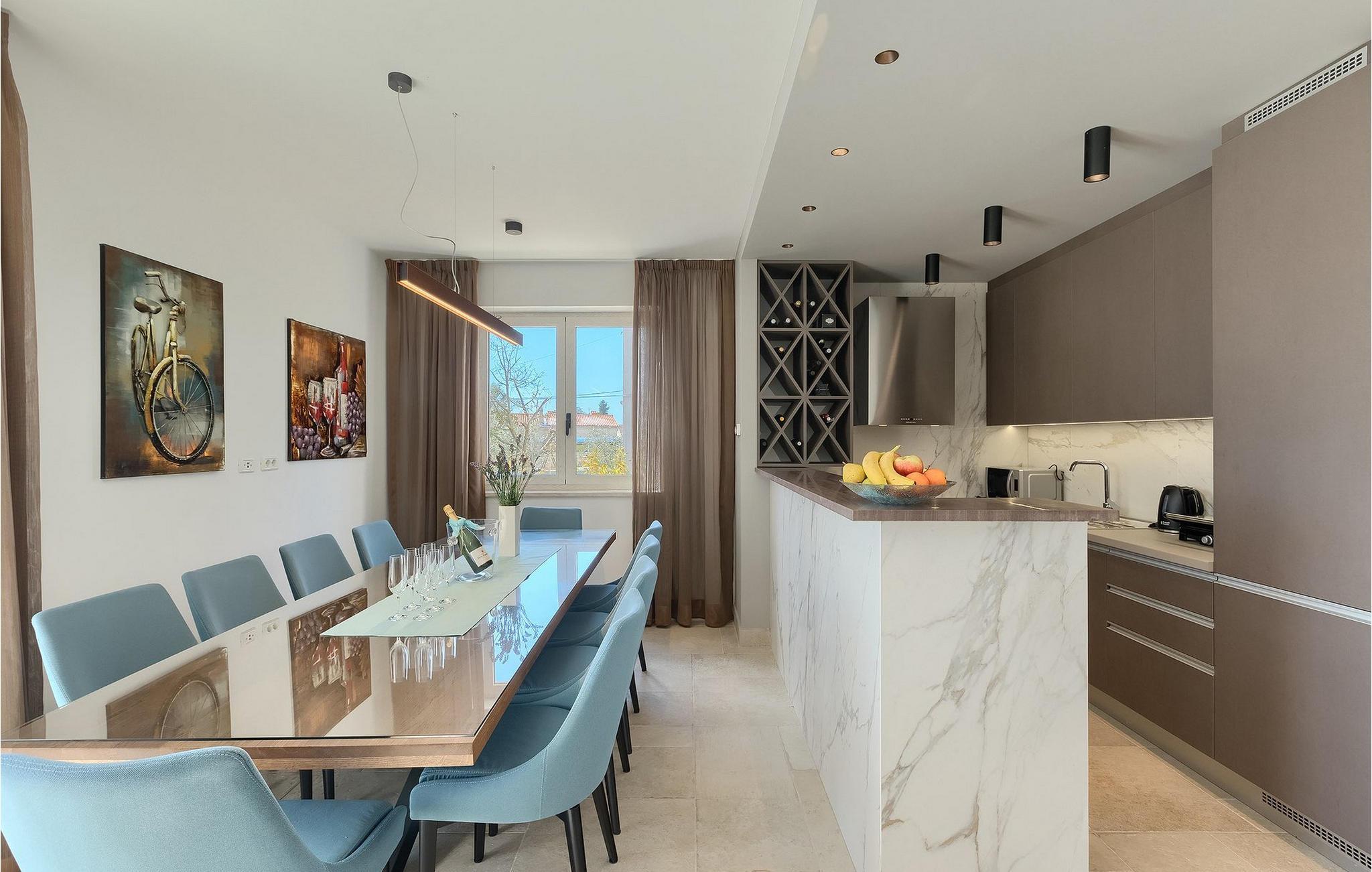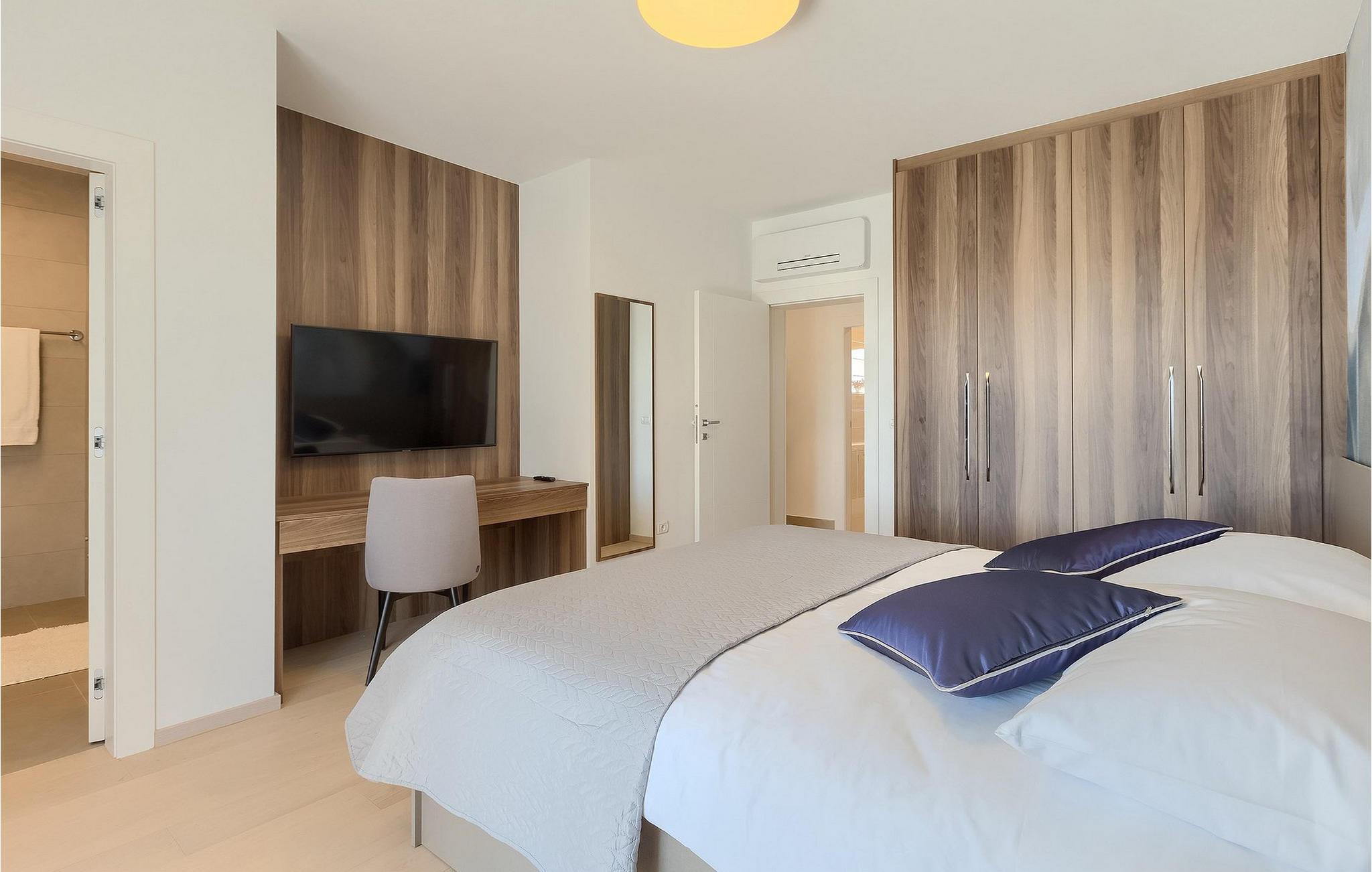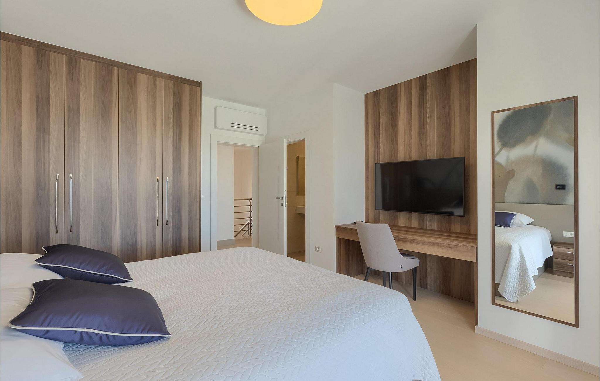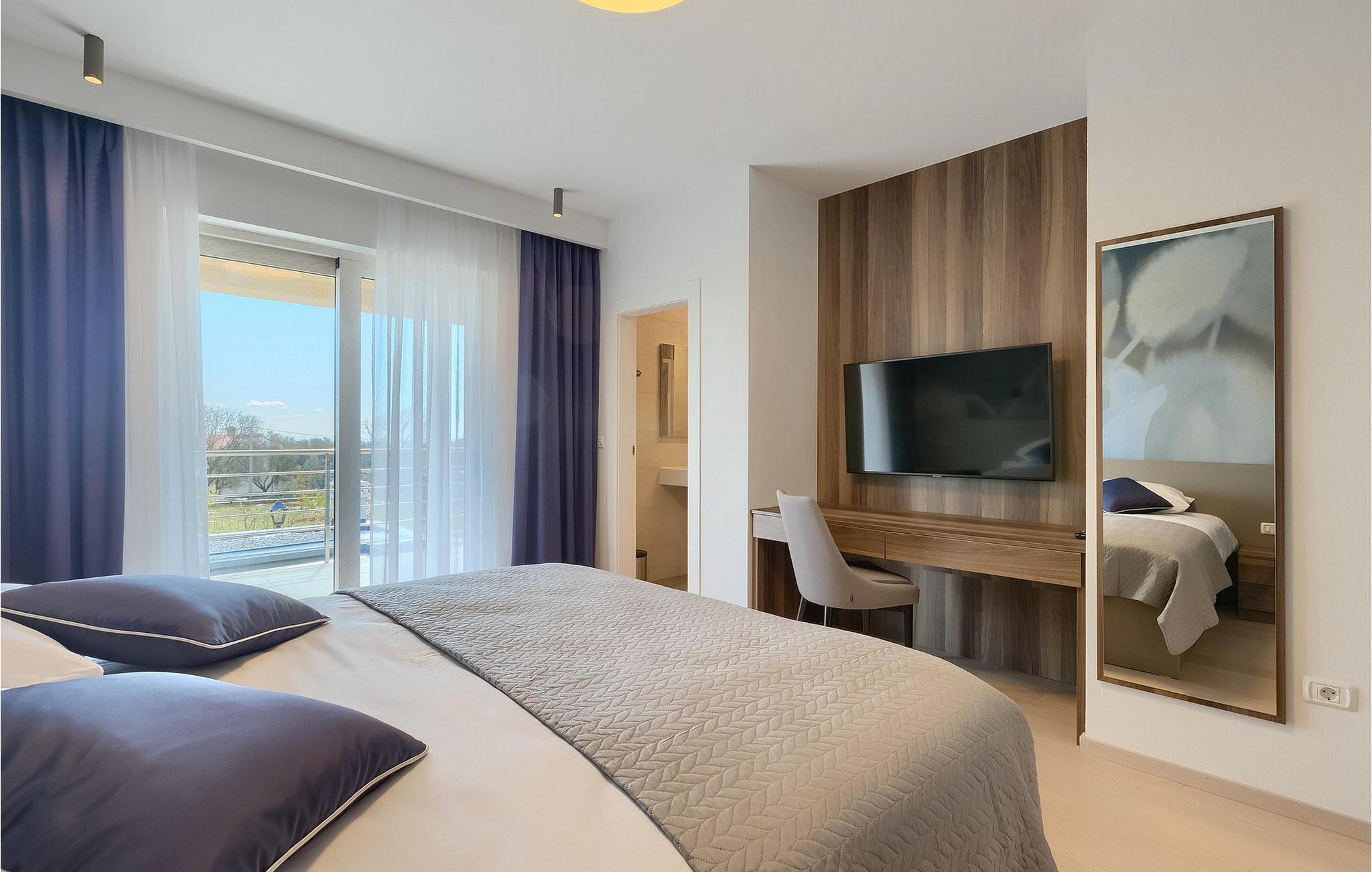 Moderne, elegant og hyggeligt er nogle af de udtryk, vi kunne bruge til at beskrive Villa Bursic i Krnica. Denne smukke ejendom vil opfylde alle dine ønsker og give dig lyst til ingenting. Stol på os, når du træder ind i denne villa, vil det være kærlighed ved første blik! Villaen består af 2 rummelige etager. I stueetagen er der en stor lys-fyldt stue og spisestue samt et fuldt udstyret køkken. Til din rådighed er der også en separat værtshus, hvor hele gruppen kan tilbringe noget kvalitetstid sammen med at slappe af. Villaen har i alt 4 soveværelser med dobbeltsenge og 5 badeværelser, mere end nok til at 8 gæster kan være helt komfortable på ferien. Et soveværelse og 2 badeværelser er placeret i stueetagen, og de resterende 3 soveværelser med eget badeværelse er på første sal.