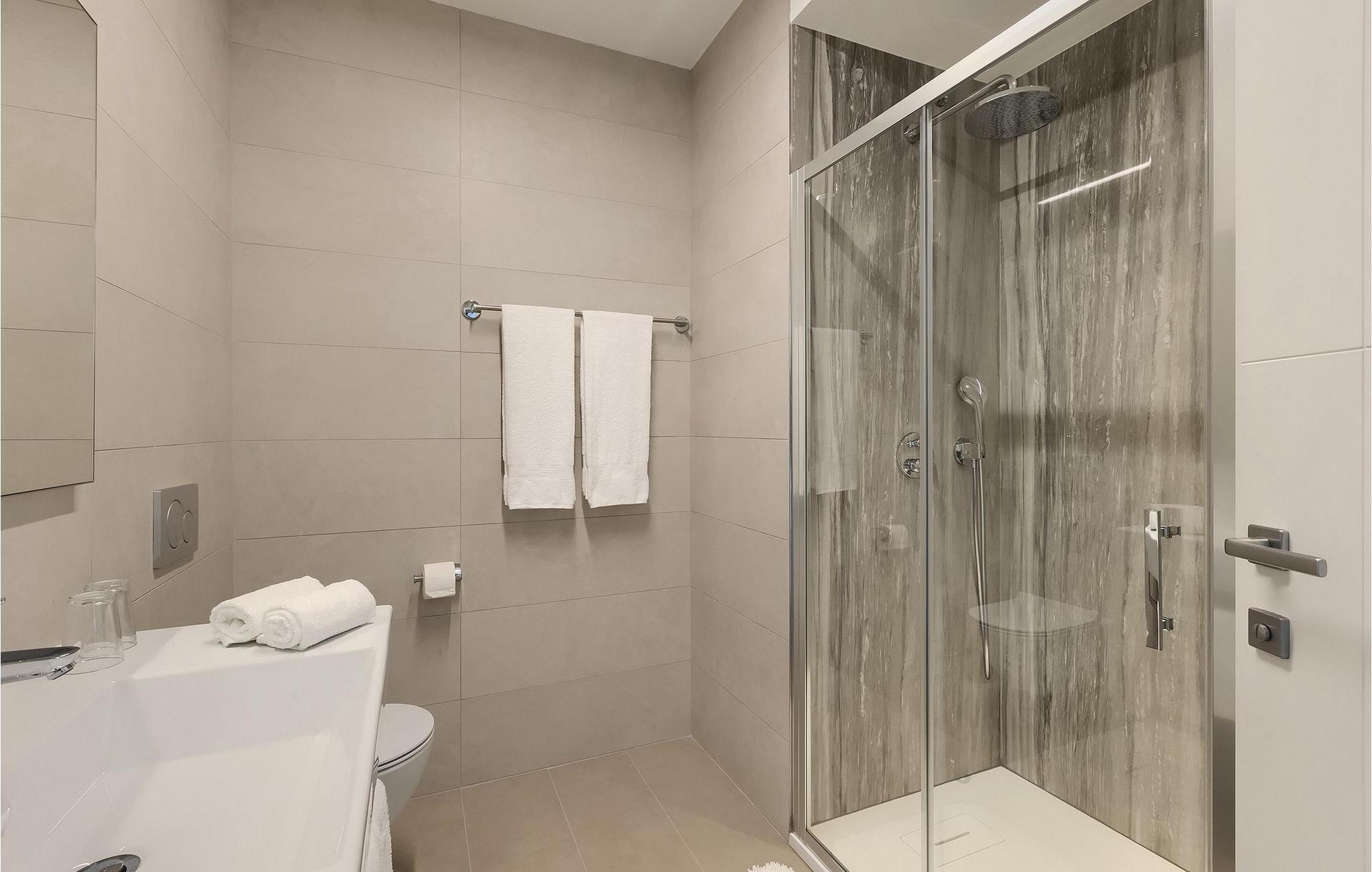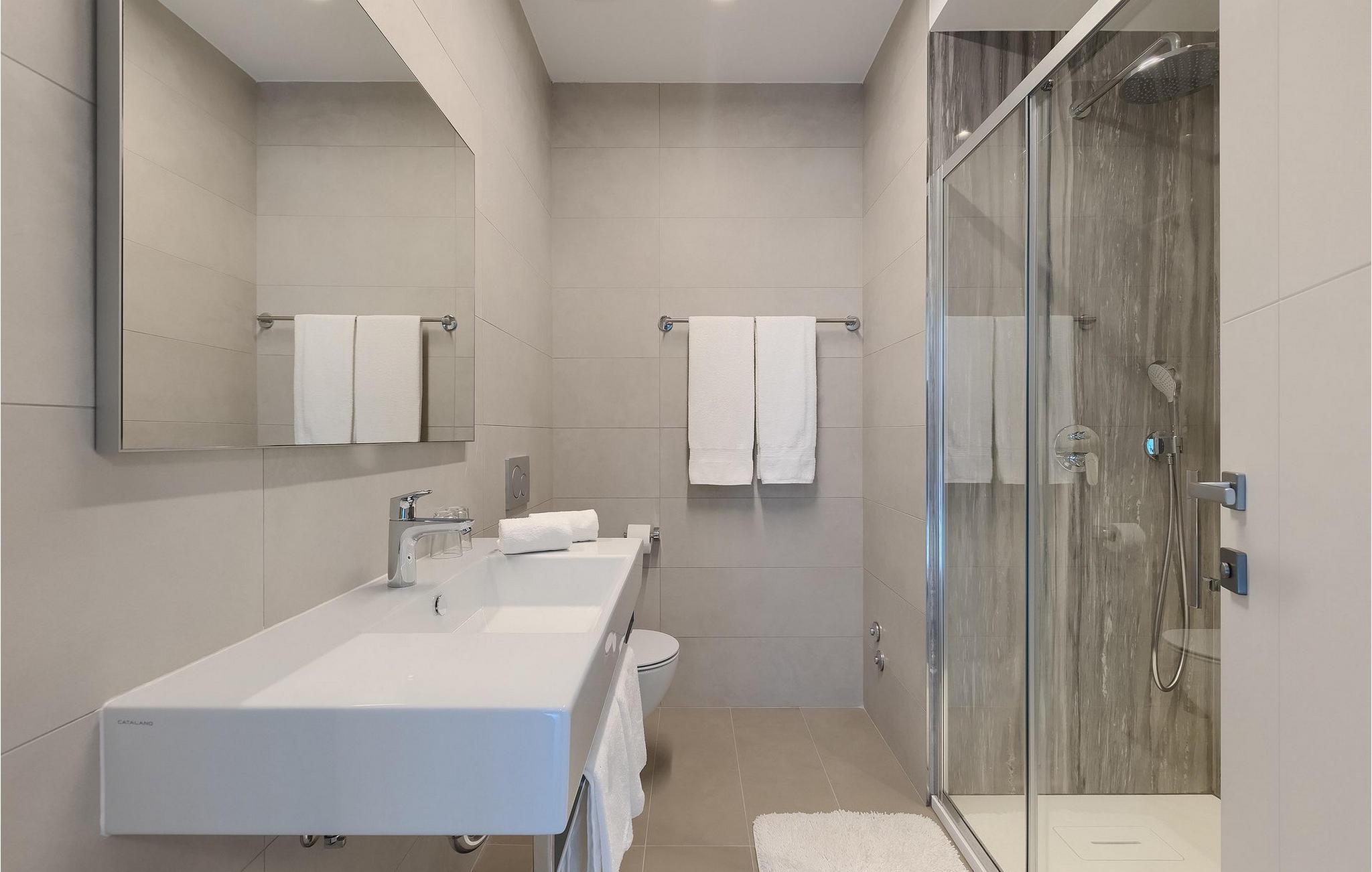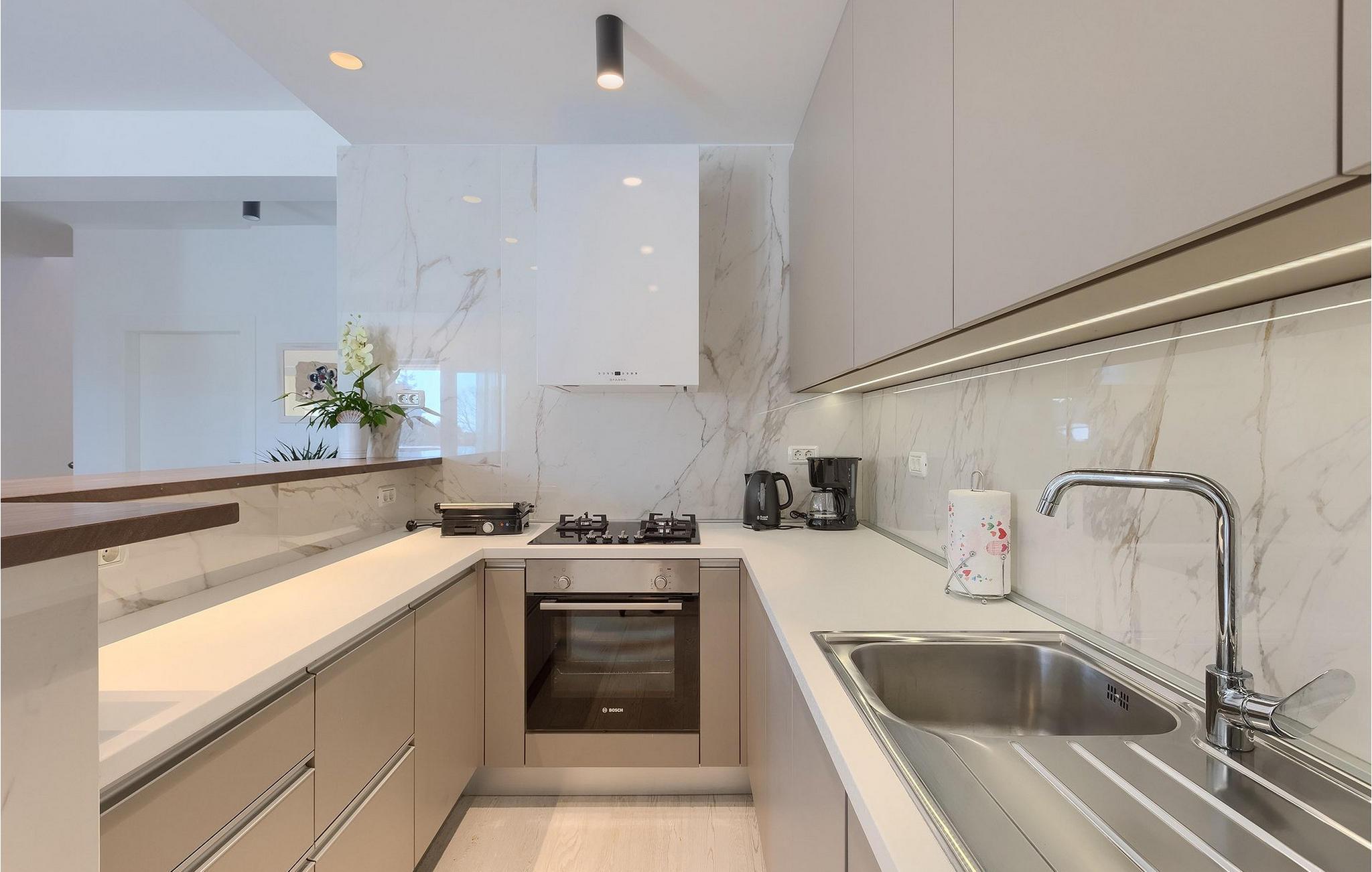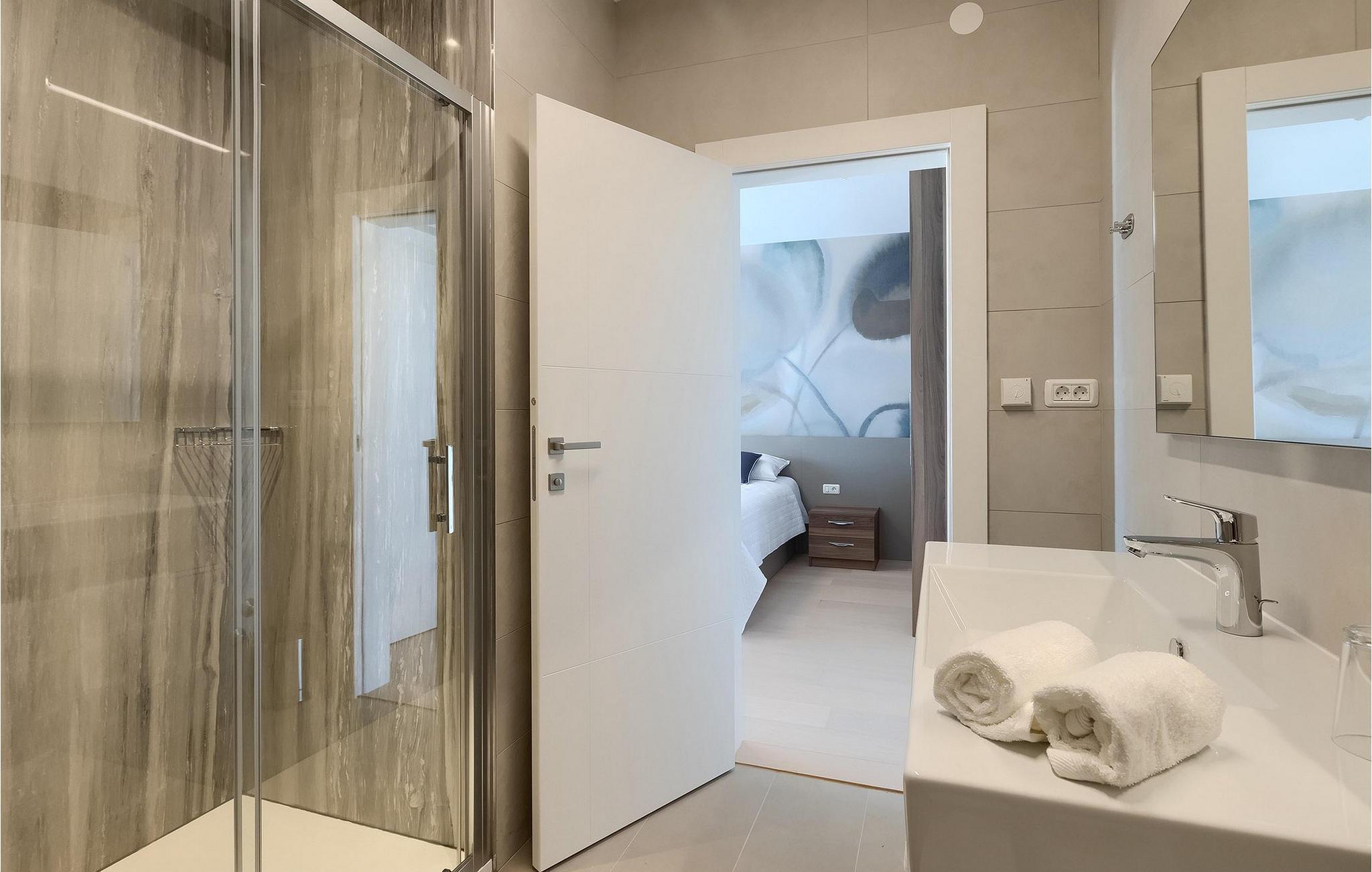 Moderne, elegant og hyggeligt er nogle af de udtryk, vi kunne bruge til at beskrive Villa Bursic i Krnica. Denne smukke ejendom vil opfylde alle dine ønsker og give dig lyst til ingenting. Stol på os, når du træder ind i denne villa, vil det være kærlighed ved første blik! Villaen består af 2 rummelige etager. I stueetagen er der en stor lys-fyldt stue og spisestue samt et fuldt udstyret køkken. Til din rådighed er der også en separat værtshus, hvor hele gruppen kan tilbringe noget kvalitetstid sammen med at slappe af. Villaen har i alt 4 soveværelser med dobbeltsenge og 5 badeværelser, mere end nok til at 8 gæster kan være helt komfortable på ferien. Et soveværelse og 2 badeværelser er placeret i stueetagen, og de resterende 3 soveværelser med eget badeværelse er på første sal.