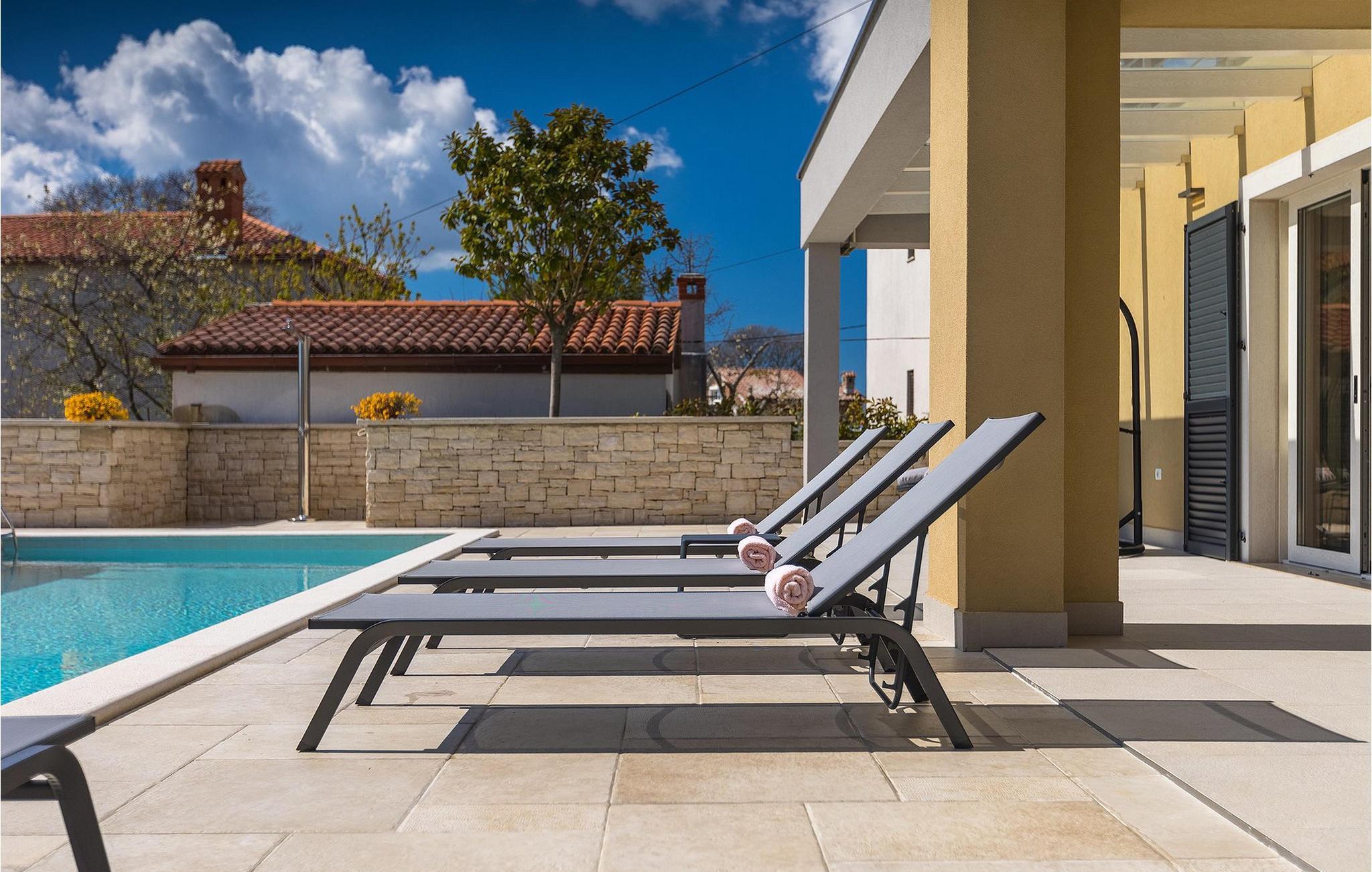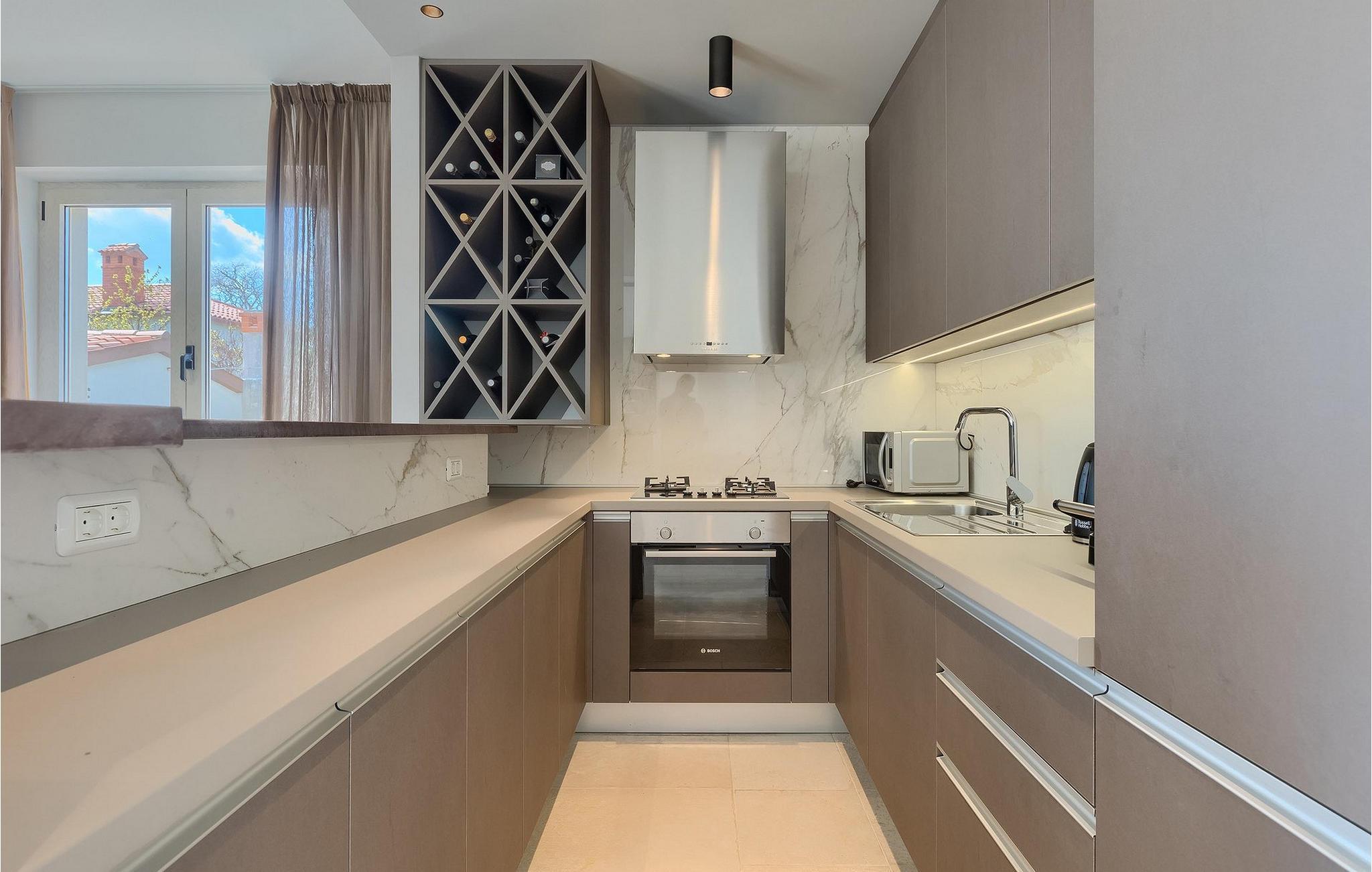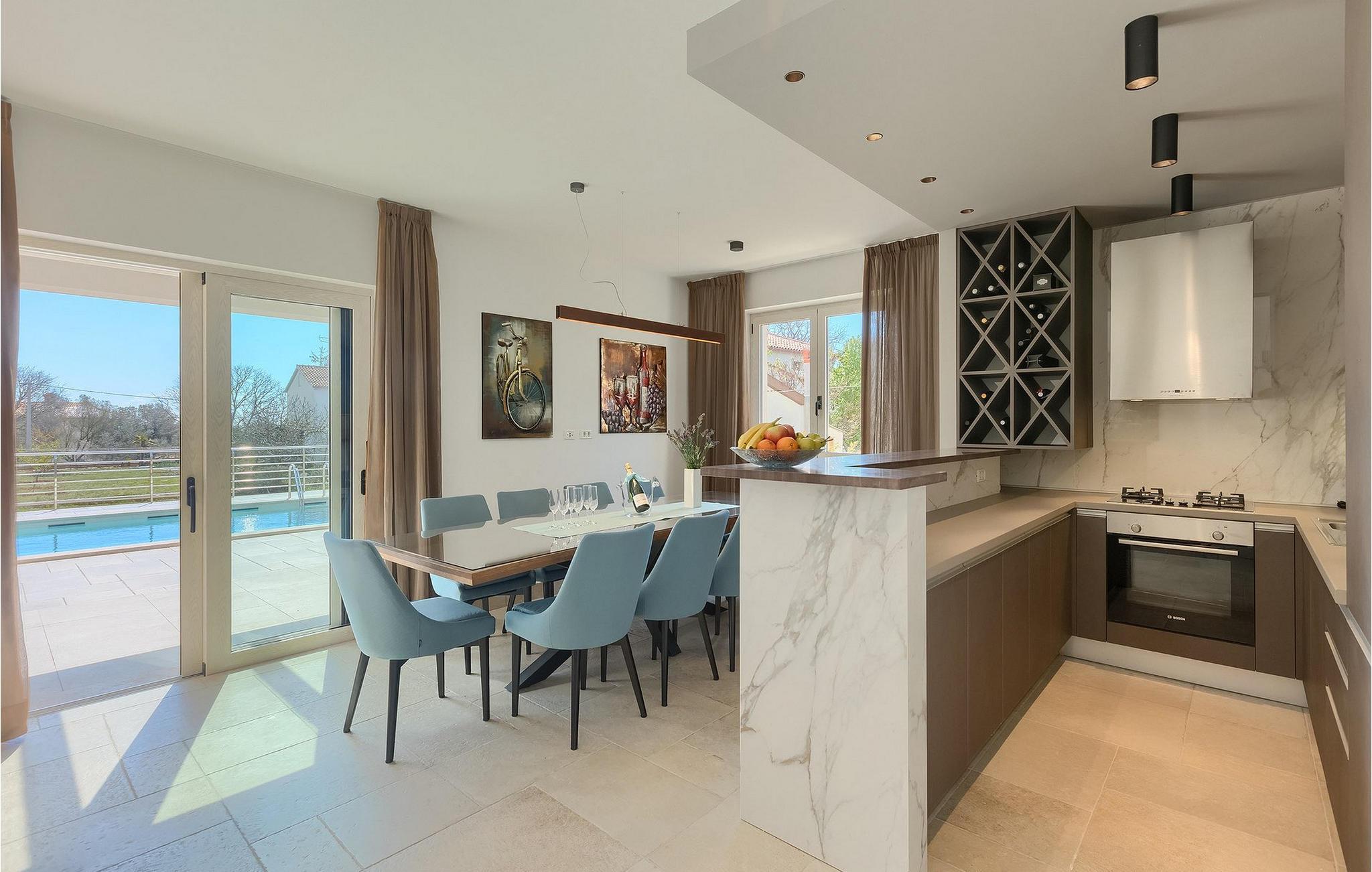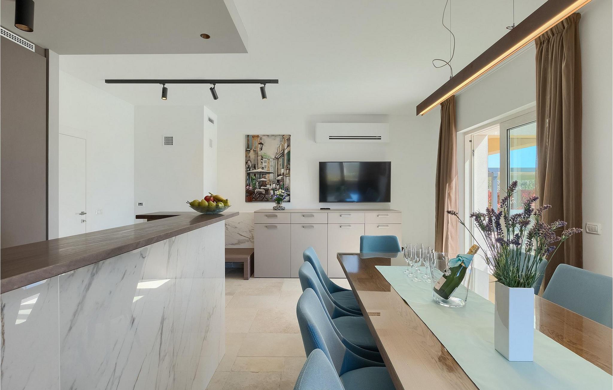 For en god start på dagen kan du nyde en kop varm kaffe på balkonen med udsigt til omgivelserne og derefter slappe af og solbade ved din egen private pool. Børnenes legeplads er også til din rådighed for lidt ekstra sjov! Den ligger 25 m fra villaen på en separat ejendom og har gynger og trampolin. Om aftenen vil du elske det udendørs køkken og spiseplads. Prøv dine kokkefærdigheder og tilbered lokale specialiteter på kulgrillen og nyd dem i den skyggefulde udendørs spiseplads! Krnica er stedet at gå til, hvis du leder efter lidt fred og ro, men ikke ønsker at være fuldstændig isoleret. Denne charmerende lille by ligger kun 3 km fra de nærmeste strande. Istrien er berømt for sit herlige landskab, og Krnica-området vil bestemt ikke skuffe dig. Så sørg for at gå en tur rundt og nyde dine omgivelser.